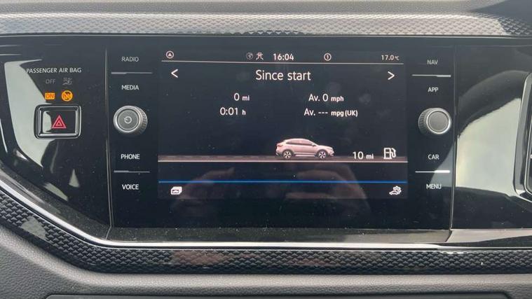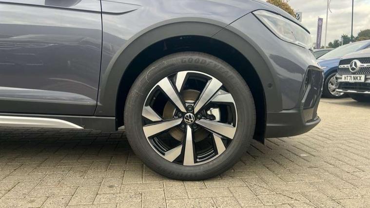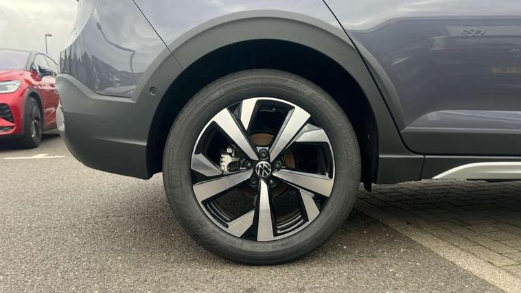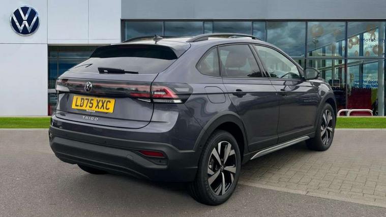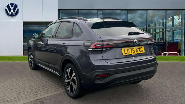 8" Digital cockpit basic display, Adaptive cruise control, Advanced driver attention and drowsiness monitor, Dynamic road sign display, e-Call (emergency call), Power Steering, Rear view camera, Travel assist including emergency assist, Washer fluid level indicator, Wireless Charging including Bluetooth, Start-stop system with battery regeneration (recuperation - energy recovery during braking), Digital radio reception (DAB+), WeConnect plus, Ambient lighting with logo projection, Aspherical driver's exterior mirror, Body coloured bumpers, Body coloured exterior mirror housings and door handles, Electric windows, External USB type C socket and charging sockets, Heat insulating glass windscreen, LED rear combination lamp, LED third brake light, Left convex exterior mirror, Power folding adjustable/heated exterior mirrors and front passenger exterior mirror lowering function, Rear fog light on one side, reversing light on both sides, Rear side wing doors, Rear wash/wipe with intermittent wipe setting, Side windows in heat-insulating glass, from B-pillar and rear window dark tinted, 'Slash/ Austin' Cloth upholstery, 12V socket in centre console, 2 front reading lights, 3 rear head restraints, 3 seat bench in 2nd row, Black carpets, Ceramique headliner, Child seat anchor for child seat system i-Size, 2x top tether and child seat anchor in front on front passenger side, Door and side trim panels in titan black, Driver and front passenger seat height adjustment, Front centre armrest, Handbrake lever handle in leather, Height and reach adjustable steering wheel, Leather trimmed gear knob, Leather wrapped multifunction steering wheel with paddle shift, Luggage compartment floor, Luggage compartment light, Lumbar support for driver's and front passengers seat, Seat covers in titanium black, Single front passenger seat, Split folding backrest with centre armrest and unsplit rear seat bench, Storage compartment under front seats, Sun visors with illuminated vanity mirrors, Titanium black instrument panel, Chrome Package - Taigo, Drivers assistance package - Taigo, Light and sight pack - Taigo, 2 x 3-point seatbelts/outer rear seats with ECE label, 3-point seat belts in front with pretensioner and height adjustment, 3-point seatbelt for centre rear seat, Driver and front passenger airbag with front passenger airbag deactivation, Driver and front passenger safety-optimised head restraints, Electronic stability control, Extended and predictive pedestrian/ cyclist protection, Front and rear disc brakes, Front curtain and side airbags with center airbag, Hill start assist, Manual rear child locks, Single tone horn, Tyre pressure loss indicator, Anti-theft alarm system with interior monitoring, backup horn, and towing protection, Keyless locking and starting system keyless access with safelock, Black (slush) Dashboard, Lava stone black gloss/matt decorative inserts in dash and front door panels, Low rolling resistance tyres,