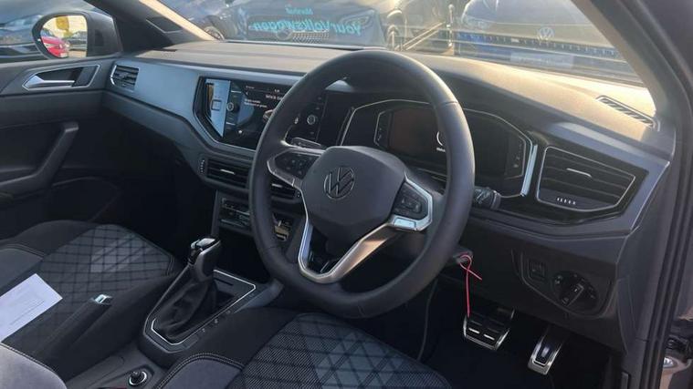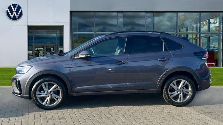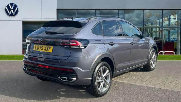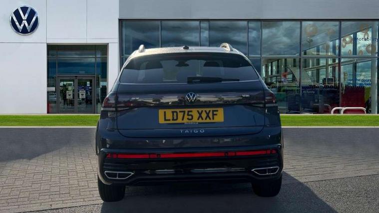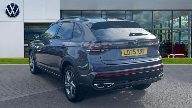 Adaptive cruise control, Advanced driver attention and drowsiness monitor, App-Connect including App-Connect Wireless, Digital cockpit pro - 10.25" high resolution TFT dash display screen with customizable menus and information, Driving profile selection, Dynamic road sign display, e-Call (emergency call), Power Steering, Travel assist including emergency assist, Washer fluid level indicator, Wireless Charging including Bluetooth, Start-stop system with battery regeneration (recuperation - energy recovery during braking), XDS electronic differential lock for improved traction and handling, Digital radio reception (DAB+), Diversity antenna for FM reception, WeConnect plus, Ambient lighting with logo projection, Aspherical driver's exterior mirror, Auto headlights, Body coloured bumpers, Bumpers in R-Line style, Electric windows, External USB type C socket and charging sockets, Front scuff plates with R-Line logo, LED rear combination lamp, LED third brake light, Left convex exterior mirror, Power folding adjustable/heated exterior mirrors and front passenger exterior mirror lowering function, Rear fog light on one side, reversing light on both sides, Rear side wing doors, Rear wash/wipe with intermittent wipe setting, 12V socket in centre console, 2 front reading lights, 3 rear head restraints, 3 seat bench in 2nd row, Air care climatronic air conditoning system with active combination filter and 2-zone temperature control, Black carpets, Black roof lining, Child seat anchor for child seat system i-Size, 2x top tether and child seat anchor in front on front passenger side, Chrome bezel for instrument cluster, vents, door handles + gear shift, Driver and front passenger seat height adjustment, Front + rear carpet mats, Front centre armrest, Front footwell illumination, Front sports comfort seats, Height and reach adjustable steering wheel, Interior ambient lighting and surround lighting, Karoso artvelours cloth upholstery, Leather trimmed gear knob, Leather wrapped multifunction steering wheel, Luggage compartment floor, Luggage compartment light, Lumbar support for driver's and front passengers seat, Seat covers in grey + titanium black, Single front passenger seat, Split folding backrest with centre armrest and unsplit rear seat bench, Stainless steel pedals, Storage compartment under front seats, Sun visors with illuminated vanity mirrors, Chrome Package - Taigo, Drivers assistance pack - Taigo, Light and Sight pack including High beam assist - Taigo, 2 x 3-point seatbelts/outer rear seats with ECE label, 3-point seat belts in front with pretensioner and height adjustment, 3-point seatbelt for centre rear seat, Adaptive driver and front passenger airbags with passenger airbag deactivation function, Driver and front passenger safety-optimised head restraints, Electronic stability control, Extended and predictive pedestrian/ cyclist protection, Front and rear disc brakes, Front curtain and side airbags with center airbag, Hill start assist, Manual rear child locks, Single tone horn, Tyre pressure loss indicator, Anti-theft alarm system with interior monitoring, backup horn, and towing protection, Grey anodised matte decorative inserts in dash and front door panels, Low rolling resistance tyres,