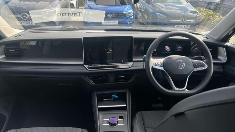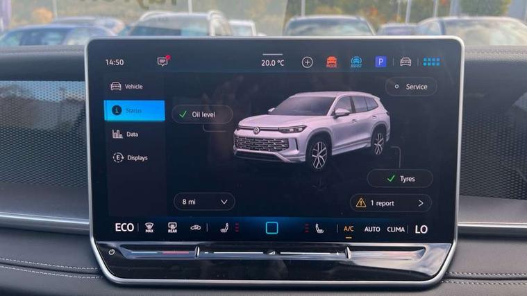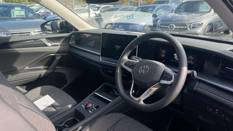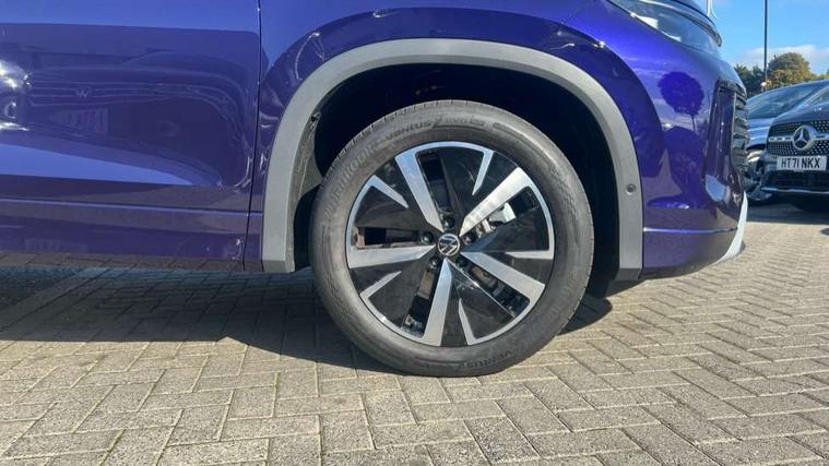 Adaptive cruise control (ACC), Digital Cockpit Pro - 10.25" high resolution dash display screen with customisable menus and information, Driver alert system, Driver attention monitoring system, Dynamic road sign display, E-Sim card for online connectivity, eCall emergency call system, Lane change system, Side assist, Rear traffic alert and Exit warning system, Multifunction front facing camera, Oncoming vehicle braking when turning including swerve support, Power assisted steering with speed sensitive, Start/stop system with regenerative braking, Voice activation spoken voice commands for telephone and navigation system, Warning signal and warning light for front and rear seatbelts not fastened, Wireless App-Connect, Adaptive chassis control DCC pro includes driving mode selection, Charging cable Mode 2 Type 2 / G (10A), Charging cable Mode 3 Type 2 / 3 (16A), Front shock absorption G08, Front wheel drive, Rear shock absorption, Digital radio reception (DAB), Diversity antenna for FM reception, Auto dimming interior rear view mirror, Automatic headlight control system, Body colour door handles, Body-coloured exterior mirror housings, Chrome moldings on the side windows, Comfort bumpers, Coming/leaving home lighting function, Exterior mirrors convex on the left and aspherical on the right, Heat insulating glass in side and rear windows, Laminated safety glass winshield, heat insulating, LED 3rd brake light, Puddle lights, Rain sensor windscreen wipers, Rear fog light on one side, reversing light on both sides, Rear side wing doors, Rear wiper, Reverse activated passenger's door mirror, Surround lighting with welcome light, Tilting and sliding panoramic sunroof with rear panoramic sunroof, 12V outlet in center console rear and in luggage compartment, 3 rear headrests, 3 rear seat bench in 2nd row, split folding, longitudinally movable and folding with load-through hatch, Carpet mats, front and rear, Centre console with illuminated storage compartment with sliding cover and two drinks holders, Door and side trim panel with leatherette insert, Flat luggage compartment floor, Front centre armrest, ISOFIX anchors for child seats on outer rear seats and front passenger seat compatible with i-Size, Mechanical rear seat release, Power adjustable lumbar support in front, Single front passenger seat, Sun visors with illuminated vanity mirrors, Comfort package with park assist pro - Tayron, 3 Point seat belts in front with pretensioners, 3 point seatbelts in outer rear with ECE label, Autonomous emergency braking front assist with pedestrian and cyclist monitoring, Driver and front passenger airbag with front passenger airbag deactivation, Electronic parking brake with auto hold, First aid kit with warning triangle and safety vest, Front and rear curtain airbags, Front and rear side airbags, Front centre airbag, Front disc brakes, Hill start assist, Rear disc brakes, Two tone horn, Decorative material set, Tool kit for tyre mobility set, Tyre mobility kit including compressor and sealing foam. In lieu of spare wheel,