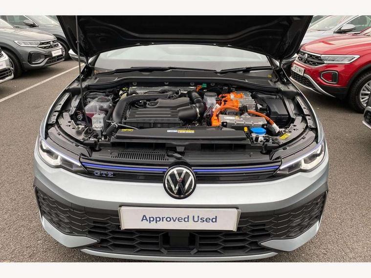 Activated carbon canister, Adaptive cruise control (ACC), Advanced driver attention and drowsiness monitor, Dynamic road sign display, Dynamic steering, E-Sim card for online connectivity, eCall emergency call system, Multi-color Digital cockpit pro, selection of different info profile possible, Multifunction front facing camera for distance control, Navigation system, Oncoming vehicle braking when turning including swerve support, Side assist blind spot lane change system, rear traffic alert and exit warning system, Speed limiter, Speedo, rev counter, electronic odometer, trip, service interval display, exterior temperature and fuel gauge, Traffic jam assist, Voice enhancer and voice control, Warning signal and warning light for front and rear seatbelts not fastened, We connect plus preparation, We connect preparation, Wireless app connect, Charging cable Mode 2 Type 2 (10A), Charging cable mode 3, type 2 32 A, Electric motor (hybrid electric vehicle) total system output 200kw, unit OEK A, Hybrid propulsion system, Start-stop system with battery regeneration (recuperation - energy recovery during braking), XDS electronic differential lock for improved traction and handling, 2 USB C ports in front, 2 USB charging sockets on the centre console in the rear charging capacity upto 45W, 6 Speakers - 4 in front and 2 in rear with central speaker, Digital radio reception (DAB), Diversity antenna for FM reception, Gaming platform via car app, Infotainment system with 12.9" display, Mobile phone interface with inductive charging feature, 3rd brake light, Auto dimming rear view mirror, Automatic headlamp activation with Coming home and Leaving home feature, Body colour door handles, Body coloured bumpers, air intake in honeycomb structure, Exterior mirrors convex on the left and aspherical on the right, Front and rear electric windows, Front fog lamps and cornering light, Heat insulating windshield made of laminated glass, LED separate daytime running light, Nameplate 'GTE' set, Rain sensor, Rear exhaust tailpipe, Rear fog light on one side and reversing lights on both sides, Rear side wing doors, Rear windscreen washer and wiper with interval delay, Remote electrically foldable door mirrors, puddle lights and reverse activated passenger's door mirror, Welcome light with surround lighting, 12V socket in front centre console, 12V socket in luggage compartment, 3 rear head restraints, 3 seat bench in 2nd row, 30 colour ambient lighting, illuminated center console storage compartment in front, Air care climatronic 3 Zone automatic climate control with rear air conditioning control panel, Aluminium gearshift handle, Brushed stainless steel pedals, Chrome plated radiator grille inserts, air vent surrounds and light switch surrounds, Entry lights, Front + rear black carpet mats, Front centre armrest, ISOFIX anchors for child seats on outer rear bench seats and on front passanger seat compatible for i-Size, Luggage compartment lighting, Rear cupholder and loadthough, Single front passenger seat, Soul black instrument panel, Soul black roof lining, Split folding backrest with centre armrest and unsplit rear seat bench, Sun visors with illuminated vanity mirrors, Driver assistance pack - Golf Estate/Hatchback Auto, Technology park and comfort pro package - Golf Hatchback, 3 point height adj front seatbelts + pretensioners, 3 rear three point seatbelts, ABS, Autonomous emergency braking front assist with pedestrian and cyclist monitoring, Child locks on rear doors, Driver and front passenger airbag with front passenger airbag deactivation, Electronic parking brake with auto hold, ESC (Electronic Stability Control), Extended pedestrian protection measures, Hill start assist, Rear disc brakes, Two tone horn, Tyre pressure loss indicator, Volkswagen roadside assistance, Anti theft wheel bolts, Preparation for alcohol interlock, Decorative inserts carbon grey for dashboard and front door trim panels, Sporty vehicle dynamics, Tool kit for tyre mobility set, Tyre mobility kit Includes 12V compressor and tyre sealant,