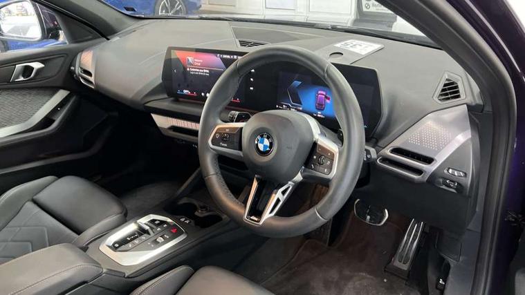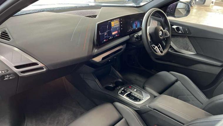 Active guard plus, Attentiveness assist, Bluetooth / WiFi interface for wireless connection of mobile terminal devices and audio streaming, BMW ConnectedDrive online services, BMW Live cockpit plus, BMW Teleservices, Check Control warning system for monitoring of lights and door/luggage compartment open warning, Eco pro mode, Electric power steering with Servotronic steering optimised at all speed ranges, Evasion assistant, Flat airvents in instrument panel with adjustable slats, Front and rear parking sensors, Front axle single joint with specific axle kinematics to minimise drive influences on steering + provide increased rigidity agile driving behaviour, Gearshift time display in manual mode, Integrated owners handbook, Left turn warning with brake function, My modes (Personal / Efficient / Sport), Oil sensor for level and grade, On board computer, Optimum shift indicator, Park assist including reversing assistant, lateral parking aid and reversing assist camera, Personal e-SIM, Personal Profile, Pull away assistant, Rigidly mounted rear subframe - Multi link construction with separate spring / damper configuration and excellent driving characteristics, Speed limit Info including no-overtaking indicator, Speed limiter, 49 litre fuel tank, Aluminium lightweight construction, Anti roll bar front and rear, Balancer shaft, Double VANOS twin scroll turbocharging system, Drive Performance Control, Electronic differential lock, Electronic selector lever, High precision injection, M Adaptive suspension, Petrol Particulate Filter, Steptronic transmission with double clutch, Twin tube gas filled shock absorbers with degressive characteristic curve, VALVETRONIC engine management, DAB Digital radio, Auto dimming rear view mirror, Automatic windscreen wipers and automatic headlight, Body colour door handles, Body colour mirror caps, Body colour roof trims, Chrome 'M' logo side designation, Chrome exhaust twin tailpipes round 90mm in left, Chrome kidney grille frame with Satin Aluminium struts, Direction indicator side lights in exterior mirrors, Electrically adjustable exterior mirror with mirror adjustment switch on drivers armrest and aspheric on driver side, convex on passenger side, Exterior M sport design elements, Fading support, Folding side mirrors with auto dimming/folding wing mirrors with auto dimming, Follow me home headlights, Front and rear bumper system with replaceable deformation elements, Front and rear electric windows with open and close fingertip control, anti trap facility and comfort closing, Front bumper panel with M specific design in vehicle colour with inserts in black high gloss, Front door sill finishers in black plastic with M designation in metallic look, Green tinted heat protection glazing, Heated rear window, High gloss black exterior mirrors, High gloss shadowline window frame, Recess cover mirror frames and B/C pillar embelisher trim, High level third brake light, Integrated front windscreen with washer jets, LED daytime running lights, LED eyebrow turn indicators, LED front fog lights, LED Headlights, Lightweight engineering, M identification on the sides, Matt black air guide grilles, Matt black wheel arch trim, Model badge on tailgate right, Nearside reverse light in rear light cluster, Preparation for high beam assistant, Rain sensor, Rear bumper panel with M-specific design in vehicle colour with inserts in black high gloss, Rear fog lights, Rear side wing doors, Rear window wiper, Shark fin antenna, Side sill covers with M specific design in body colour, Trailer stabilisation logic, Visible VIN plate, Welcome lighting, 12V power socket in front centre console with blanking plug, 3 rear seat head restraints, 3 seat bench in 2nd row, 3 spoke sports leather steering wheel with black leather and stitching, pearl chrome decorative finish, specific M Badge, Anthracite front and rear floor mats, Anthracite headlining, Black boot net with lashing eyes, Cargo function on 2nd seat row, Child seat ISOFIX attachment for two outer rear seats and front passenger seat with anchorage points, Conditioned based service, Driver and front passenger backrest net on rear, Driver and front passenger seat heating, Driver side folding compartment in instrument panel, Folding rear clothes hook, Footrest and pedals in black plastic, Four grab handles integrated in roof lining, Front and rear door pockets with bottle holders, Front and rear side armrest integrated into door trim, Front armrest with storage compartment, Gearshift paddles on steering wheel, Glove compartment, Height adjustable front head restraints, Luggage compartment for bag hooks on left and right, foldable luggage compartment liner and four lashing eyelets, Manual adjust steering wheel, Multi-function controls for steering wheel, Rear seat backrest with manual 60:40 split folding with 3 top tether clips integrated on rear of seat panels, Single front passenger seat, Storage compartment in centre console, Storage compartment in luggage compartment, Stowage of the parcel shelf in luggage compartment trim, Sun visors with vanity mirrors and insert tab, Two front centre console cupholders, Type C two USB ports in rear centre console, Upper retaining strap integrated into backrest rear panels, Connected pack professional - 1 Series, Interior lights pack - 1 Series, M Sport exterior styling aerodynamics pack - 1 Series, 2 tone horn, 3 point seatbelts on all seats, front pyrotechnic belt tensioners, stopper and belt force limiters, rear coded belt buckles, Airbags - Front driver/passenger, front and rear curtain head protection, front side, manual deactivation of front passenger airbag, Anti lock braking system (ABS) with brake assist, BMW emergency call, Brake drying, Braking readiness, Child proof locking system in rear door, Comfort modes, Cornering brake control, Crash sensor activating of airbags, Unlocking doors, hazard warning lights, interior light, safety battery terminal, Driver and front passenger seat belt sec