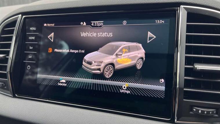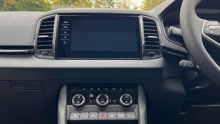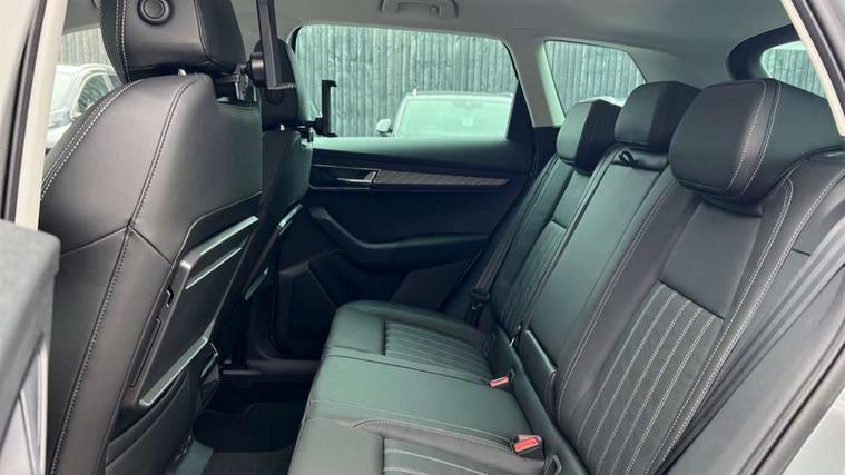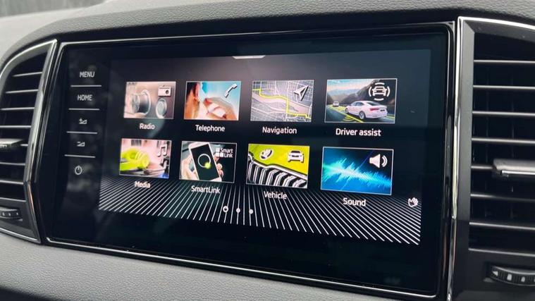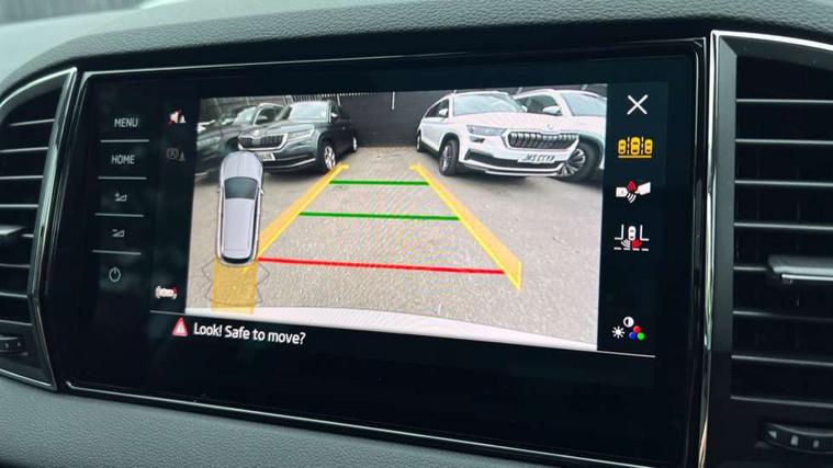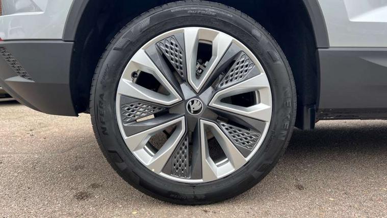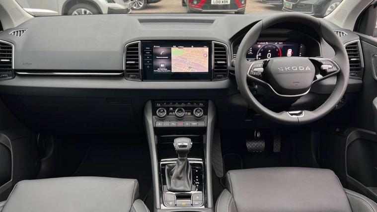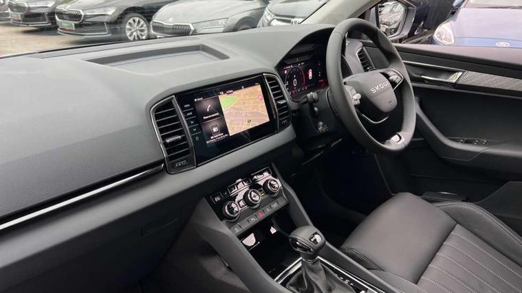 Advanced driver attention and drowsiness monitor, Drive Mode Selection including ECO function, Electro-mechanical PAS, Emergency services call system, Outside temperature gauge, Sensor for driver assistance systems, Service interval indicator, SmartLink wireless for Apple and wired for Android, Start/stop system with regenerative braking, Traffic sign recognition, USB C Port x 2 in front centre console, Virtual Cockpit - 10.25" digital display, Virtual pedal with electrically operated boot door, Wireless smartphone charging, DAB radio with Bluetooth, USB connection, Acoustic glass, Aero front windscreen wipers with intermittent function, Auto dimming rear view mirror with light and rain sensors, Black electric window control buttons, Body colour door mirrors and handles, Electric front and rear windows with child proof lock, Extended rear roof spoiler, Heated rear windscreen, LED daytime running lights, LED rear lights with high functionality welcome effect and dynamic indicators, Light assistant (coming/leaving home/tunnel light), Plastic scuff plates in door apertures, Privacy glass, Rear side wing doors, Rear window wiper with washer system and intermittent control, Safety reflectors on front doors, Third brake light, Unique dark chrome design logo on alloy wheels, 1.5 litre bottle holders in driver and front passenger door panels, 12V socket in boot, 12v socket in front centre armrest with storage compartment and rear air vents, 2 spoke leather heated multifunction steering wheel with DSG paddles, 2 x Tablet holder, 3 rear height adjustable headrests, 3 seat bench in 2nd row, 4 foldable roof handles with rear coat hooks, Black floor carpet, Cargo elements in boot, Chrome inner door handles, Decorative door sills with KAROQ badging, Foldable hooks in the boot, Front head restraints, Height adjustable front three point seats belts with tensioners, Height/reach adjust steering wheel, Ice scraper, Illuminated glovebox, Illuminated luggage compartment, Interior noise suppression, Isofix child seat preparation for front passenger seat, Isofix child seat preparation outer rear, Manual lumbar support for front seats, Pearl grey interior ceiling, Pen holder, Pollen filter, Rear boot cover, Rear package tray, Rear reading lights, Rubbish bin door, Safety vest holder, Single front passenger seat, Skoda lettering on steering wheel, Storage box in upper central dashboard closed, Sunvisors with illuminated vanity mirrors, Textile floor mats, Ticket holder, Columbus pack - Karoq, Design Pack - Karoq, Non Smokers pack, Parking pack - Karoq, Automatic door unlocking in case of crash, Automatic fuel cut off in case of crash, Driver airbag, Electronic parking brake with auto hold function, Emergency rear braking signal, ESC (incl. ABS+MSR+ASR+EDS+HBA+DSR+RBS+MKB), Front side airbags, Head airbags, Hill hold control, Knee airbags, Passenger airbag with switch-off function, Pedestrian monitor, Power operated child safety locks, Seatbelt reminder signalisation and pretensioner for all seats, Three point seatbelts rear, Two tone horn, Tyre pressure monitor, Alarm with interior monitoring, back up horn and tilt sensor with safe function, Electronic engine immobiliser, Keyless entry and start/stop, Remote central locking with 2 remote folding keys, Black centre console, Chrome framed air vents, Satin black dashboard, Anti-theft wheel bolts protection, Breakdown and tool kit,