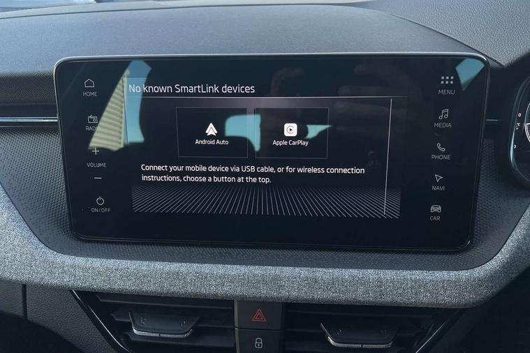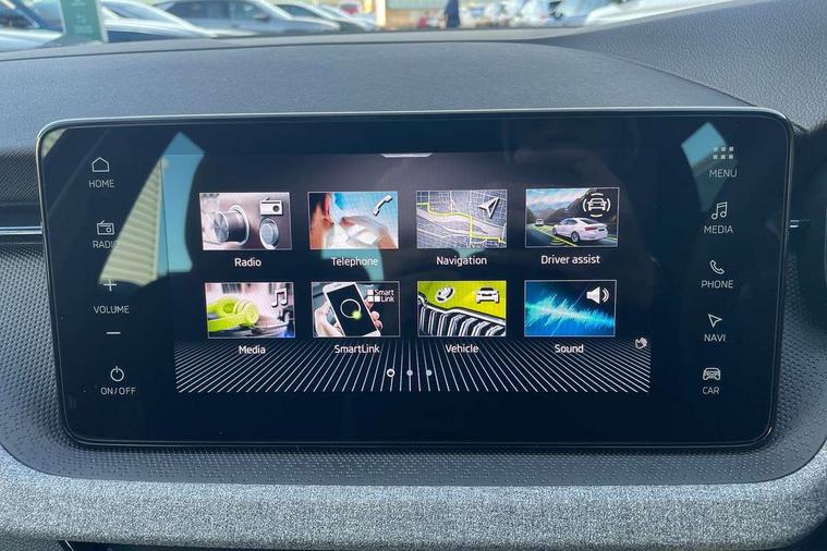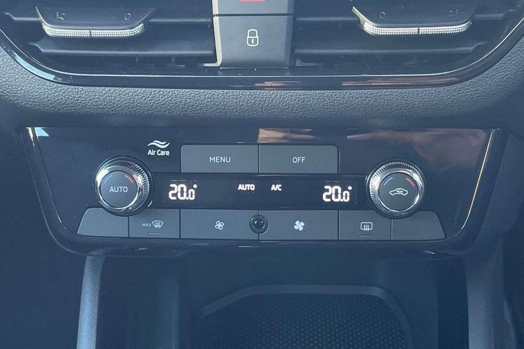 Advanced driver attention and drowsiness monitor, Bluetooth system, E-call, Front assist system, PAS, Rear parking sensors, Rear view camera, Service indicator, Speed limiter, Traffic sign recognition, Virtual cockpit with 10.25" display, Wireless smartlink, 4 USB C ports, 8 Speakers, 9.2" Skoda navigation display, DAB Digital radio, Auto dimming rear view mirror, Automatic headlight control with coming home and leaving home feature, Black roof rails, Body colour bumpers, Body colour door mirrors and handles, Chrome grille surround, Front and rear electric windows, Full LED headlights, Heated rear window, LED brake lights, LED daytime running lights, LED front turning lights, LED high beam, LED low beam, LED third brake light, Rear LED fog light, Rear side wing doors, Rear wiper, Ticket holder inside windscreen, 12V socket in luggage compartment, 3 seat bench in 2nd row, Black hotstamping, Cargo elements, Chrome inner door handles, Driver and passenger sun visors with vanity mirror, Dual zone climate control, Front and rear roof lights, Front centre armrest, Front head restraints, Glove compartment with illumination, Height adjustable driver seat, Height adjustable front passenger seat, Ice scraper, Inner circulation control with pollen filter, ISOFIX on front passenger seat, Isofix preparation for back seats, Krepp recycled decor inserts, Leather gearknob and handbrake lever, Loft cloth upholstery, Manual lumbar support for front seats, Net package and top tether hooks in boot space, Net under rear shelf, Overhead glasses storage compartment, Pocket on the back of both front seats include mobile phone pockets, Rake/reach adjustable steering wheel, Reading lights, Satin black door inserts, Single front passenger seat, Textile floor mats, Third rear headrest, Top tether for front passenger seat, Umbrella in driver's door, 3x3 point rear seatbelts, Airbags - driver and front passenger, Disc brakes, ESP, Extended and predictive pedestrian/cyclist protection, Front passenger airbag deactivation switch, Front side airbags with curtain airbags, Hill hold control, Manual leather parking brake, Manual rear child locks, One tone horn, Seatbelt reminder for driver an co-driver, Traction control, Tyre pressure monitor, Anti-theft alarm system with interior monitoring, backup horn, towing protection and remote central locking with SAFE system, Anti-theft wheel bolts, Electronic engine immobilizer,