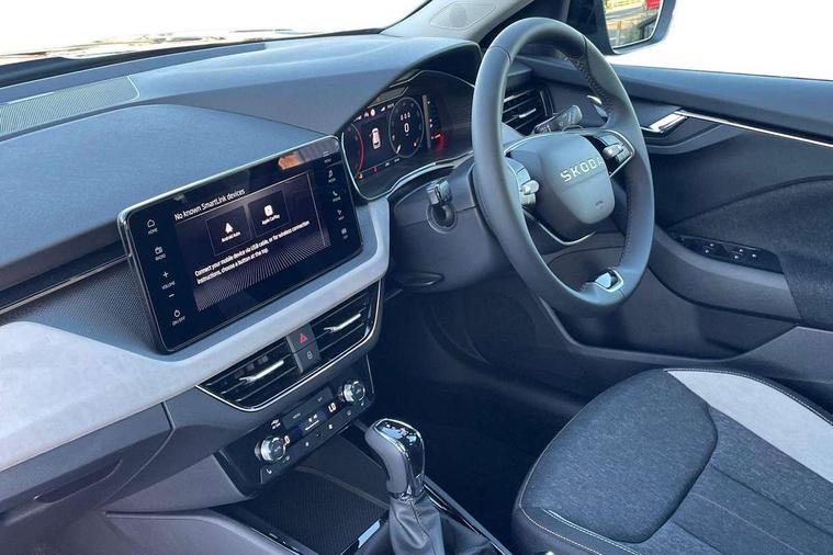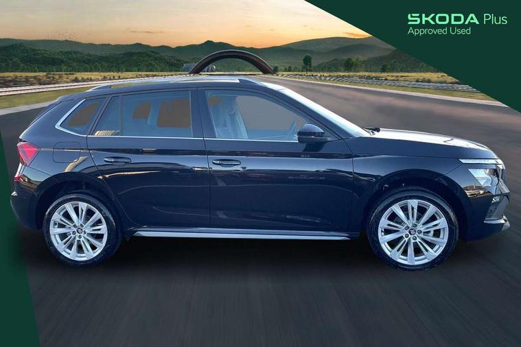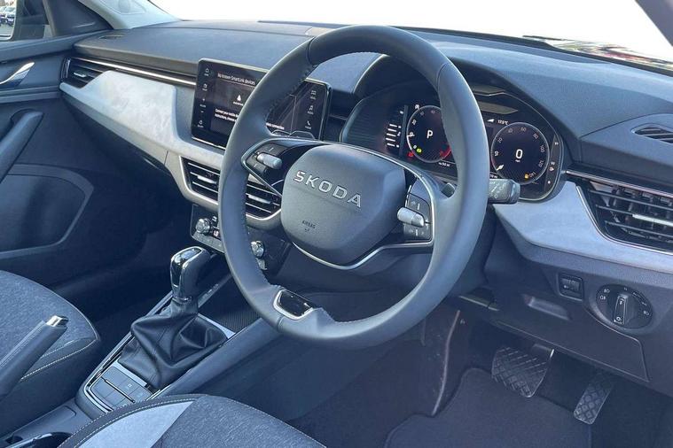 Advanced driver attention and drowsiness monitor, Bluetooth system, E-call, Front assist system, PAS, Rear parking sensors, Rear view camera, Service indicator, Speed limiter, Traffic sign recognition, Virtual cockpit with 10.25" display, Voice control system, Wireless smartlink, 4 USB C ports, 8 Speakers, 9.2" Skoda navigation display, DAB Digital radio, Auto dimming rear view mirror, Automatic headlight control with coming home and leaving home feature, Body colour bumpers, Body colour door mirrors and handles, Chrome grille surround, Chrome roof rails with chrome window surround, Front and rear electric windows, Heated rear window, LED daytime running lights, LED high beam, LED low beam, LED third brake light, Light sensors, Privacy glass, Rear side wing doors, Rear wiper, Ticket holder inside windscreen, 12V socket in luggage compartment, 3 seat bench in 2nd row, Accent black door inserts, Ambient lighting in white/red, Cargo elements, Chrome inner door handles, Copper hotstamping, Driver and passenger sun visors with vanity mirror, Dual zone climate control, Front and rear roof lights, Front centre armrest, Front head restraints, Glove compartment with illumination, Height adjustable driver seat, Height adjustable front passenger seat, Ice scraper, Inner circulation control with pollen filter, ISOFIX on front passenger seat, Isofix preparation for back seats, Leather gearknob and handbrake lever, Lodge cloth upholstery, Manual lumbar support for front seats, Net package and top tether hooks in boot space, Net under rear shelf, Overhead glasses storage compartment, Pocket on the back of both front seats include mobile phone pockets, Rake/reach adjustable steering wheel, Reading lights, Rear centre armrests, Single front passenger seat, Suedia grey decor inserts, Textile floor mats, Third rear headrest, Top tether for front passenger seat, Umbrella in driver's door, Convenience pack - Kamiq, 3x3 point rear seatbelts, Airbags - driver and front passenger, Disc brakes, ESP, Extended and predictive pedestrian/cyclist protection, Front passenger airbag deactivation switch, Front side airbags with curtain airbags, Hill hold control, Manual leather parking brake, Manual rear child locks, One tone horn, Seatbelt reminder for driver an co-driver, Traction control, Tyre pressure monitor, Anti-theft alarm system with interior monitoring, backup horn, towing protection and remote central locking with SAFE system, Anti-theft wheel bolts, Electronic engine immobilizer,