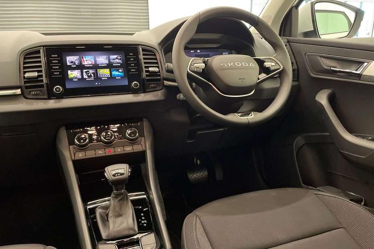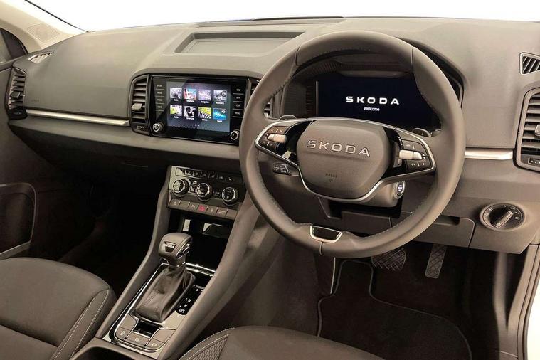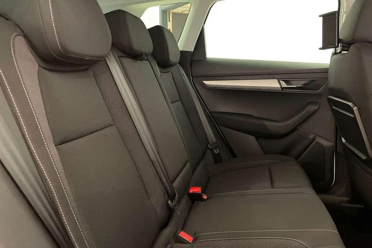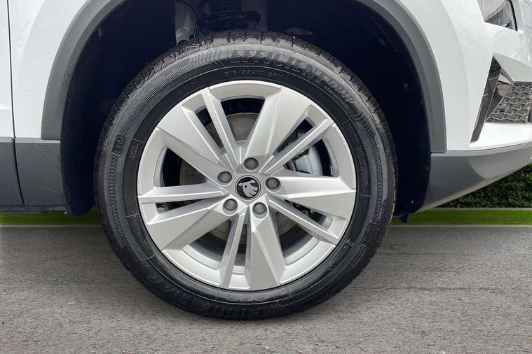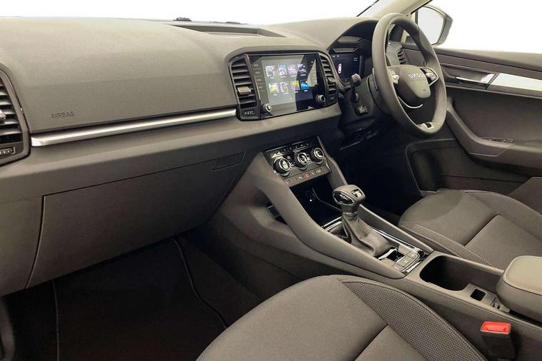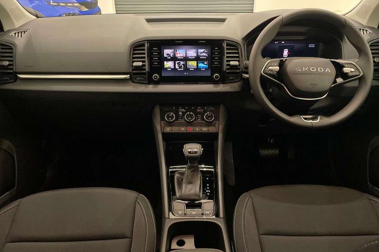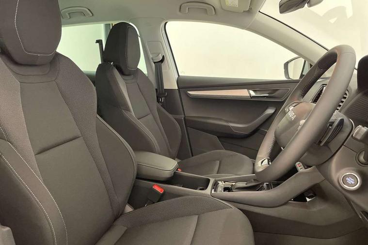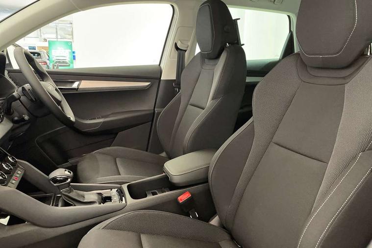 Advanced driver attention and drowsiness monitor, Amundsen navigation system with 8" touchscreen display and integrated WLAN and web radio, Electro-mechanical PAS, Emergency services call system, Lane assist, Outside temperature gauge, Sensor for driver assistance systems, Service interval indicator, SmartLink wireless for Apple and wired for Android, Start/stop system with regenerative braking, Traffic sign recognition, USB C Port x 2 in front centre console, Virtual Cockpit - 10.25" digital display, Wireless smartphone charging, 8 Speakers, DAB radio with Bluetooth, USB connection, Acoustic glass, Aero front windscreen wipers with intermittent function, Auto dimming rear view mirror with light and rain sensors, Black electric window control buttons, Body colour door mirrors and handles, Electric front and rear windows with child proof lock, Electrically adjustable heated folding and auto dimming door mirrors, Front fog lights, Headlight range control, Heated rear windscreen, LED daytime running lights, LED Headlights, LED rear lights with high functionality welcome effect and dynamic indicators, Light assistant (coming/leaving home/tunnel light), Plastic scuff plates in door apertures, Privacy glass, Rear side wing doors, Rear window wiper with washer system and intermittent control, Safety reflectors on front doors, Third brake light, Unique dark chrome design logo on alloy wheels, 1.5 litre bottle holders in driver and front passenger door panels, 12V socket in boot, 12v socket in front centre armrest with storage compartment and rear air vents, 2 spoke leather heated multifunction steering wheel with DSG paddles, 2 x Tablet holder, 3 rear height adjustable headrests, 3 seat bench in 2nd row, 4 foldable roof handles with rear coat hooks, Black floor carpet, Cargo elements in boot, Chrome inner door handles, Driver/front passenger reading lights, Foldable hooks in the boot, Folding tables on the front seat backrests, Front head restraints, Height adjustable driver and passenger seat, Height adjustable front three point seats belts with tensioners, Height/reach adjust steering wheel, Ice scraper, Illuminated glovebox, Illuminated luggage compartment, Interior noise suppression, Isofix child seat preparation for front passenger seat, Isofix child seat preparation outer rear, Loft fabric upholstery, Manual lumbar support for front seats, Pearl grey interior ceiling, Pen holder, Pollen filter, Rear boot cover, Rear package tray, Rear reading lights, Rubbish bin door, Safety vest holder, Single front passenger seat, Skoda lettering on steering wheel, Storage box in upper central dashboard closed, Sunvisors with illuminated vanity mirrors, Textile floor mats, Ticket holder, Umbrella under passenger seat, Under passenger seat storage compartment, Non Smokers pack, Parking pack - Karoq, Winter pack with heated front seats - Karoq, Automatic door unlocking in case of crash, Automatic fuel cut off in case of crash, Driver airbag, Electronic parking brake with auto hold function, Emergency rear braking signal, ESC (incl. ABS+MSR+ASR+EDS+HBA+DSR+RBS+MKB), Front assist, Front side airbags, Head airbags, Hill hold control, Knee airbags, Passenger airbag with switch-off function, Pedestrian monitor, Power operated child safety locks, Seatbelt reminder signalisation and pretensioner for all seats, Three point seatbelts rear, Two tone horn, Tyre pressure monitor, Alarm with interior monitoring, back up horn and tilt sensor with safe function, Electronic engine immobiliser, Keyless entry and start/stop, Remote central locking with 2 remote folding keys, Anodized cross door decor, Black centre console, Chrome framed air vents, Satin black dashboard, Satin black door trim, Anti-theft wheel bolts protection, Breakdown and tool kit,