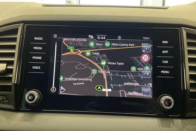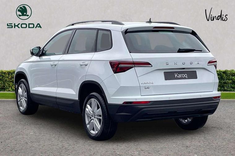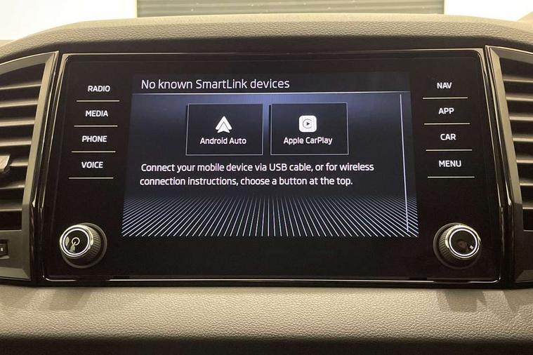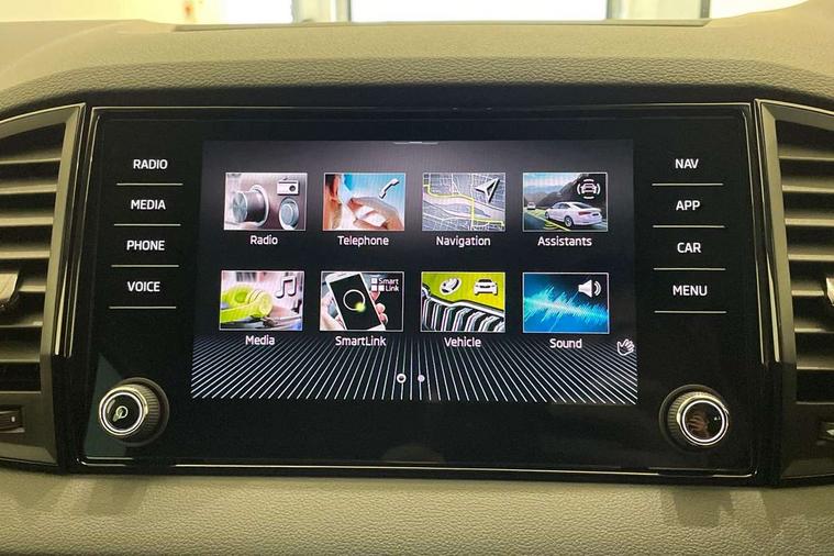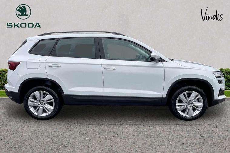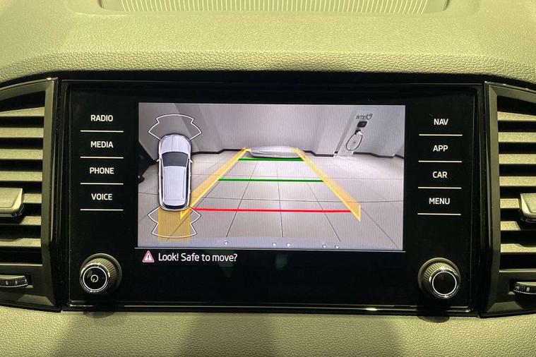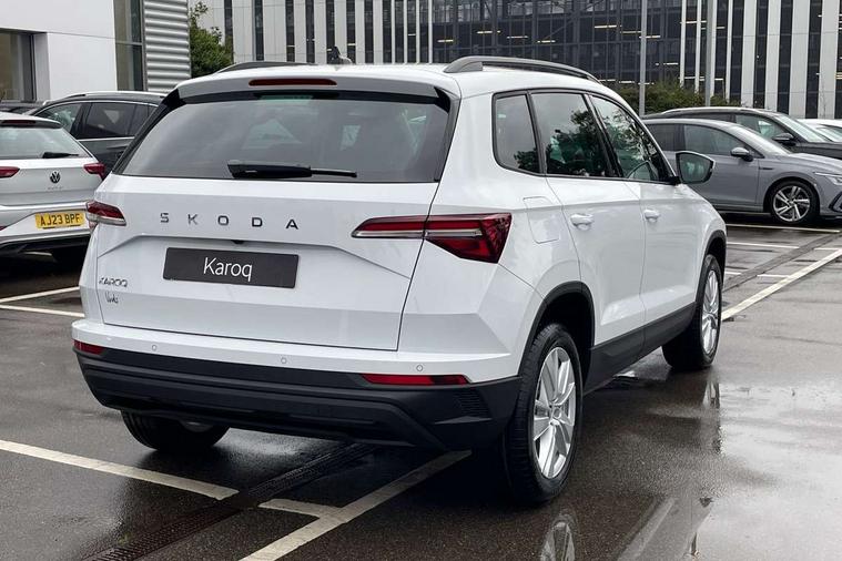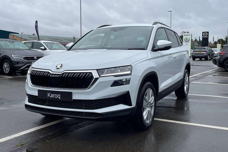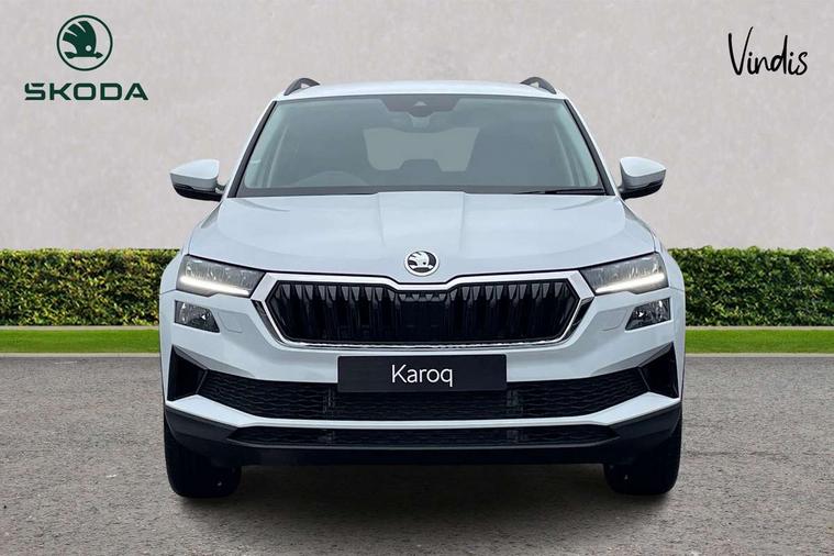 Advanced driver attention and drowsiness monitor, Amundsen navigation system with 8" touchscreen display and integrated WLAN and web radio, Electro-mechanical PAS, Emergency services call system, Lane assist, Outside temperature gauge, Sensor for driver assistance systems, Service interval indicator, SmartLink wireless for Apple and wired for Android, Start/stop system with regenerative braking, Traffic sign recognition, USB C Port x 2 in front centre console, Virtual Cockpit - 10.25" digital display, Wireless smartphone charging, 8 Speakers, DAB radio with Bluetooth, USB connection, Acoustic glass, Aero front windscreen wipers with intermittent function, Auto dimming rear view mirror with light and rain sensors, Black electric window control buttons, Body colour door mirrors and handles, Electric front and rear windows with child proof lock, Electrically adjustable heated folding and auto dimming door mirrors, Front fog lights, Headlight range control, Heated rear windscreen, LED daytime running lights, LED Headlights, LED rear lights with high functionality welcome effect and dynamic indicators, Light assistant (coming/leaving home/tunnel light), Plastic scuff plates in door apertures, Privacy glass, Rear side wing doors, Rear window wiper with washer system and intermittent control, Safety reflectors on front doors, Third brake light, Unique dark chrome design logo on alloy wheels, 1.5 litre bottle holders in driver and front passenger door panels, 12V socket in boot, 12v socket in front centre armrest with storage compartment and rear air vents, 2 spoke leather heated multifunction steering wheel with DSG paddles, 2 x Tablet holder, 3 rear height adjustable headrests, 3 seat bench in 2nd row, 4 foldable roof handles with rear coat hooks, Black floor carpet, Cargo elements in boot, Chrome inner door handles, Driver/front passenger reading lights, Foldable hooks in the boot, Folding tables on the front seat backrests, Front head restraints, Height adjustable driver and passenger seat, Height adjustable front three point seats belts with tensioners, Height/reach adjust steering wheel, Ice scraper, Illuminated glovebox, Illuminated luggage compartment, Interior noise suppression, Isofix child seat preparation for front passenger seat, Isofix child seat preparation outer rear, Loft fabric upholstery, Manual lumbar support for front seats, Pearl grey interior ceiling, Pen holder, Pollen filter, Rear boot cover, Rear package tray, Rear reading lights, Rubbish bin door, Safety vest holder, Single front passenger seat, Skoda lettering on steering wheel, Storage box in upper central dashboard closed, Sunvisors with illuminated vanity mirrors, Textile floor mats, Ticket holder, Umbrella under passenger seat, Under passenger seat storage compartment, Non Smokers pack, Parking pack - Karoq, Winter pack with heated front seats - Karoq, Automatic door unlocking in case of crash, Automatic fuel cut off in case of crash, Driver airbag, Electronic parking brake with auto hold function, Emergency rear braking signal, ESC (incl. ABS+MSR+ASR+EDS+HBA+DSR+RBS+MKB), Front assist, Front side airbags, Head airbags, Hill hold control, Knee airbags, Passenger airbag with switch-off function, Pedestrian monitor, Power operated child safety locks, Seatbelt reminder signalisation and pretensioner for all seats, Three point seatbelts rear, Two tone horn, Tyre pressure monitor, Alarm with interior monitoring, back up horn and tilt sensor with safe function, Electronic engine immobiliser, Keyless entry and start/stop, Remote central locking with 2 remote folding keys, Anodized cross door decor, Black centre console, Chrome framed air vents, Satin black dashboard, Satin black door trim, Anti-theft wheel bolts protection, Breakdown and tool kit,