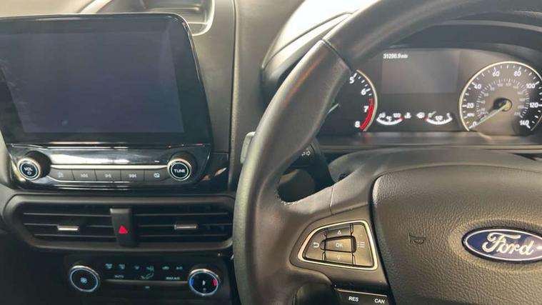 Cruise control, e-Call (emergency call), Easy fuel capless refuelling system, Ford SYNC 3 nav system with DAB radio, 8" screen, emergency assistance, Apple car play/Android auto, 2x USB, 6 speakers, Ford pass connect, Intelligent speed limiter, PAS, Rear parking sensors, Rear view camera, Traffic sign recognition, Trip computer, Auto dimming rear view mirror, Automatic front wipers, Automatic headlights, Black roof rails, Body colour door handles, Body colour roof, Body coloured bumpers, Body coloured door mirrors, Chrome front grille, Chrome lower window surround, Electrically adjustable and heated door mirrors, Front fog lights, Headlight levelling control, LED day running lights, LED third brake light, Power front and rear windows, Puddle lights, Quick-clear heated windscreen, Rear wiper, 12V socket in front and rear, 60/40 split rear seats, Ambient lighting, Centre console with sliding front armrest, Cooled glovebox, Courtesy lights with map reading light, Driver height adjust, Driver seat height/lumbar adjust, Driver's side glovebox, Driver/passenger sunvisors and lidded vanity mirrors, EATC - Electronic Auto Temperature control, Folding grab handles, Front floor mats, Front head restraints, Front seat back map pockets, Groove cloth/partial sensico upholstery, Illuminated glovebox, Illuminated luggage compartment, Isofix system on outer rear seats, Leather trimmed steering wheel with remote audio control, Luggage compartment carpet, Overhead console with sunglasses holder, Rake adjustable rear seats, Reach + rake adjustable steering column, Rear headrests, Sensico gear shift gaiter, Sensico handbrake, Storage drawers under front seats, Tie down hooks, Variable boot floor, 3x3 point rear seatbelts, ABS, Autonomous emergency braking, Child locks on rear doors, Curtain airbags, Driver airbag, Drivers knee airbag, Electronic Stability Programme with hill launch assist, Front passenger airbag deactivation, Front side airbags, Passenger airbag, Pre collision assist system with AEB, Seatbelt reminder for driver and front passenger, Traction control, Tyre pressure monitoring system, Immobiliser, MyKey system, Remote central locking, Thatcham 1 volume sensing alarm, 17" shadow silver finished alloy wheels, Low rolling resistance tyres, Tyre inflation kit,