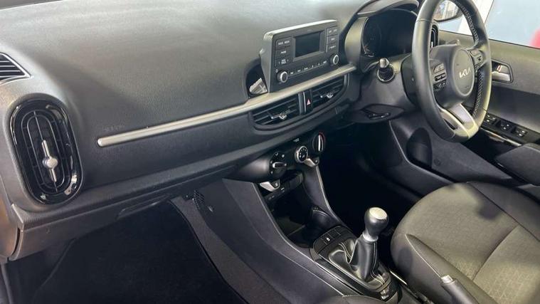 3.8" monochrome audio display with RDS and DAB, Emergency call service, Emergency stop signalling system, External temperature gauge, Motor driven power steering, Tachometer, Tailgate, Trip computer, 4 speaker audio system, Bluetooth with music streaming, Steering wheel mounted controls, USB ports for connection of a media device, Automatic headlight control system, Black radiator grille with chrome surround, Body colour bumpers, Body colour mirrors and door handles, Day/night rear view mirror, Daytime running lights, Electric adjustable heated door mirrors, Front and rear electric windows with drivers's auto up/down function, Headlamp levelling, Heated rear window, High mount brake light, MFR - Multi Focus Reflector halogen headlights with black bezel, Rain sensor, Rear fog lights, Rear side wing doors, Rear wash/wipe, Speed variable front wipers, Tinted glass, Visible VIN plate, Welcome and follow-me home light functionality, 1 x rear coat hook, 12V power point front, 2 seat bench in 2nd row, 3 x passenger assist grips, 60/40 split/folding 2nd row of seats, All round height adjustable headrests, Cupholders in centre console, Driver and front passenger sunvisor with vanity mirror, Driver seat height adjust, Front cabin lights, Glovebox, High gloss lower centre fascia trim, door armrest and air vents, ISOFIX Child seat top tethers and anchor fixings, Leather trimmed steering wheel and gearshift, Luggage area light, Luggage area parcel shelf, Manual air conditioning, Passenger front seatback pockets, Premium cloth upholstery, Silver paint finished interior door handles, Single front passenger seat, Slide/reclining front seats, Tilt adjustable steering wheel, Advanced Driver Assistance Pack - Picanto, 2 x 3-point rear seatbelts, ABS/EBD, Automatic unlocking of doors in case of impact, Dual front airbags, ESC + BAS + VSM + HAC, Front passenger airbag cut-off switch, Front seatbelt height adjusters, Front seatbelt pretensioners + load limiters, Hill hold control, Knee airbags, Rear child proof door locks, Seatbelt warning, Side impact protection, Torque vectoring brake based and straight line stability (SLS), Traction control, Twin curtain airbags, Twin front side airbags, Tyre pressure monitoring system, Anti theft alarm, Engine immobiliser, Folding key, Locking wheel nuts, Remote central door locking, 14" alloy wheels, Tyre mobility kit,