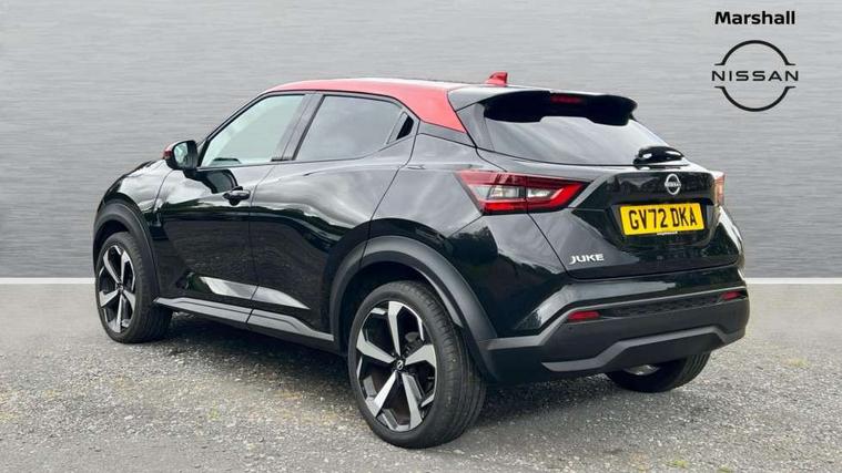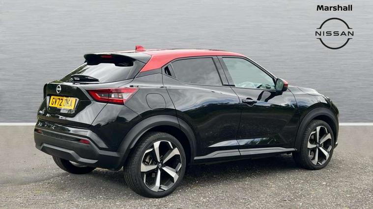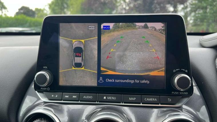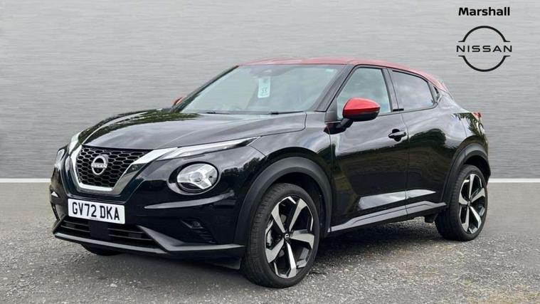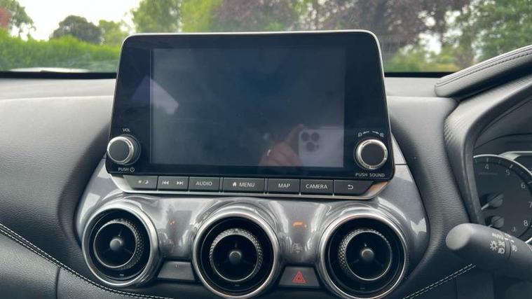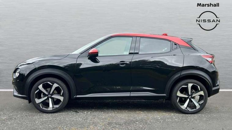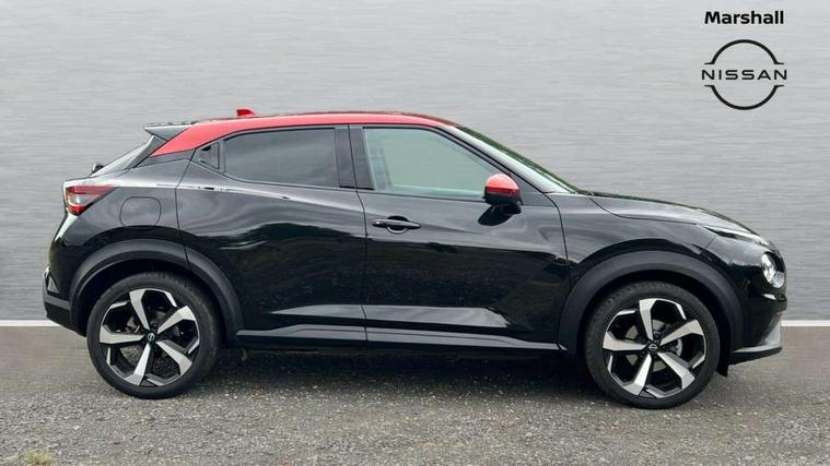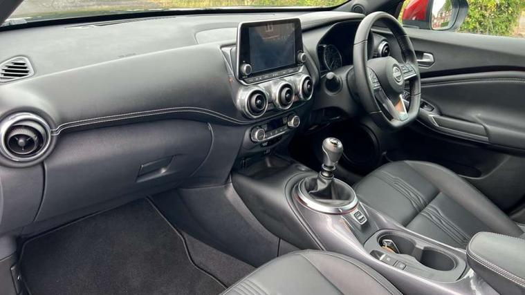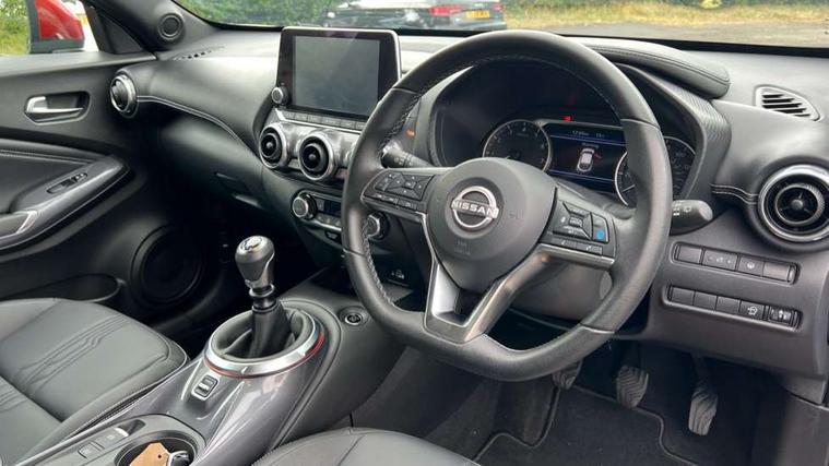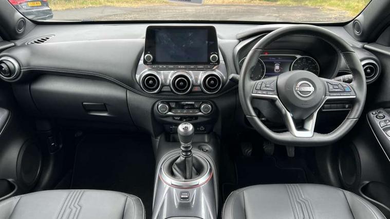 7" full colour TFT screen combimeter, Apple CarPlay and Google Android auto, Drive modes select (Eco, normal and sport), Emergency and breakdown call, Front parking sensor, Idle start/stop system, Intelligent lane intervention, Lane departure warning system, Nissan connect 8" touch screen entertainment system, Nissan connect nav with TomTom traffic, Nissan connect services and Wifi connection, Outside temperature sensor, Power Steering, Rear parking sensor, Traffic sign recognition, Trip computer, Voice recognition, Gasoline particulate filter, 10 Bose speakers 6 speakers and 2 headrest speakers for driver/passenger seats, Bluetooth system, USB, Aux-in and 12V socket, Bose personal sound stage control, DAB Digital radio, Rear console USB port, Auto dimming interior rear view mirror, Auto headlights, Automatic hazard signal with emergency stop signal, Body colour bumpers, Body colour door handles, Electrically adjustable door mirrors with integrated indicators, Follow me home headlights, Front and rear electric window with one touch driver window, Heated and auto folding door mirrors, High beam assist, LED daytime running lights, LED front fog lights, LED headlamps, LED rear fog lamp, LED rear lamps, Rain sensor windscreen wipers, Rear privacy glass, Rear side wing doors, Rear wiper, Thermaclear heated windscreen, Three blink turn signal, 3 height adjustable rear headrests, 3 seat bench in 2nd row, 60/40 split folding rear seat, Automatic climate control, Card holder on driver sunvisor, Door ambient lighting, Driver and passenger sliding and reclining seats, Driver seat back pocket, Driver side rear coat hanger, Driver/passenger sunvisors and vanity mirrors, Front and rear cabin lights, Front armrest, Front door pockets with bottle holders, Front head restraints, Front passenger isofix child seat anchorage point, Front/rear passenger grab handles, Gear console ambient circle lighting, Grey synthetic leather kneepad, Heated front seats, Height adjustable driver's seat, Height adjustable passenger seat, Internal chrome door handles, Leather gearshift knob, Leather steering wheel, Luggage board, Luggage space lighting, Monoform sporty seats, Multifunction steering wheel, Passenger seat back pocket, Rear door bottle holders, Single front passenger seat, Synthetic leather upholstery, Telescopic steering wheel adjustment, Two cupholders in front centre console, Two rear isofix child seat anchorage points with top tether, Welcome light and console tray ambient lighting, Advanced safety shield pack - Juke, ABS with EBD and brake assist, Active ride control, Active Trace Control, Driver and passenger airbags, Driver and passenger side airbags, Electric handbrake with auto hold function, Electronic Stability Programme (ESP), Front and rear curtain airbags, Height adjustable seatbelts, Hill start assist, Intelligent emergency braking with pedestrian and cyclist recognition, Rear door child safety locks, Seatbelt reminder for driver/front passenger and rear seats, Single tone horn, Three 3 point rear seatbelts, Traction control, Tyre pressure monitoring system, VDC Dynamic Vehicle Control, Ventilated rear brake discs, Alarm, Immobiliser, Intelligent key and start push button with walk away lock and approach unlock functions, Remote central locking,