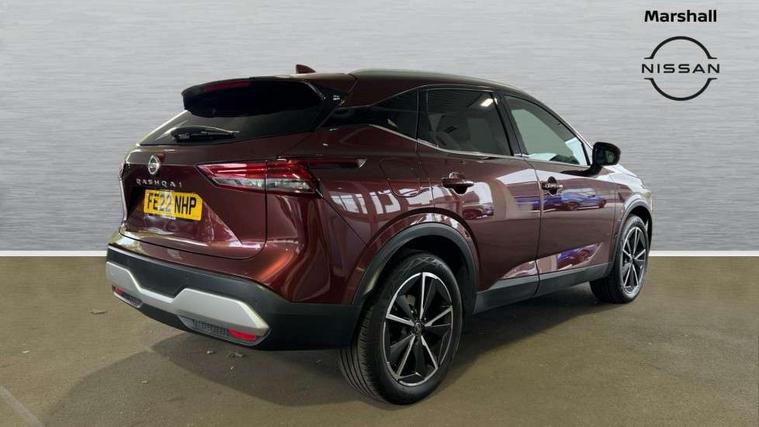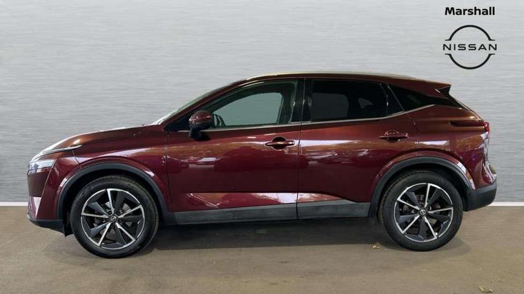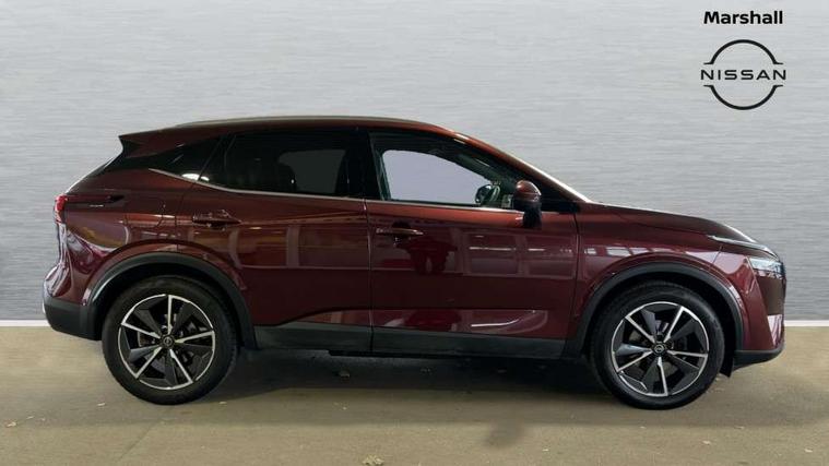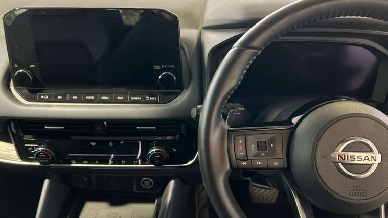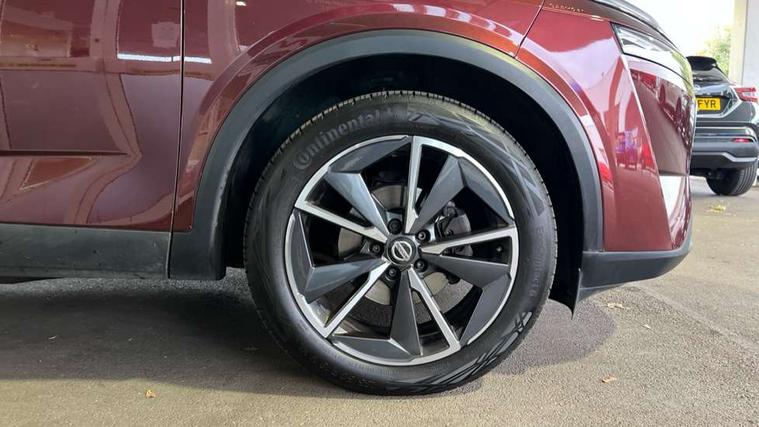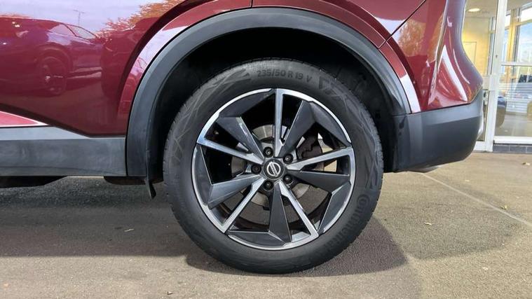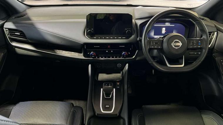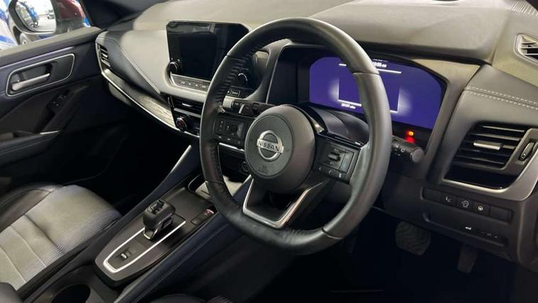 Blind spot warning, Drive modes (sport, normal, eco), Electric speed sensitive power steering, Emergency and breakdown call, Front and rear parking sensors, Full Digital 12.3" TFT Digital Combimeter, Google maps services - search, weather, 3D maps and Google street view, Hands free power tailgate, Idle stop/start system, Intelligent around view monitor, Intelligent Cruise control (ICC), Intelligent driver alert system, Intelligent forward collision warning, Intelligent lane intervention, Lane departure prevention, Lane departure warning system, Moving object detection, Nissan connect 9" touchscreen infotainment system, Nissan connect navigation, Push button starter, Rear cross traffic alert, Remote control services - door locks, lights, horn and car locator, Telematics - notifications and connectivity services, TomTom live traffic services, Traffic sign recognition with legal speed adjustment, Trip computer, Virtual personal assistant and firmware over the air capability, Wireless Apple CarPlay and wired Android Auto, Wireless charging pad, 6 speakers, AM/FM audio system with DAB, Bluetooth audio streaming, Front USB connections (Type-A and Type-C), Rear USB charging only ports (Type-A and Type-C), Auto dimming rear view mirror, Auto rear wiper when reversing, Body colour mirror caps, Body coloured door handles, Bodyside mouldings, Chrome side window finisher, Door handle with button, Dusk sensor, Electric auto folding door mirrors, Electrically adjustable and heated door mirrors with LED turn indicator, Fixed panoramic glass roof with electric sunshade, Follow me home headlights, Front and rear LED turning signals, Intelligent auto headlights, LED daytime running lights, LED rear lights, One touch front and rear electric windows with remote opening and closing, Partially body coloured bumpers, Privacy glass, Rear roof spoiler, Rear side wing doors, Rear styling plate, Roof rails, Shark fin antenna, Splash free rain sensing wipers, Super UV and infrared cut glass, Three blink turn signal, 12v power socket in dashboard and luggage, 2 way electrical driver lumbar adjustment, 2x Rear coat hooks, 3 bench rear seats in 2nd row, 3 rear headrests, 4 folding assist grip, 6 Luggage hooks - 4 on floor, 2 on side, 60/40 split folding rear seat bench, 8 way electric adjustable drivers seat, Ambient lighting around centre console, Ambient lighting in front doors, Centre console storage tray, Chrome interior door handles, Cloth/syntech leather monoform upholstery, Dark headlining, Driver and front passenger sunvisors with illuminated vanity mirrors, Driver seat back pocket, Dual zone automatic climate control with pollen filter, Front and rear door storage, Front cupholders x 2, Front door with bottle holders, Glovebox with light, Hard trunk cover, Height adjustable front headrests, Leather steering wheel, Luggage board system, Luggage space lighting, Manual lumbar support on passenger seat, Manually adjustable passenger (slide recline + lifter), Multifunction steering wheel, Passenger seat back pocket, PVC front centre console and armrest, Rear armrest with 2 cupholders, Rear door bottle holders, Single front passenger seat, Soft PVC kneepad, Steering wheel gearshift paddles, Steering wheel switches, Tilt/telescopic adjustable steering wheel, Two rear isofix child seat anchorage points with top tether, Welcome light and doors with console tray ambient lighting, Heat pack - Qashqai, Tech Pack (ProPILOT + HUD), 3x3 point rear seatbelt pretensioners + load limiters, ABS, ESP, EBD and brake assist, Active brake limited slip, Auto hold function, Child locks on rear doors, Curtain and front side, far side airbags, Driver and passenger airbags, Driver, passenger and 2nd row rear seat belt reminder, Electronic parking brake, Front seatbelt pretensioners + load limiters, Height adjustable front seatbelts, Hill start assist, Intelligent blind spot intervention, Intelligent front emergency braking with pedestrian, cyclist recognition and junction assist, Intelligent rear automatic braking, Tyre pressure monitoring system, Vehicle dynamic control, Capless fuel filler, Engine immobiliser, Nissan i-key, Rear bumper with silver insert, Remote central door locking with deadlocking, Thatcham Cat.1 alarm, 19" Alloy wheels,