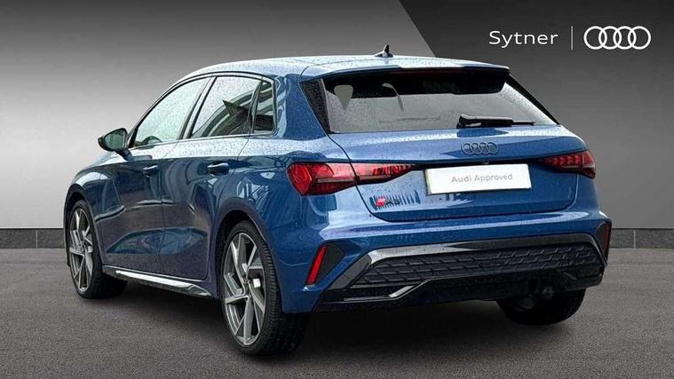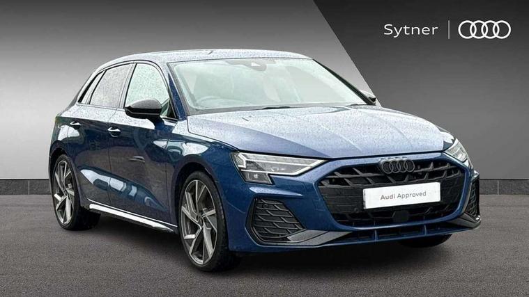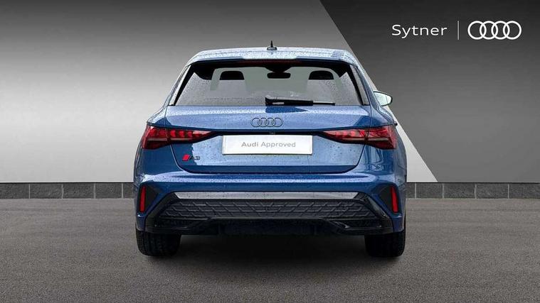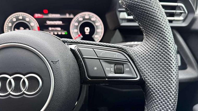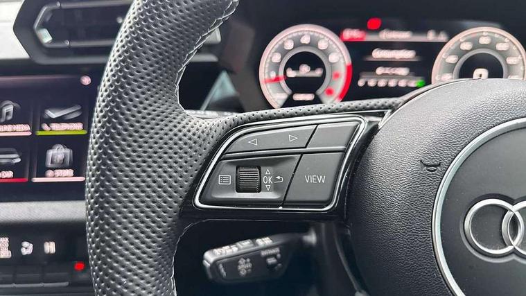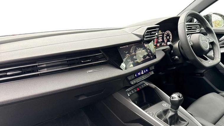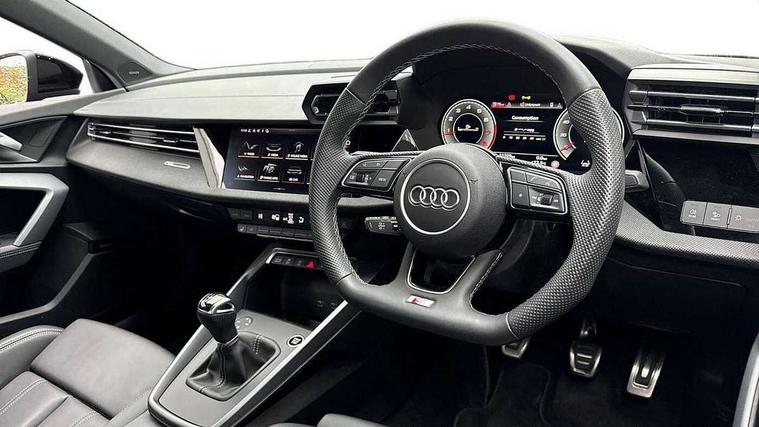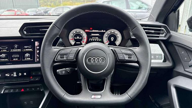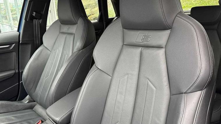Adjustable speed limiter, Audi drive select, Audi smartphone interface with app store includes wireless Apple carplay, Android auto and Amazon alexa integration, Audi virtual cockpit plus - 12.3" full HD resolution dynamic digital instrument cluster, Automatic start/stop system with recuperation, Bluetooth interface, Camera based traffic sign recognition, Collision avoidance assistant, Cruise control, Distraction and Fatigue warning, e-Call (emergency call), Electromechanical power speed sensitive steering, Lane departure warning system, MMI Navigation Plus with high resolution 10.1" colour touch screen display, Park Assist with parking system Plus, Service indicator, Tailgate, Trip computer, Voice control system with natural language interaction, Sports suspension, Audi Phonebox light with wireless charging, Audi sound system - 10 loudspeakers including centre loudspeaker and subwoofer, DAB Digital radio, USB ports with charging function in the rear, Acoustic glass windscreen, All weather light, Aluminium window trim, Auto dimming frameless rear view mirror, Automatic dynamic range control, Body colour exterior mirrors, Chrome exhaust tailpipes, Dipped beam, main beam, position light and turning light, Electrically adjustable/heated/folding/auto dimming door mirrors with integrated LED indications + kerb view function for passenger side, Exterior model badging, Front and rear side air inlets in grained matt black with dark liquid chrome frame, Front electric windows, Front radiator grill in high gloss dark chrome, Heat insulating glass windscreen, Illuminated door sills with aluminium inserts at the front with S logo, Intersection light, LED 3rd brake light, LED brake lights, LED daytime running x3, LED headlights with LED rear lights and dynamic rear indicators, LED rear number plate lights, LED reverse light, LED tail lights, Light and rain sensors, Manoeuvring light, Motorway light, Privacy glass - dark tinted rear window, rear door and side windows, Rear diffuser and grill in grained matt black with inlay in dark liquid chrome, Rear electric windows, Rear side wing doors, Rear wiper, S line bumpers, S roof spoiler, Side S line emblems on front wings, Side sill trim in dark liquid chrome, Static Cornering lights, 12V socket and storage compartment in front centre console, 3 seat bench in 2nd row, 3 spoke flat bottomed multi-function leather sport steering wheel, 3-zone deluxe automatic air conditioning, 4 way electrically adjustable lumbar support for driver and front passenger, 40/20/40 split folding rear seat bench, Black cloth headlining, Black front and rear floor mats, Front and rear centre armrest in artificial leather with contrasting stitching on armrests and instrument panel, Front and rear headrests, Heated front seats, Height and reach adjustable steering wheel, Manual boot compartment lid, Manually adjustable front seats, Rear centre armrest with cupholder, S badging on the steering wheel, Seat side bolsters, Single front passenger seat, Stainless steel pedals and front footrest in black, Twin leather upholstery with front sports seats S embossed logo, Aluminium interior elements pack - A3, Multi-coloured LED interior lighting package with Multi-coloured contour lighting of instrument panel - A3, 3x3 point rear seat belts, Driver and front passenger airbag with passenger airbag deactivation, Electronic Stabilisation Control (ESC) including ABS, ASR and EDL, First aid kit with warning triangle and 2 safety vests, Front side airbags with head airbags and interaction airbag, Hill hold assist, Pre-sense front with pedestrian and cyclist detection, Seatbelt monitoring, Tyre pressure loss indicator, Anti theft alarm, Anti-theft wheel bolts, Electronically operated child locks, Immobiliser, Remote central locking with safelock, Black dashboard, Inlay in dark aluminium spectrum,