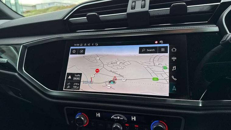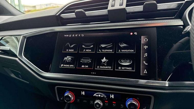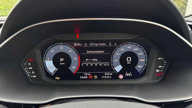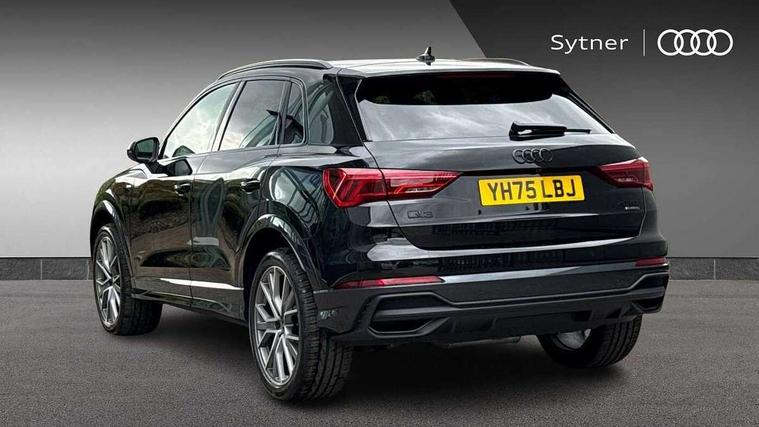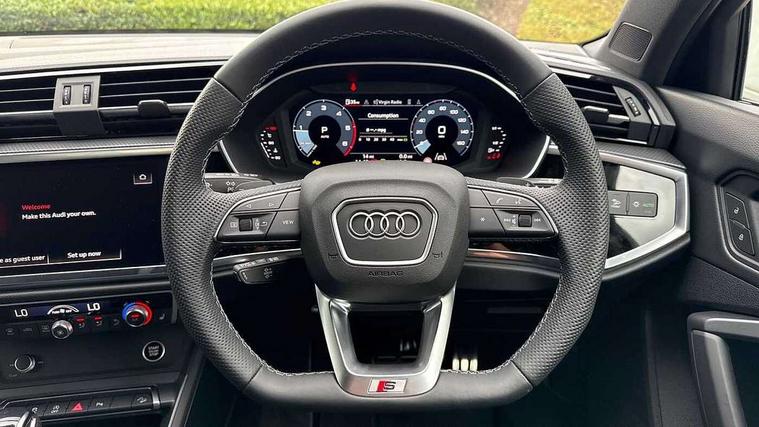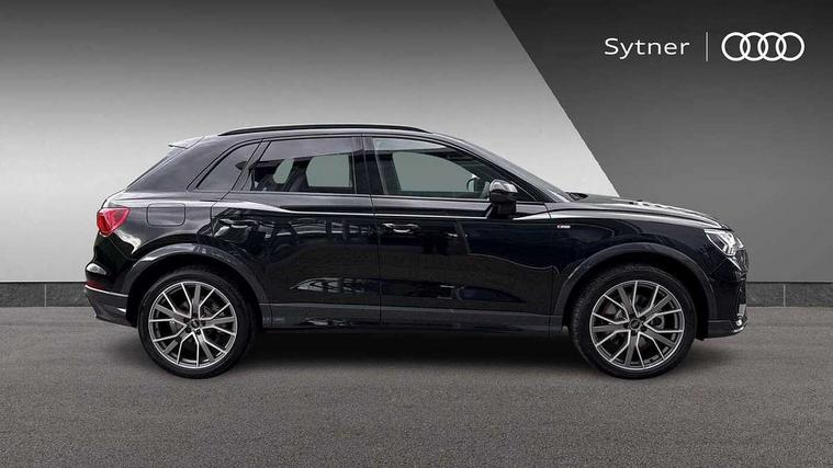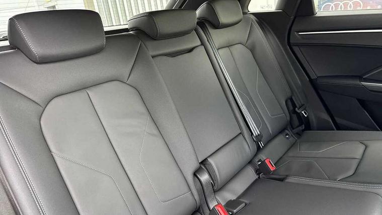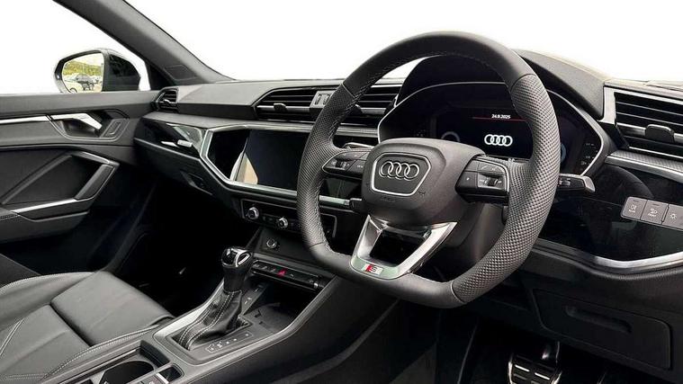 Amazon alexa Integration, Audi connect safety and service, Audi drive select, Audi lane departure warning, Audi Virtual Cockpit - 10.25" display, Bluetooth interface, Camera based traffic sign recognition, Distraction and Fatigue warning, Legal emergency call, MMI Navigation Plus with high resolution 10.1 inch touchscreen colour display, Power operated tailgate, Progressive steering, Service interval indicator, Smartphone interface includes wireless Apple carplay/Android Auto, Start stop system with recuperation, Voice control system with natural language interaction, Diesel particulate filter, Sports suspension, 2 USB-C ports with charge and data functions, 6 passive loudspeakers, DAB digital radio module, Acoustic windscreen, Anthracite black radiator grille, Audi Beam uses LEDs to project the Audi logo onto the ground as you exit your Q3, Auto dimming door mirrors, Auto dimming frameless rear view mirror, Black roof rails, Electrically folding, adjustable and heated door mirrors with integrated LED side indicators and kerb view function for passenger side, Front and rear electric windows, Front fog lights, Grille vertical bars in aluminium silver/Matt, High gloss black finish B and C pillars, LED Dynamic rear indicators, LED headlights with LED daytime running lights, LED rear lights, LED third brake light, Privacy glass dark tinted rear and rear-side windows (from B-pillar backwards), Rain and light sensors, Rear diffuser grille in grained matt black, Rear diffuser strip in matt anthracite black, Rear side wing doors, Rear wiper, S line bumpers in contrasting Manhattan grey, Variable front intermittent wipers, 12V socket in rear centre console, 3 seat bench in 2nd row, 40:20:40 folding with manual adjustment for 60:40 forwards/backwards position and backrest angle, Adjustable rear seat bench/backrest with centre armrest and cupholder, Black carpet mats, Black cloth headlining, Dual zone electronic climate control, Electric lumbar support, Front and rear black floor mats with contrast stitching in rock grey, Front and rear headrests, Front centre armrest, Height and reach adjustable steering wheel, Illuminated door sill trims with S logo, ISOFIX child seat mounting for front passenger with airbag deactivation and outer rear seat including top tether attachment point for outer rear seats, Luggage compartment sill protection in stainless steel, Manual front seats with height adjustment, Perforated leather gearknob, Single front passenger seat, Stainless steel pedals, Twin leather upholstery with front sport seats + S embossing, Black styling pack - Q3, Non smoking pack - Q3, 3x3 point rear seatbelts, 6 airbags - Driver, front passenger, curtain and side windows, Audi pre-sense front with pedestrain and cyclist recognition, Electrically operated child locks on rear doors, Electromechanical parking brake, Electronic stabilisation control including ABS, ASR and EDL, Front seatbelt reminder, Hill descent control, Hill hold assist, Pre sense basic, Seatbelt monitoring, Tyre pressure warning, Warning triangle and first aid kit, Anti theft wheel bolts, Immobiliser, Remote central locking, Thatcham approved category 1 anti theft alarm, Aluminium look interior elements, Detail dashboard around MMI touch colour display in glass look, black with surround in aluminium look, Leatherette door armrest, Piano black inlay,