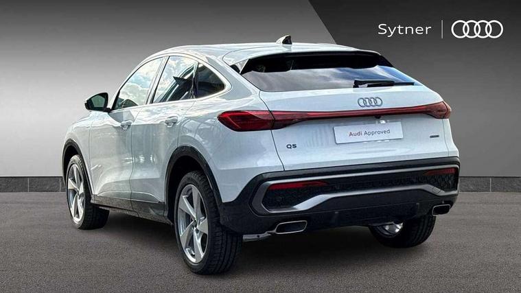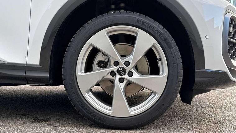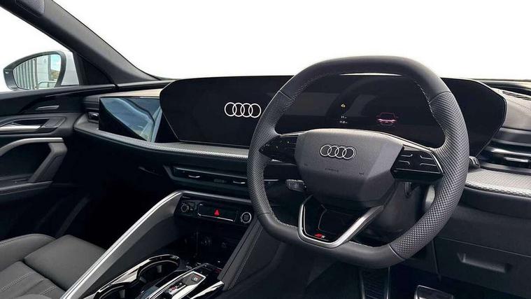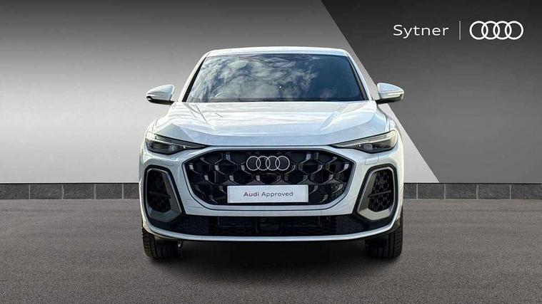 Adaptive cruise control, Advanced driver attention alert, Audi application store, Audi connect emergency call and service, Audi drive select, Audi smartphone interface, Audi virtual cockpit plus with 11.9" OLED colour display, Camera based traffic sign recognition, Fatigue monitor, Front cross traffic intersection assist, Lane departure warning system, MMI navigation plus with high resolution 14.5" OLED touchscreen colour display, Park assist plus, Parking system plus with 360 display, PAS, Reversing camera, Swerve assist and turn assist, Traffic sign based speed limiter, 2 USB-C ports in both the front and rear, Audi sound system impressive sound with 8 loudspeakers including centre speaker and subwoofer, 6-channel amplifier with a total output of 180 watts, DAB Digital radio, Smartphone compartment with wireless charging, Auto dimming rear view mirror, Body coloured door mirrors, Coming/leaving home lighting function, Electrically adjustable heated and folding + automatically dimming exterior mirrors, Front and rear electric windows, Front door sill trims with aluminium inlays, illuminated with 'S' logo, Headlight cleaning system, Heated rear window, High beam assist, High gloss window surrounds, Inlay and front air inlets in matt anthracite chrome, LED headlights plus incl. digital DRL, dynamic coming and leaving home function with turning/all weather/motorway/manouevring and intersection lights, LED rear lights pro incl. dynamic rear indicators and illuminated light strip with animated coming and leaving home function, Logo projection light in exterior mirrors, Privacy glass, Projection light for rear window, Radiator grille in phantom black, Rear and side windows with heat insulating glass, Rear honeycombe grille in matt black with inlay in matt anthracite chrome, Rear side wing doors, Rear wash/wipe, S Line badge on the front wings, S line bumpers in contrasting Volcano grey metallic paint finish, Towbar preparation, Windscreen with acoustic glazing, 3 rear head restraints, 3 seat bench in 2nd row, 3 spoke leather steering wheel with multi-function buttons with touch control, flattened on top and bottom, with S badging and contrast stitching, 40:20:40 split folding rear seat bench with centre armrest and cup holders, Comfort centre armrest, Deluxe 3 zone electronic climate control, Front and rear floor mats, Front seats with manual adjustment for position and 4-way electric lumbar support, Front sport seats with integrated head reastrains, Headlining in black cloth, Heated front seats, i-Size child seat mounting on the front passenger side and outer rear seats, i-Size and top tether on the outer rear seats, Interior trim in aluminium look, Luggage compartment lid, electrically opening and closing, Manual steering column adjustment, S embossed logo on front sport seats, Single front passenger seat, Softwrap in leatherette, Stainless steel pedals and footrest, Steering wheel grips in perforated leather and shift paddles, Ambient lighting package plus - Q5, Storage and luggage compartment pack - Q5, 3x3 point rear seatbelts, ABS, Acoustic vehicle alerting system, Driver and front passenger airbag with passenger airbag deactivation, Electric child safety locks, First aid kit with warning triangle and high visibility vests, Front emergency brake assist, Front side airbags with head airbag system and front interaction airbag, Hill hold assist, Rear seat occupant reminder, Tyre pressure loss indicator, Anti theft alarm, Anti-theft wheel bolts, Remote control key with SAFELOCK and keyless go, Accent surfaces and control buttons in gloss black, Anthracite matt brushed aluminium inlays with linear embossing, Black dashboard with contrast stitching, Upper and lower interior elements in artificial leather, Tyre repair kit,