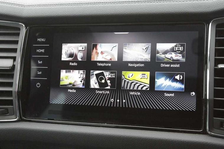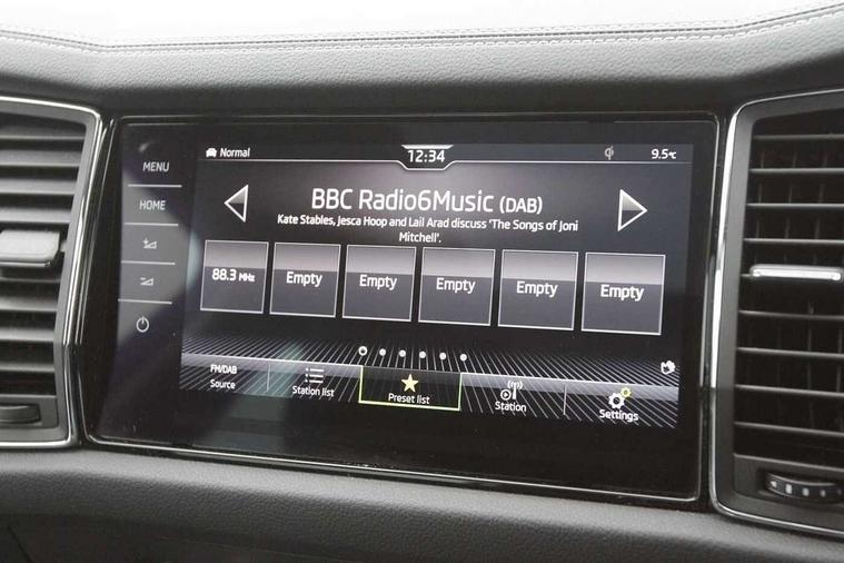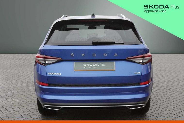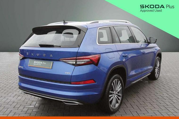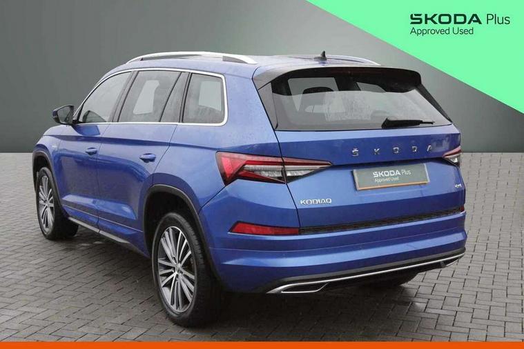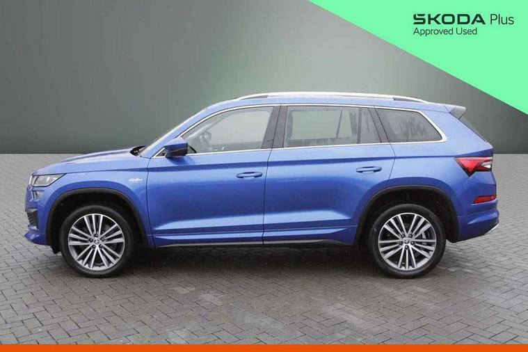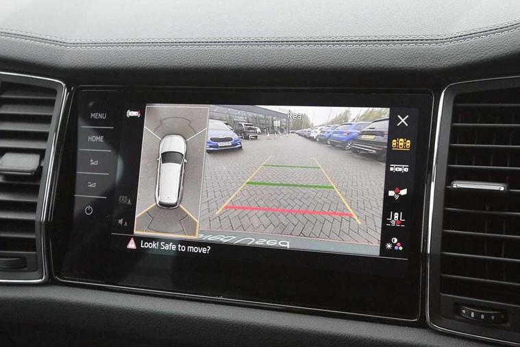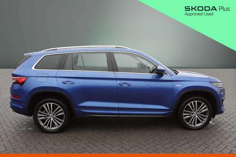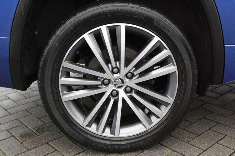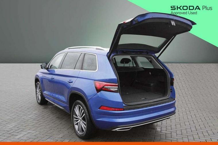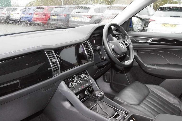 Area view, Blind spot detection system, Bluetooth system, Columbus satellite navigation with 9.2" touchscreen, integrated Wi-Fi, web radio, Digital voice enhancement, E-call, ECO Stop/start function, Exterior temperature indicator, Progressive steering, Smartlink wireless for apple carplay and wired for android auto, Speed limiter, Tailgate unlocking from outside, USB C Port x 2 in front centre console, Virtual Cockpit - 10.25" digital display, Wireless charging, Canton sound system, DAB Digital radio, Aero front windscreen wipers with intermittent function, Aero rear window wiper, Auto dimming rear view mirror, Black wheel arch surrounds, Body colour bumpers, Body colour door mirrors and handles, Body colour door panels, Chrome front grille, Chrome roof rails with chrome window surround, Electric adjustable/heated/folding door mirrors, driver side auto dimming with boarding sports and memory function, Electric front and rear windows, Extended rear spoiler with finlets in gloss black, Front fog lights, Full LED matrix headlights with AFS (adaptive front light system), cornering function and AWL (all weather lighting system), Headlight washers, Heated rear window, Invisible tailpipe, L&K front and rear bumpers including lower rear chrome strip, LED daytime running lights, LED rear fog light, LED third brake light in rear spoiler, Light assistant (coming/leaving home/tunnel light), Off-road style lower front bumper element, Panoramic sunroof, Privacy glass, Rain and light sensors, Rear LED lights (high functionality) with welcome effect and dynamic indicators, Rear side wing doors, Safety reflectors on front and rear doors, Window control switches with black trim, Without engine designation, 12V socket in boot, 2 rails with 2 hooks, 2 seat bench in 3rd row, 3 seat bench in 2nd row, 4 foldable roof handles with rear coat hooks, 60:40 foldable rear seat with sliding adjustment and backrest angle adjustment, Aluminium pedals, Bottle holders in door panel in the 1.5 litre front and 1 litre rear, Cargo storage compartments, Chrome headlight control button, Chrome interior door handles, Coat hooks on B pillar, Covered storage compartment on driver side, Front centre armrest with storage compartment, cup holder and 12V socket, Front courtesy lights, Gear shift lever with chrome frame and black gloss insert, Grey stitching in front and rear armrests and door armrests + door inserts, Height adjustable front headrests, Illuminated and cooled glovebox, Illuminated luggage compartment, Isofix child seat fittings in outer rear seats with top tether, Manually adjustable steering column, Net programme in boot (1x horizontal Net, 2x vertical Nets), Overhead glasses storage compartment, Pollen filter, Rear centre armrest with cupholders, Single front passenger seat, Sliding trunk cover, Small Bags on the inner sides of the front backrests, Sunvisors with illuminated vanity mirrors, Three rear height adjustable headrests, Ticket holder on A Pillar, Umbrella in door panel, Variable boot floor, LED Interior light pack - Kodiaq, Auto door release and activation of warning lights in the event of an accident, Child locks on rear doors, Driver and front passenger airbag with knee airbag and front passenger airbag deactivation, Electronic parking brake with hill start assist, Emergency rear braking signal, ESC (incl. ABS+MSR+ASR+EDS+HBA+DSR+RBS+MKB), Front assist with autonomous emergency braking, Front side airbags with curtain airbags, Fuel cut off safety device, Height adjustable front 3 point seatbelts + pretensioners, Hill hold control, Rear disc brakes, Safety vest holder in door, Seat belt reminder for all seats, Three point rear seat belts, Two tone horn, Tyre pressure monitor, Alarm with interior monitoring and tilt sensor with safe function, Anti-theft wheel bolts, Immobiliser, Keyless entry and start system (KESSY), Remote central locking with 2 keys, Grey stitching in dashboard, Piano black decorative inserts, Plaquette L&K front fenders, Temporary spare wheel (space saver),