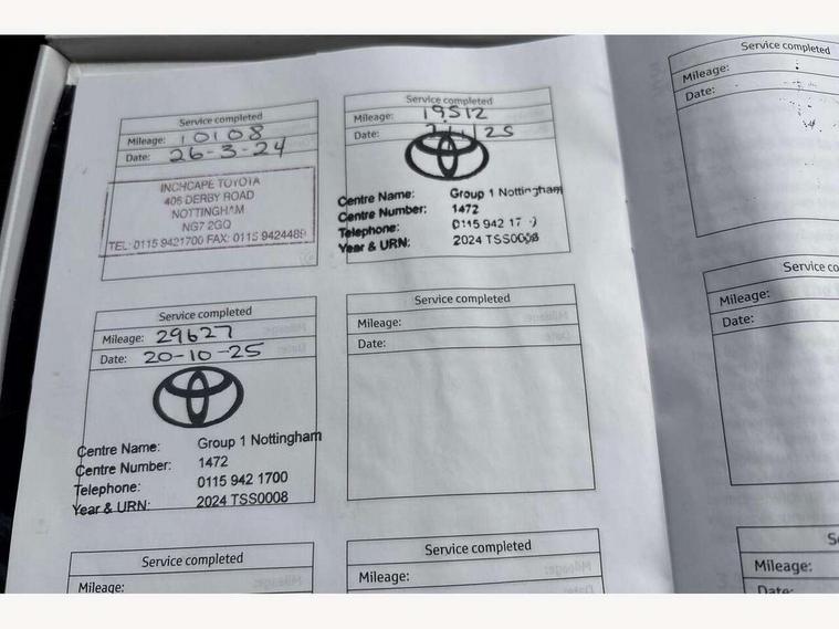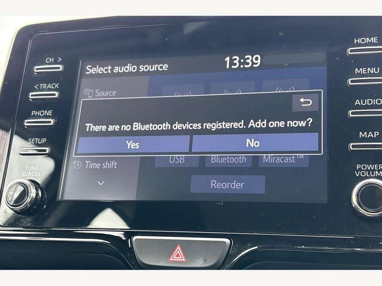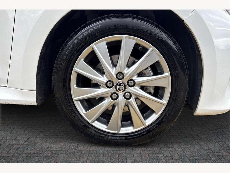 4.2" coloured TFT multi information display with analogue speedometer, Adaptive cruise control, Adjustable speed limit with speed warning, Bluetooth connectivity, E-call, Electric power steering, Hybrid energy display, Multi information display switches on steering wheel, Reversing camera, Smartphone integration with Apple CarPlay and Android auto, Tailgate, Voice recognition, Vehicle Stability Control (VSC), 4 speakers, 7" Multimedia display touch screen, Toyota Touch 2 with DAB, USB connection, Acoustic windscreen glass, Auto windscreen wipers, Automatic headlights, Body coloured door mirrors, Bulb indicators, Chequered front grille, Daytime running lights, Electric adjustable heated door mirrors, Follow me home headlights, Front auto power windows with anti jam protection, Halogen projector headlights, LED High mounted stop lamp, Manual headlight levelling, Rain sensor, Rear side wing doors, Rear spoiler, Rear wiper, Shark fin antenna, Turning signal integrated indicators in door mirrors, Variable front intermittent wipers, 3 adjustable rear headrests, 3 seat bench in 2nd row, 3 spoke leather steering wheel, 60/40 split folding rear seat, Active headrests, Adjustable boot height, Auto air conditioning, Coat hooks in rear grab handles, Cup holders (2 front & door), Data Communication Module (DCM) connected services, Fabric upholstery, Front armrest, Glovebox, Grey roof lining, Height adjustable driver's seat, Isofix seat fixing, Leather gearshift, Pollen filter, Shopping bag hooks, Single front passenger seat, Tilt/telescopic steering column, 3 point seatbelts on all rear seats, ABS+EBD+Brake assist, Electronic parking brake, Emergency brake light system (EBS), Front passenger airbag on/off switch, Front seatbelt reminder, Hill start assist control (HAC), Rear child proof door locks, Rear seat belt reminder, Supplemental Restraint System (SRS) 8 airbags: Driver & passenger's airbags, dual side curtain airbags, side impact airbags, front centre airbag, Toyota Safety Sense 2, Precollison + Night time Pedestrian & Cyclist Detection, Lane Trace Assist, Auto High Beam, Intelligent ACC & Road Sign Assist, Tyre pressure warning system, 2x Master key, Alarm/immobiliser, Remote powered central double locking doors, Soft touch instrument panel, Space saver spare wheel,