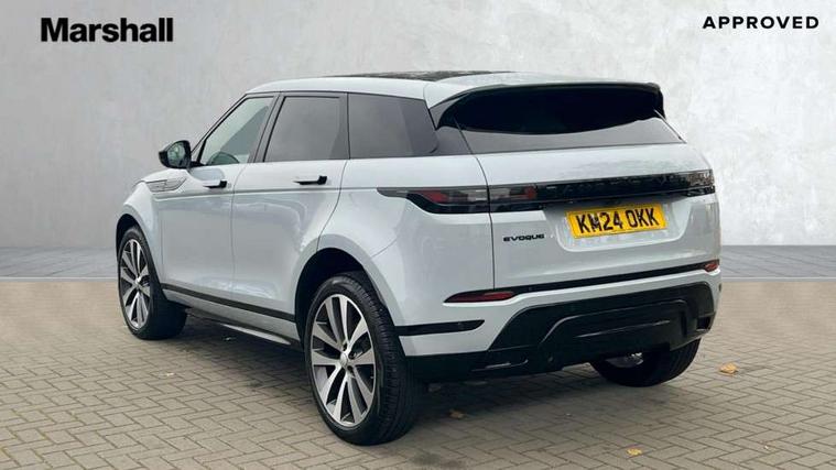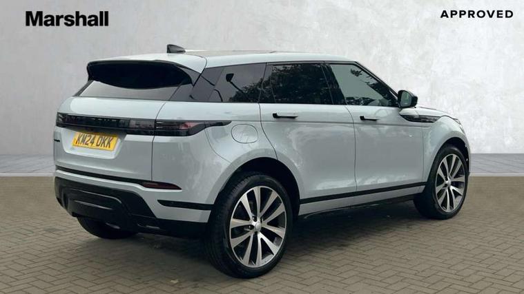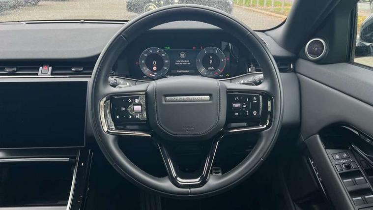11.4" touch screen, Adaptive cruise control, Android Auto, Apple car play, Blind spot assist, Bluetooth connectivity, Brake pad wear indicator warning light, Driver condition monitor, eCall emergency system, Eco mode, Electronic power assisted steering (EPAS), Front and rear parking aid, InControl remote, Interactive driver display, Land Rover InControl apps, Lane keep assist, Pivi pro connected includes diamond pivi variant, smart settings, connected navigation pro, nuance speech licence, Powered tailgate/boot lid, Rear collision monitor, Rear traffic monitor, Traffic sign recognition with adaptive speed limiter, Voice control system, Wireless device charging, All terrain progress control, Diesel exhaust fluid (DEF) large tank, Efficient Driveline, Large fuel tank, Passive suspension, Terrain Response 2, Digital Audio Broadcast radio-DAB, Steering wheel mounted controls, Acoustic laminated windscreen, Auto headlights, Automatic headlight levelling, Electric windows with one touch open/close and anti trap, Flush deployable exterior door handles, Front and rear recovery eyes, Front fog lights, Heated rear window with timer, Heated washer jets, Heated windscreen, Pixel LED headlights with signature DRL and LED tail Lights, Power fold, auto-dimming, heated door mirrors with approach lights and auto dimming driver side, Rain sensing windscreen wipers, Rear animated directional indicators, Rear fog lights, Rear side wing doors, Rear wiper, Side repeater indicators in mirror, Tailgate spoiler, Third brake light, Winter wiper park position, 14 way driver memory electric front seats with 2 way manual headrests + 4 way lumbar support, bolsters, 40:20:40 split folding rear seats with centre headrest and armrest, Ambient interior lighting, Bright metal pedals, Carpet mats, Chrome tread plates with range rover branding Includes stainless steel loadspace scuff plate with etched graphic, Customer configurable single point entry, Electrically adjustable steering column with memory function and easy entry/exit, Front and rear cupholders, Heated steering wheel, Isofix system on outer rear seats, Overhead lighting console, Overhead stowage for sunglasses, Passive front head restraints, Rear air vents, Rear head restraints, Satin chrome gearshift paddles, Single passenger seat, Sunvisors with illuminated vanity mirrors, Twin sliding front centre armrest, Online pack with data plan - Evoque, Power socket pack 2 - Evoque, 3 rear 3 point seatbelts, Anti-lock braking system (ABS), Brake hold function, Customer configurable autolock, DSC - Dynamic Stability Control, Electronic brake force distribution, Electronic parking brake, Electronic traction control, Emergency braking, Front and rear seatbelt reminder, Hill descent control, Hill launch assist, Low traction launch, Occupant protection assist, Passenger seat occupant detector, Power operated child locks, Roll stability control, Six airbags - Driver and passenger airbags/driver knee airbag/front side airbag and curtain airbags, Torque vectoring brake, Tyre pressure monitoring system, Alarm, Immobiliser, Intrusion sensor, Keyless entry, Locking wheel nuts,
