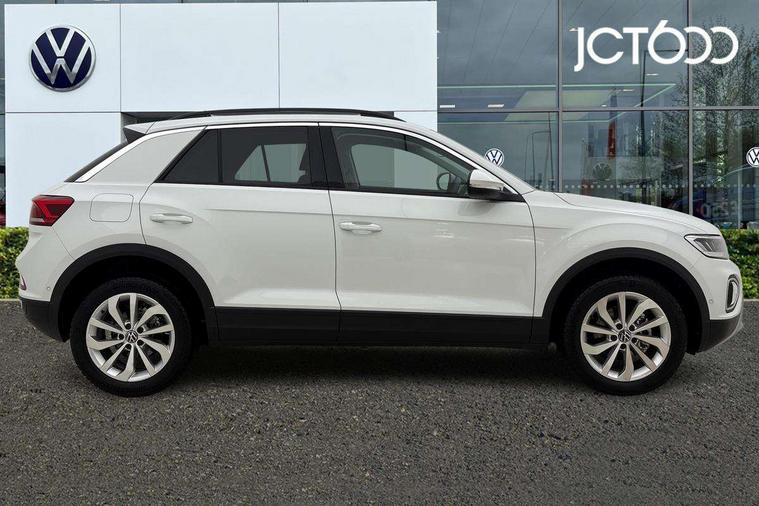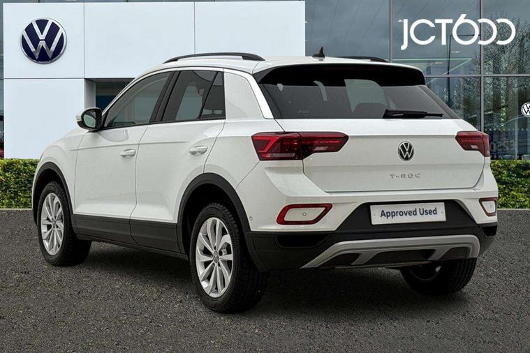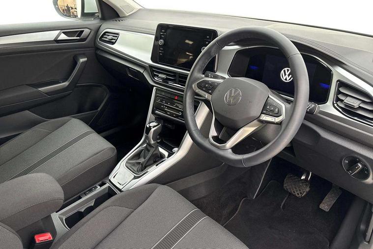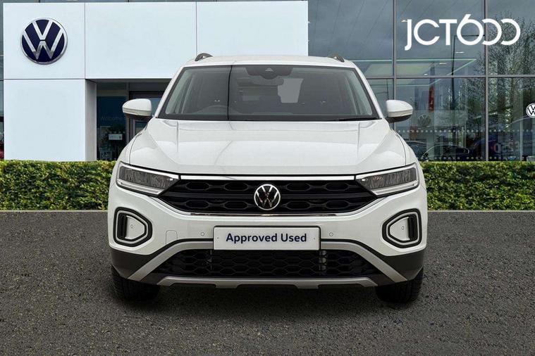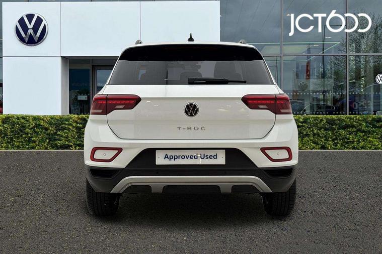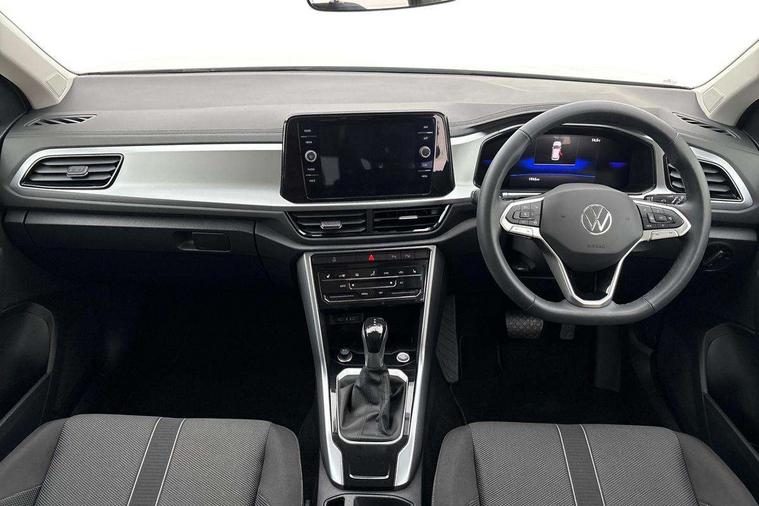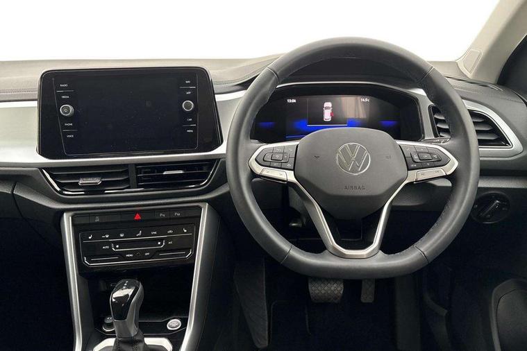 Advanced driver attention and drowsiness monitor, Dynamic road sign display, Emergency call service, Lane keeping system Lane Assist, Mobile phone interface, Modified key software - reduce switch off time for key status change to Long no motion, Online services, Park assist including front and rear parking sensors, Power assisted speed sensitive steering, Rear view camera, Service interval indicator, Tailgate/trunk lid release from outside, Think blue trainer driver tips and journey analysis, Warning sound and light for front seatbelts unfastened, Wireless app connect, Battery regeneration during braking, Front shock absorption, Rear shock absorption chassis with increased ride height, Start/stop function with battery regeneration, DAB Digital radio, Diversity antenna for FM reception, Front and rear 6 speakers, Music playback - MP3, WMA and AAC files, Premium USB cable in choice of either Apple or Android smartphone compatibility, SD card slot, Simultaneous pairing of 2 compatible mobile devices, Title and cover art display, We Connect and We Connect Plus functionality, Auto dimming interior rear view mirror, Automatic hazard lights activation under emergency braking, Automatic headlight control with LED separate daytime running lights with coming/leaving home function, Black roof rails, Body coloured bumpers and radiator grille with chrome trim and front fog lamps with chrome bezel, Body coloured exterior mirror housings and door handles, Electrically adjustable and heated door mirrors, Extended roof spoiler, Exterior mirrors aspherical on driver side, convex on front passenger side, External USB type C socket and charging sockets, Front windscreen wiper with intermittent wipe and 4 position delay, Heated rear window, LED 3rd brake light, LED rear combination lamps, LED rear number plate lights, Power windows with comfort operation and circuit breaker, Privacy glass for rear side windows and rear window, Rain sensor, Rear exhaust tailpipe, Rear fog light on one side and reversing lights on both sides, Rear side wing doors, Rear wash/wipe with intermittent wipe setting, Remote electrically foldable door mirrors, puddle lights and reverse activated passenger's door mirror, 12V power socket in centre console, 3 rear head restraints, 3 seat bench in 2nd row, 4 load lashing points in luggage compartment, Air care climatronic air conditoning system with active combination filter and 2-zone temperature control, Black stitching for floor mats, Ceramique roof liner, Cloth upholstery, Door and side trim panel in cloth, Drawer under drivers seat, Driver/front passenger seat height adjustment, Front centre armrest, Front comfort sports seats, Front cupholders x 2, Front reading light, Front seat back storage pockets, Glove compartment door with light, Instrument lighting, white adjustable panel illumination, Interior ambient lighting and surround lighting, Interior light delay, Isofix child seat preparation, Leather gearshift handle, Load-through provision with cup holder when folded down ('Unsplit rear seat bench, split folding backrest, with centre armrest), Luggage compartment lighting, Lumbar support for driver's and front passengers seat, Non-folding front passenger seat backrest, Single front passenger seat, Storage compartment in left and right luggage area, Storage compartment in rear doors, Storage compartments in driver and front passenger doors, Sunvisors with illuminated vanity mirrors, Variable boot floor, height adjustable and removable, Driver assistance pack without proactive passenger protection - T-Roc Life/Match, 3 point height adj front seatbelts + pretensioners, 3 point seatbelts in outer rear with ECE label, ABS, Child locks on rear doors, City emergency braking and pedestrian monitoring, Driver and front passenger airbag with front passenger airbag deactivation, Driver and front passenger safety-optimised head restraints, Drivers seatbelt reminder, Electronic parking brake, Electronic Stability Control (ESC) inc EDL (Electronic Differential Lock) and ASR (Traction Control), Front and rear passengers curtain airbag system including front side airbags, Front disc brakes, Hill start assist, Predictive pedestrian protection, Rear disc brakes, Two tone horn, Tyre pressure loss indicator, Volkswagen roadside assistance, Alarm with interior protection, Keyless locking and starting system keyless access with safelock, Pewter matt decorative inserts for intrument panel, centre console and door panels at the front, Trims for alloy wheels,