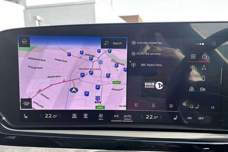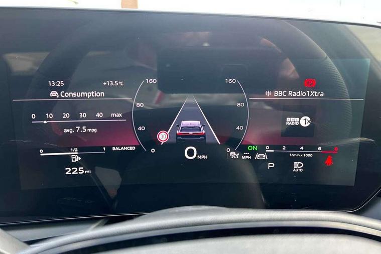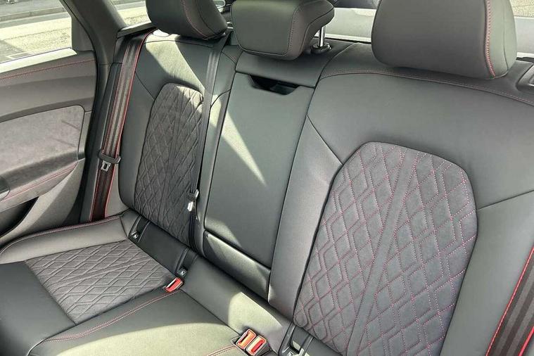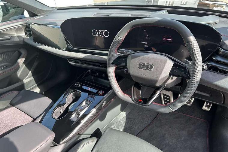 Adaptive cruise control, Advanced driver attention and fatigue montior, Audi application store, Audi assistant, Audi connect emergency call and service, Audi drive select, Audi virtual cockpit plus with 11.9" OLED colour display, Automatic start/stop system with coasting functionality, Camera based traffic sign recognition, Intersection assist, Lane change assistant with exit warning system, rear cross traffic alert and rear turn assist, Lane departure warning with emergency assist, MMI 10.9" front passenger touch display, MMI navigation plus with high resolution 14.5" OLED touchscreen colour display, Park assist plus, Parking system plus with 360 display, Progressive steering with servotronic, Smartphone interface, Swerve assist and turn assist, Top view camera, Traffic sign based speed limiter, Sports suspension lowered by 20mm, 2 USB-C ports in both the front and rear, Audi sound system impressive sound with 8 loudspeakers including centre speaker and subwoofer, 6-channel amplifier with a total output of 180 watts, DAB digital radio reception, Smartphone compartment with wireless charging, Aluminium window trims, Auto dimming rear view mirror, Black door handles, Black roof rails, Dark chrome-plated tailpipe trims, Door mirrors - electrically adjustable, heated, folding and auto dimming on both sides, Front and rear electric windows, Front door sill trims with aluminium inlays, illuminated with 'S' logo, Headlight cleaning system, High beam assist, LED daytime running lights, LED rear lights pro incl. dynamic rear indicators and illuminated light strip with animated coming and leaving home function, LED third brake light, Matrix LED headlights with eight light signatures selectable via the MMI or the myAudi app, Privacy glass, Rear and side windows with heat insulating glass, Rear side wing doors, Rear wash/wipe, S Line badges on the front wings, S line bumpers, radiator grille and diffuser in phantom black and diffuser insert in matt anthracite, White rhombus logo projection light in exterior mirrors, Windscreen with acoustic glazing, 3 rear headrests, 3 seat rear bench, 3 spoke leather steering wheel with multi-function buttons with touch control, flattened on top and bottom, with S badging and contrast stitching, 3-zone automatic climate control, 40:20:40 split folding rear seat bench with centre armrest and cup holders, Comfort front centre armrest, Electrically adjustable front seats, Front and rear floor mats, Front sport seats with integrated headrest and S embossed logo, Headlining in black cloth, Heated front seats, i-Size child seat mounting on the front passenger side and outer rear seats, i-Size and top tether on the outer rear seats, Luggage compartment lid, electrically opening and closing, Manual steering column height and depth adjustment, Memory function for driver seat, Single front passenger seat, Stainless steel pedals and footrest, Steering wheel grips in perforated leather and shift paddles, Ambient lighting package plus - A5, Black styling package plus - A5, 3x3 point rear seat belts, Acoustic vehicle alerting system, Convenience key with safelock, Driver airbag, Electric child safety locks, First aid kit with warning triangle and vests, Front emergency brake assist, Front passenger airbag, Front passenger airbag deactivation, Hill hold assist, Occupant detection in rear seat area, Proactive passenger protection system for front, sides and rear, Red brake calipers, Seat belt monitoring with rear seat occupant reminder, Side airbags in front and rear with head airbag system and front interaction airbag, Tyre pressure loss indicator, Anti theft alarm, Anti-theft wheel bolts, Keyless Go, Accent surfaces and control buttons in gloss black, Black dashboard with contrast stitching, Softwrap in Dinamica with contrast stitching, Upper and lower interior elements in dinamica microfiber, 20" 5 arm fold design Audi sport alloy wheels in silk matt grey and gloss turned finish, Tyre repair kit,