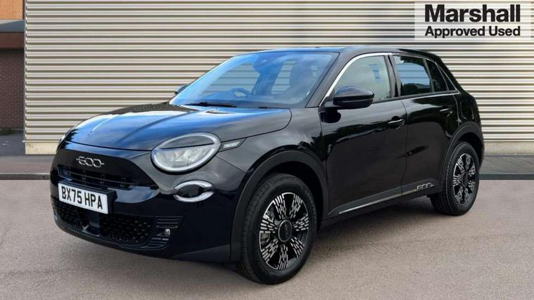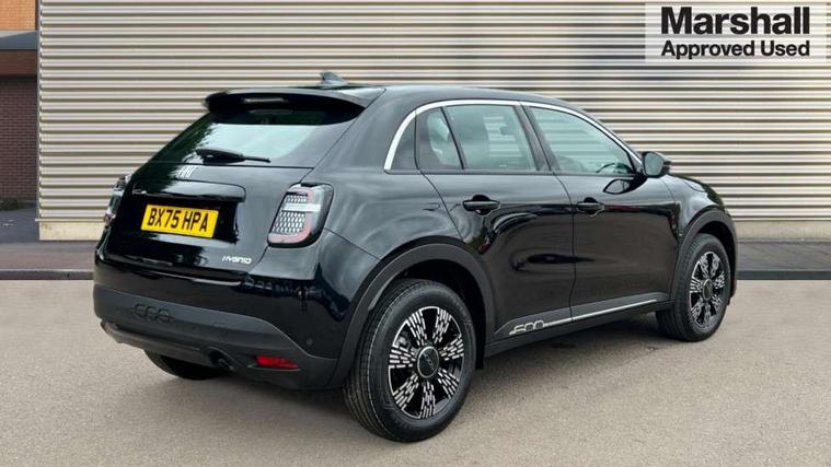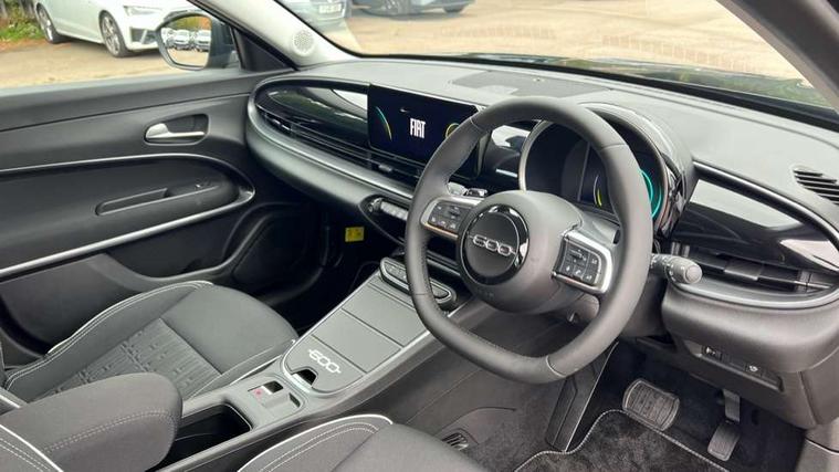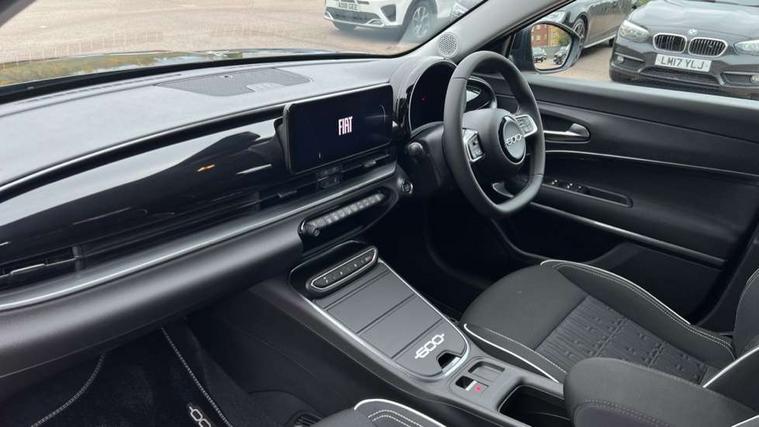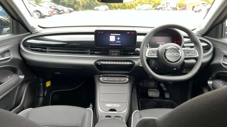 7" TFT digital cluster, Bluetooth connectivity, BSRF connectivity box, Connected services, Cruise control, Drowsy driver detection, Emergency E-call assist, Engine emission level default, GSR II step 1, Intelligent speed assist, Lane keeping assistant (LKA), Odometer, Power assist steering, Rain and dusk sensors, Rear parking sensors, Traffic sign recognition, Wireless apple car play/android Auto, Without drive mode selector, L2-AGM 12V battery, 1st Row USB type-A and USB type-C, 4 speaker audio system, Radio, Uconnect infotainment 10.25" touchscreen with DAB, All power windows express Up/Down, Auto dimming frameless rear view mirror, Automatic headlights, Body coloured door handles, Chrome day light openings, Electric adjustable door mirrors, Exterior chrome accents, Front and rear Chromed 600 logo, Gloss black finish B pillar, Gloss black shark fin antenna, Glossy black door mirrors, Heated windscreen wiper blade area, LED 3rd brake light, LED daytime running lights, LED Fog lamps with cornering function, LED front signature lighting, LED front turn indicators and position lights, LED rear lights, LED rear signature lighting, LED reflector headlamps, Matt black side skirts with 600 chromed logo, Rear bumper embossed 600 logo, Rear roof spoiler, Rear side wing doors, Rear wiper, 2 Spoke synthetic leather steering wheel with audio control, 3 rear headrests, 3 seat bench in 2nd row, 4 way manually adjustable passenger seat, 6 way manually adjustable drivers seat, Auxilliary 12V power socket, Body colour dashboard fascia, Chrome interior door handles, Dark metachrome dashboard ring, English handbook, Front centre armrest, Front headrests, Front passenger grab handle, Front seatback pockets, ISOFIX attachment on front passenger and rear passenger seats, Manual climate control, Metachrome central compartment bezel, Monogram fabric upholstery, Paddle shifts, Partial body cover for shipment, Predisposal for accessory upgrade to default tunnel pad cover (dedicated prnd bezel), Rear seat 40/60 split, Single front passenger seat, Smart 15L storage central tunnel with tunnel pad cover, Sunvisor label ciao Fiat, Sunvisors with vanity mirrors, 3x3 point rear seatbelts, 6 airbags, ABS, Autonomous Emergency Brake (AEB) & Vulnerable Road User (VRU) Protection, Child locks on rear doors, Electronic parking brake with auto hold, ESC (Electronic Stability Control), Front passenger airbag deactivation, Seatbelt reminder and pretensioners for all seats, Anti-theft volumetric alarm, Anti-theft wheel bolts, Keyless Go, 17" Diamond cut alloy wheels, Fix and go puncture repair kit,