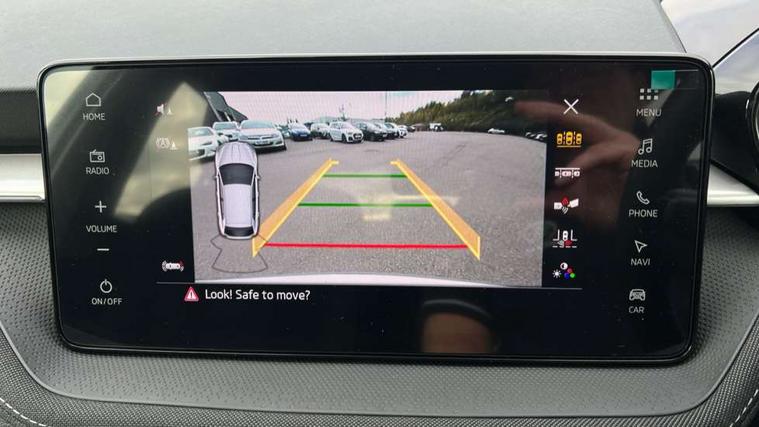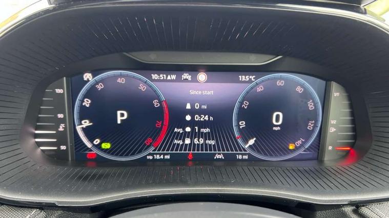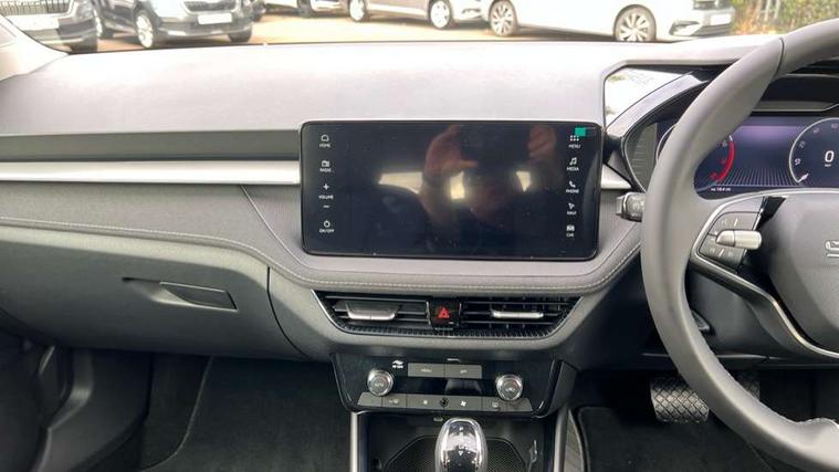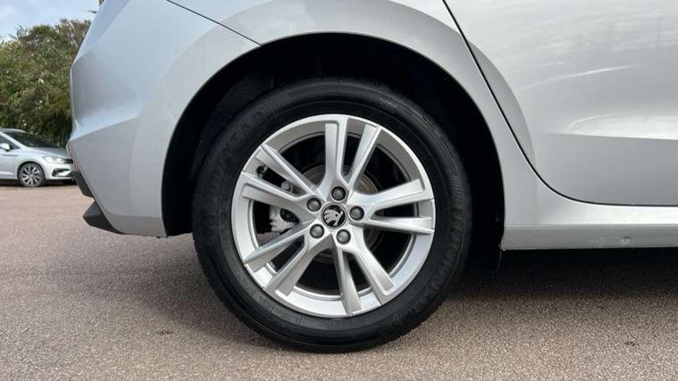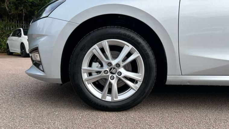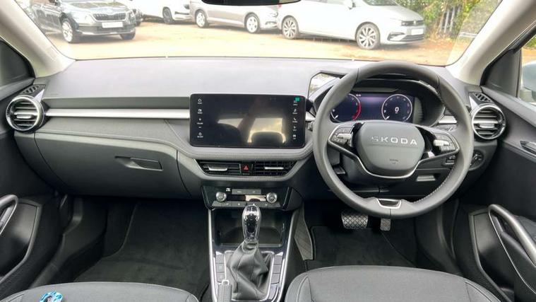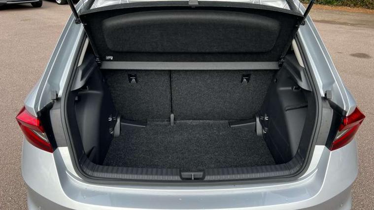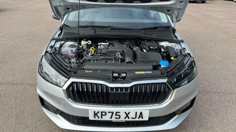 Advanced driver attention and drowsiness monitor, Bluetooth connection, Driver alert system, Electromechanical power steering, Exterior temperature gauge, Service interval indicator, Traffic sign recognition, Virtual cockpit with 10.25" colour display, Wireless SmartLink for Apple CarPlay and Android Auto, 6 Speakers (4 in front and 2 in rear), 9.2" colour display skoda navigation system with voice control and web radio, Auxiliary socket for external MP3 player, DAB digital radio reception, Auto dimming rear view mirror, Body colour door mirrors, Body coloured bumpers, Chrome window surround, Door mirror integrated indicators, Front and rear electric windows, Front window wiper intermittent control, Headlight range control - Automatic, Ice scraper in fuel cap, LED 3rd brake light, LED daytime running lights with coming and leaving home feature, LED rear lights, Privacy glass, Rear LED fog light, Rear side wing doors, Rear window wiper with washing nozzles, Roof mounted spoiler, SKODA tailgate lettering in chrome, Unique dark chrome design logo on alloy wheels, 2 LED reading lights in front and rear, 3 rear headrests, Backrest split and folding, Central console with fixed cup holder and storage box, Chrome handbrake release button, Comfort seats, Door sills with fabia badging, Dual zone air conditioning with climatronic electronic control, Fabric upholstery, Front centre armrest, Gearshift knob/handle in leather, Grain satin black interior door handles, Hand brake lever handle in leather, Height adjustable front headrests, Height adjustable front seats, Height adjustable steering wheel, ISOFIX and TopTether anchorage points to the outer rear seats, ISOFIX and TopTether on the front passenger seat, Luggage compartment lighting, Manually adjustable lumbar support in front seats, Pollen filter, Rear seat bench unsplit, Single front passenger seat, Skoda lettering on steering wheel, Storm grey headlining, Sun visors with mirror and airbag label on passenger side, Textile floor mats, Ticket holder, Umbrella in drivers door, Ambient lighting pack - Fabia Hatchback, 3-point height adjustable front seats belts with pretensioner and force limiter, Automatic warning lights in case of crash, Driver and passengers airbag with switch off function, e-Call+, ESC including ABS, MSR, ASR, EDS, HBA and XDS, Front and rear seat belt warning, FRONT ASSIST (AEB City and AEB Inter Urban), Front side airbags, Head airbags, Hill hold control, One tone horn, Pedestrian protection, Three rear 3-points safety seat belts with pretensioner and force limiter including stop function for outer rear seat belts, Tyre pressure monitoring system, Anti-theft alarm system including immobiliser, interior monitoring, backup horn, and towing protection, Central locking with radio remote control, interior controls, SAFE function and 2 foldable keys, Chrome edged air vents, Grain satin black central console cover, Metallic grey upper decorative trim, Satin black door and side trim panel in front, Textile microsuede grey lower decorative trim with art grey stitching, Anti-theft wheel bolts protection, Super-low rolling resistance tyres,
