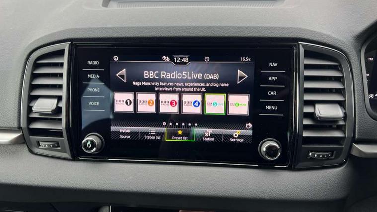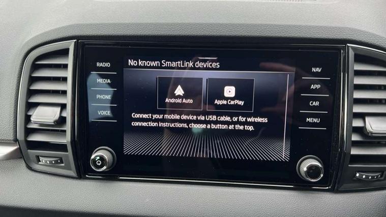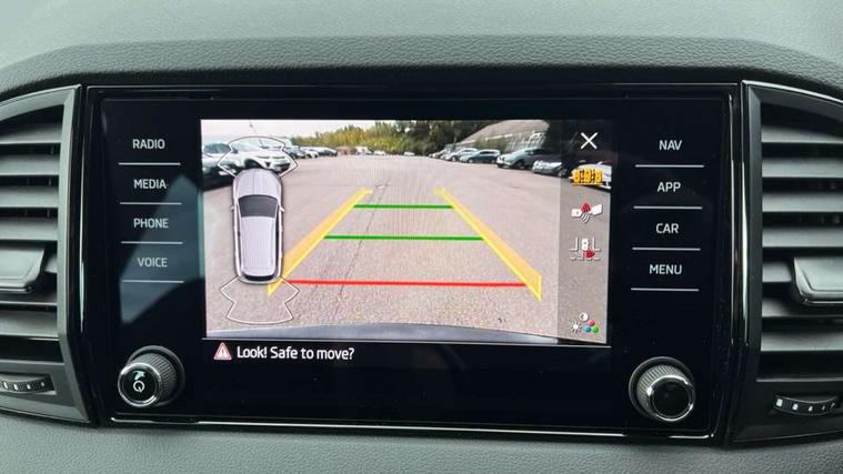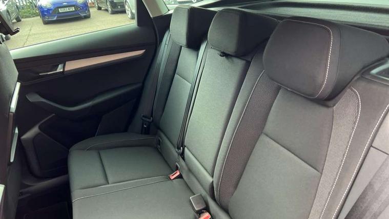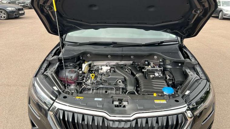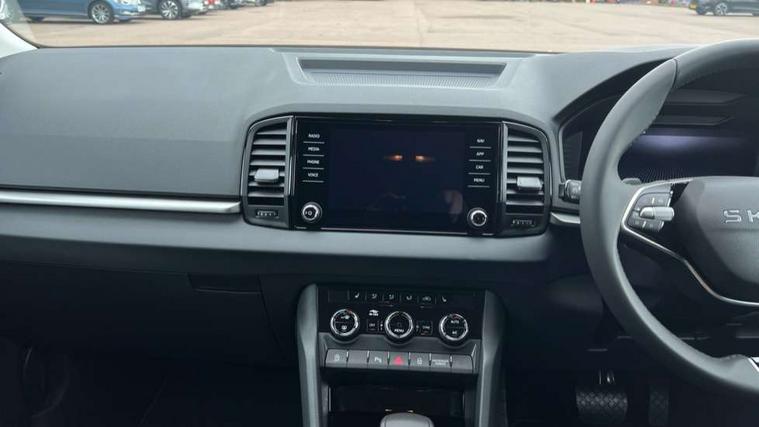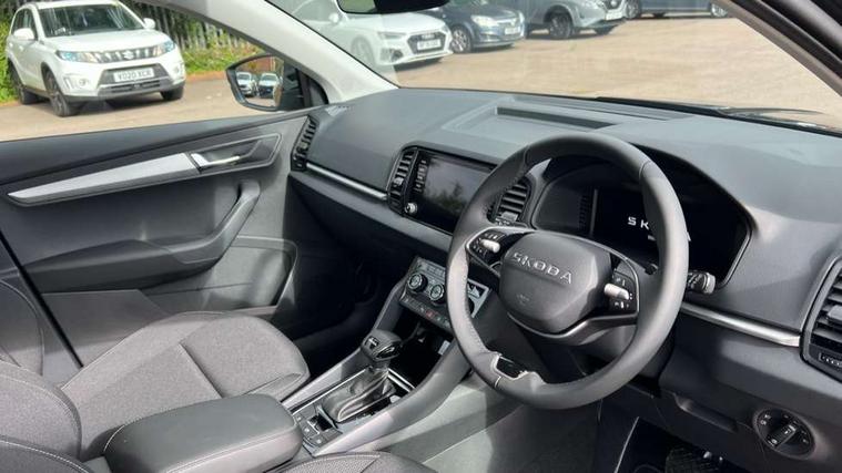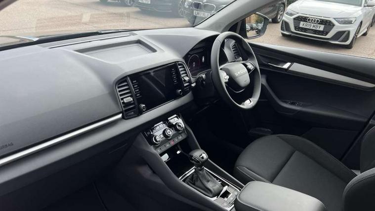Advanced driver attention and drowsiness monitor, Amundsen navigation system with 8" touchscreen display and integrated WLAN and web radio, Electro-mechanical PAS, Emergency services call system, Lane assist, Outside temperature gauge, Sensor for driver assistance systems, Service interval indicator, SmartLink wireless for Apple and wired for Android, Start/stop system with regenerative braking, Traffic sign recognition, USB C Port x 2 in front centre console, Virtual Cockpit - 10.25" digital display, Wireless smartphone charging, 8 Speakers, DAB radio with Bluetooth, USB connection, Acoustic glass, Aero front windscreen wipers with intermittent function, Auto dimming rear view mirror with light and rain sensors, Black electric window control buttons, Body colour door mirrors and handles, Electric front and rear windows with child proof lock, Electrically adjustable heated folding and auto dimming door mirrors, Front fog lights, Headlight range control, Heated rear windscreen, LED daytime running lights, LED Headlights, LED rear lights with high functionality welcome effect and dynamic indicators, Light assistant (coming/leaving home/tunnel light), Plastic scuff plates in door apertures, Privacy glass, Rear side wing doors, Rear window wiper with washer system and intermittent control, Safety reflectors on front doors, Third brake light, Unique dark chrome design logo on alloy wheels, 1.5 litre bottle holders in driver and front passenger door panels, 12V socket in boot, 12v socket in front centre armrest with storage compartment and rear air vents, 2 spoke leather heated multifunction steering wheel with DSG paddles, 2 x Tablet holder, 3 rear height adjustable headrests, 3 seat bench in 2nd row, 4 foldable roof handles with rear coat hooks, Black floor carpet, Cargo elements in boot, Chrome inner door handles, Driver/front passenger reading lights, Foldable hooks in the boot, Folding tables on the front seat backrests, Front head restraints, Height adjustable driver and passenger seat, Height adjustable front three point seats belts with tensioners, Height/reach adjust steering wheel, Ice scraper, Illuminated glovebox, Illuminated luggage compartment, Interior noise suppression, Isofix child seat preparation for front passenger seat, Isofix child seat preparation outer rear, Loft fabric upholstery, Manual lumbar support for front seats, Pearl grey interior ceiling, Pen holder, Pollen filter, Rear boot cover, Rear package tray, Rear reading lights, Rubbish bin door, Safety vest holder, Single front passenger seat, Skoda lettering on steering wheel, Storage box in upper central dashboard closed, Sunvisors with illuminated vanity mirrors, Textile floor mats, Ticket holder, Umbrella under passenger seat, Under passenger seat storage compartment, Non Smokers pack, Parking pack - Karoq, Winter pack with heated front seats - Karoq, Automatic door unlocking in case of crash, Automatic fuel cut off in case of crash, Driver airbag, Electronic parking brake with auto hold function, Emergency rear braking signal, ESC (incl. ABS+MSR+ASR+EDS+HBA+DSR+RBS+MKB), Front assist, Front side airbags, Head airbags, Hill hold control, Knee airbags, Passenger airbag with switch-off function, Pedestrian monitor, Power operated child safety locks, Seatbelt reminder signalisation and pretensioner for all seats, Three point seatbelts rear, Two tone horn, Tyre pressure monitor, Alarm with interior monitoring, back up horn and tilt sensor with safe function, Electronic engine immobiliser, Keyless entry and start/stop, Remote central locking with 2 remote folding keys, Anodized cross door decor, Black centre console, Chrome framed air vents, Satin black dashboard, Satin black door trim, Anti-theft wheel bolts protection, Breakdown and tool kit,