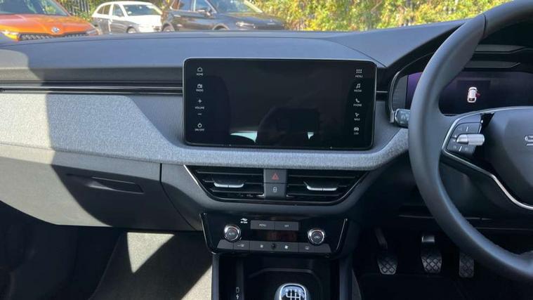 Advanced driver attention and drowsiness monitor, Bluetooth, e-Call (emergency call), Front assist system, PAS, Rear parking sensors, Rear view camera, Speed limiter, Tailgate, Traffic sign recognition, Virtual Cockpit - 10.25" digital display, Wireless smartlink, 4 USB C ports, 8 Speakers, 9.2" Skoda navigation display, DAB radio, Auto dimming rear view mirror, Automatic headlight control with manual coming and leaving home feature, Black window frames, Body colour bumpers, Body colour door mirrors and handles, Chrome moulding around grille, Front and rear electric windows, Full LED headlights, Heated rear window, LED 3rd brake light, LED daytime running lights, LED front turning lights, LED high beam, LED low beam, Rear LED fog light, Rear side wing doors, Rear wiper, Tinted windows, Unique dark chrome design logo on alloy wheels, 12V socket in luggage compartment, 3 seat bench in 2nd row, Black / Grey armrest stitching, Black hotstamping, Cargo elements, Chrome inner door handles, Door inserts in satin black, Driver and passenger sun visors with vanity mirror, Dual zone climate control, Front and rear roof lights, Front centre armrest, Front head restraints, Glasses storage in roof liner, Height adjustable driver seat, Height adjustable passenger seat, Ice scraper, Illuminated glove compartment, Inner circulation control with pollen filter, ISOFIX for front passenger seat, Isofix preparation for back seats, Leather gearknob and handbrake lever, Loft cloth upholstery, Luggage net under rear parcel shelf, Manual lumbar support for front seats, Net package and top tether hooks in boot space, Pocket on the back of both front seats, incl. mobile phone pockets, Single front passenger seat, Skoda lettering on steering wheel, Textile floor mats, Third rear headrest, Ticket holder, Top tether for front passenger seat, Umbrella in driver's door, 3x3 point rear seatbelts, ABS, Child locks, Curtain airbags and front side airbags, Disc brakes, Driver and front passenger airbags, ESP, Hill hold control, Manual leather parking brake, One tone horn, Passenger airbag switch off function, Seatbelt reminder for driver and front passenger, Tyre pressure monitoring system, Anti theft alarm system with interior monitoring, backup horn and towing protection, Anti-theft wheel bolts, Remote central locking with 2 remote folding keys, SAFE function for remote central locking, Decord pad, door inserts Kota uni,