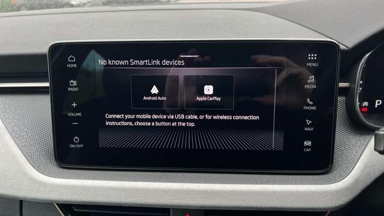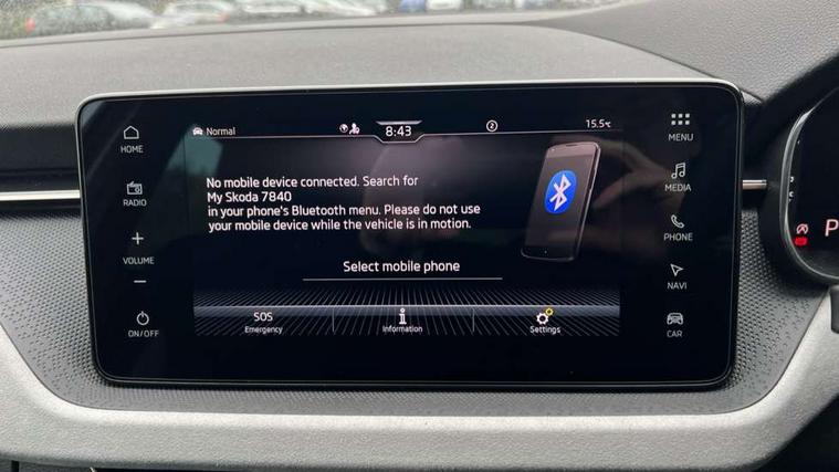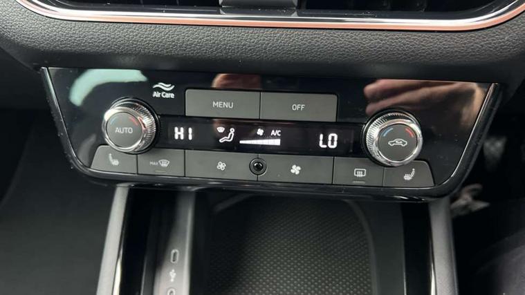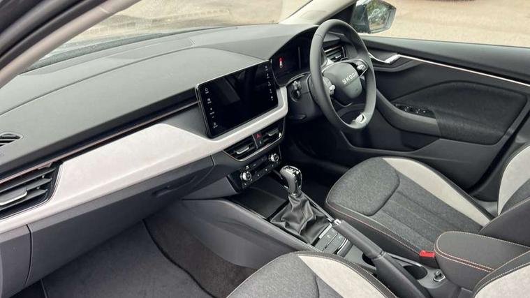 Advanced driver attention and drowsiness monitor, Bluetooth, e-Call (emergency call), Front assist system, PAS, Rear parking sensors, Rear view camera, Speed limiter, Tailgate, Traffic sign recognition, Virtual Cockpit - 10.25" digital display, Voice control system, Wireless smartlink, 4 USB C ports, 8 Speakers, 9.2" Skoda navigation display, DAB radio, Auto dimming rear view mirror, Automatic headlight control with manual coming and leaving home feature, Automatic intermittent wipers, Body colour bumpers, Body colour door mirrors and handles, Chrome moulding around grille, Chrome window frames, Front and rear electric windows, Heated rear window, LED 3rd brake light, LED daytime running lights, LED high beam, LED low beam, Light sensors, Privacy glass, Rear LED fog light, Rear side wing doors, Rear wiper, Tinted windows, Unique dark chrome design logo on alloy wheels, 12V socket in luggage compartment, 3 seat bench in 2nd row, Ambient lighting in white/red, Black / Copper armrest stitching, Cargo elements, Chrome inner door handles, Copper hotstamping, Door inserts in accent black, Driver and passenger sun visors with vanity mirror, Dual zone climate control, Front and rear roof lights, Front centre armrest, Front head restraints, Glasses storage in roof liner, Height adjustable driver seat, Height adjustable passenger seat, Ice scraper, Illuminated glove compartment, Inner circulation control with pollen filter, ISOFIX for front passenger seat, Isofix preparation for back seats, Leather gearknob and handbrake lever, Lodge cloth upholstery, Luggage net under rear parcel shelf, Manual lumbar support for front seats, Net package and top tether hooks in boot space, Pocket on the back of both front seats, incl. mobile phone pockets, Rear centre armrest, Single front passenger seat, Skoda lettering on steering wheel, Textile floor mats, Third rear headrest, Ticket holder, Top tether for front passenger seat, Umbrella in driver's door, Convenience pack without rear camera - Scala, 3x3 point rear seatbelts, ABS, Child locks, Curtain airbags and front side airbags, Disc brakes, Driver and front passenger airbags, ESP, Hill hold control, Manual leather parking brake, One tone horn, Passenger airbag switch off function, Seatbelt reminder for driver and front passenger, Tyre pressure monitoring system, Anti theft alarm system with interior monitoring, backup horn and towing protection, Anti-theft wheel bolts, Remote central locking with 2 remote folding keys, SAFE function for remote central locking, Decorative inserts,