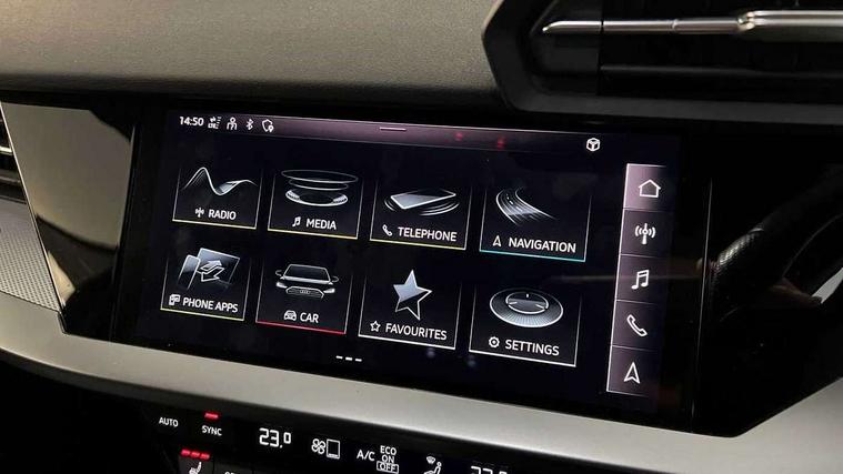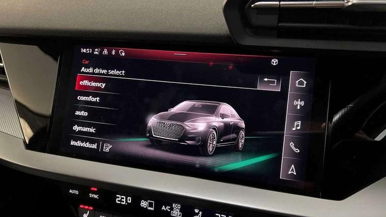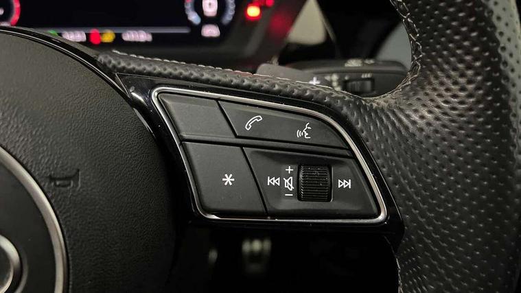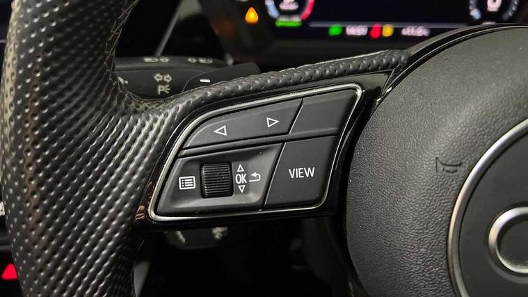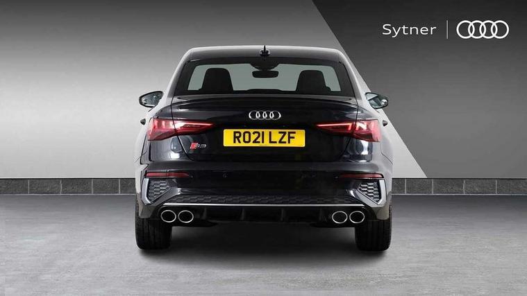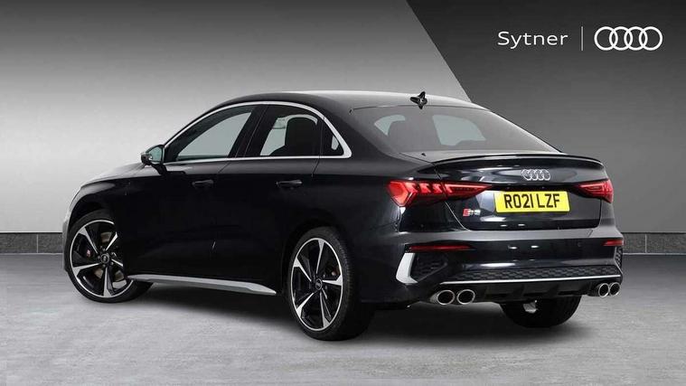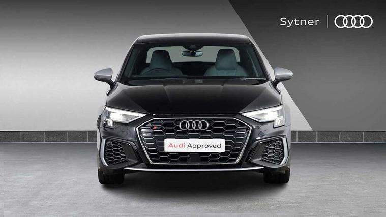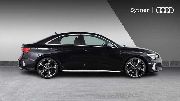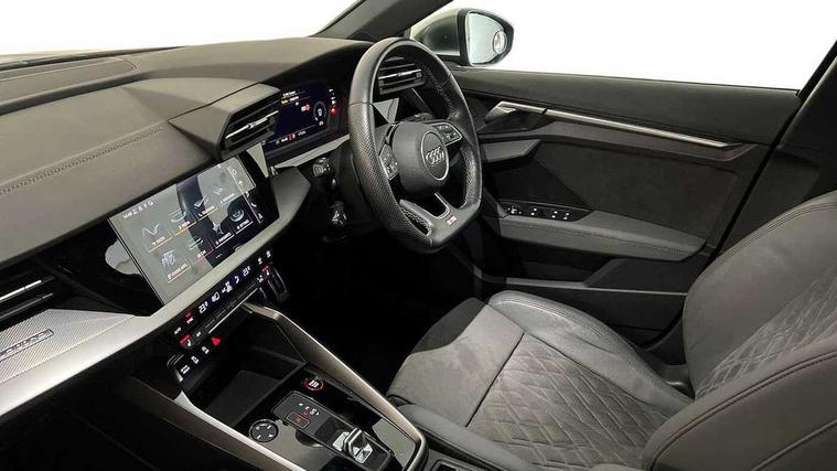 Audi connect emergency call and service, Audi drive select (Auto, Comfort, Dynamic, Efficiency and Individual), Audi smartphone interface, Audi Virtual Cockpit - 10.25" digital and colour instrument cluster, Automatic start/stop system with recuperation, Bluetooth interface, Collision avoidance assistant, Lane departure warning system, MMI Navigation Plus with high resolution 10.1" colour touch screen display, Progressive steering, Service indicator, Voice control system with natural language interaction, Quattro permanent all wheel drive, S sport suspension with spring damper adjustment and lowering by 15mm, 2x USB Type C ports (for charging and data transfer), 6 passive loudspeakers, CD player, DAB Digital radio, Acoustic glass windscreen, Audi Beam uses LEDs to project the Audi logo onto the ground as you exit your S3, Auto dimming frameless rear view mirror, Dual branch oval twin tailpipes in chrome plated finish, Electrically adjustable/heated/folding/auto dimming door mirrors with integrated LED indications + kerb view function for passenger side, Front electric windows, Headlight washers, Illuminated door sills with aluminium inserts at the front with S logo, LED daytime running lights, LED headlights with LED rear lights and dynamic rear indicators, Light and rain sensors, Model and engine designation badges at rear, Privacy glass - dark tinted rear window, rear door and side windows, Rear electric windows, 12V socket and storage compartment in front centre console, 40/20/40 split folding rear seat bench with cupholder, Black cloth headlining, Dual zone electronic climate control, Front and rear centre armrest in leather, Front and rear headrests, Front/rear floor mats, Heated front seats, Height and reach adjustable steering wheel, Interior lighting - glove compartment light and right hand side, Luggage compartment floor covering, Manual boot compartment lid, Seat side bolsters, Stainless steel pedals and front footrest, Body styling design pack - S3, Storage pack - A3/S3 Saloon, 3x3 point rear seat belts, Driver and front passenger airbag with passenger airbag deactivation, Electronic Stabilisation Control (ESC) including ABS, ASR and EDL, First aid kit with warning triangle and 2 safety vests, Front side airbags with head airbags and interaction airbag, Hill hold assist, Pre-sense front with pedestrian and cyclist detection, Seatbelt monitoring, Tyre pressure loss indicator, Anti theft alarm, Anti-theft wheel bolts, Electronically operated child lock, Immobiliser, Remote control central locking, Aluminium air vent surrounds, Aluminium trim elements, Dark spectrum aluminium inlays, accent surfaces in the dashboard and centre console in platinum grey silk effect paint finish,