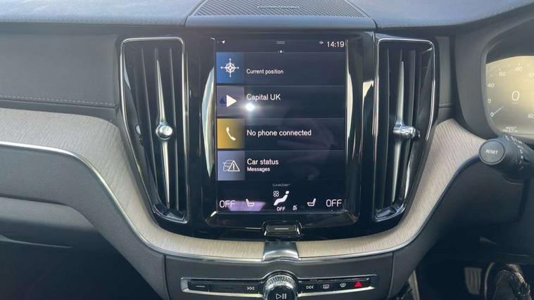12.3" Active TFT crystal driver's instrument display, 9" Touch screen, Adjustable steering wheel force, Bluetooth handsfree system, Drive mode selector, Driver alert control with lane keeping aid, Oncoming Lane Mitigation, Sensus navigation with European mapping and traffic information, Service interval indicator, Speed limiter, Speed sensitive steering, Trip computer, Voice control system, Volvo on call, 8 speed automatic transmission with start/stop + manual change functions, All wheel drive system, Diesel particulate filter, DAB Digital radio, Adaptive brake lights with high level LED brake lights, Auto dimming interior + exterior mirrors, Automatic headlight levelling system, Body colour bumpers, Chrome deco lower front bumper, Chrome lower side moulding trim, Chrome window surround, Colour coordinated auto folding and heated power door mirrors, Dual integrated exhaust pipes, Electric front+rear windows, Front aluminium tread plates, Heated aqua blades, High gloss black grille with chrome inserts, Home safe and approach lighting, Illuminated side steps, Integrated silver roof rails, LED front fog lights, LED Headlights + Active high beam incorporating daytime running lights, Rain sensor with automatic windscreen wiper activation, Rear wiper, Roof antenna, Roof spoiler, Tinted windscreen, Visible VIN plate, 12V socket in front tunnel console and luggage compartment, 3 spoke leather steering wheel with chrome trim, B Pillar ventilation, Bright metal luggage threshold, Centre armrest storage illumination, Centre console cupholders and storage, Floor mats, Front and rear door pocket and front cupholder illumination, Front footwell illumination, Front reading lights, Front seat cushion extension and power adjustable front seats side support, Head restraints for all seats, Heated front seats, Height/reach adjustable steering column, High gloss black steering wheel remote infotainment controls, Illuminated glovebox, Illuminated luggage compartment, Illuminated vanity mirrors + ticket holder, Load cover, Load protection net, Multi directional lumbar support, Multicolour theatre lights, Orrefors Crystal gear lever knob, Rear armrest / integral cup holders / storage tray, Rear footwell illumination, Rear seat concealed storage, Tailgate illumination and ambient door lighting, Underfloor stowage compartment, Versatile split folding rear seat - 60/40, Power seat pack - XC60, 5 three point seatbelts, City safety with steering support with Pedestrian + cyclist + large animal detection + front collision warning with full auto brake, Drivers knee airbag, Dual stage driver/passenger airbags, Electronic parking brake with auto hold, First aid kit, Hill descent control, Hill start assist, IC (Inflatable Curtains) - Full Length, Passenger airbag cut-off device, Road sign information display, Run off Road Mitigation, Run off Road Protection, Seatbelt reminder and pretensioners, SIPS (Side Impact Protection System), SIPS airbags, Slippery road and hazard light alert, Stability and Traction Control with Spin control, Engine Drag Control and Corner Traction Control, Tyre pressure monitoring system, Vehicle deceleration control with Anti-lock Brake System, Electronic Brake Distribution and Emergency Brake Assist, Warning triangle, WHIPS whiplash protection system - front, Anti-theft alarm including immobiliser/volume sensor + level sensor, Care key with user defined top speed, Key integrated remote control central locking + fuel flap with deadlocking system and auto open/close power windows, Locking wheel nuts, Private locking for tailgate, Tailored instrument panel with contrast stitching,
