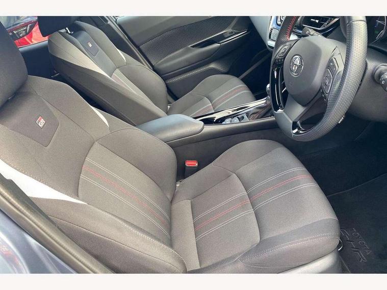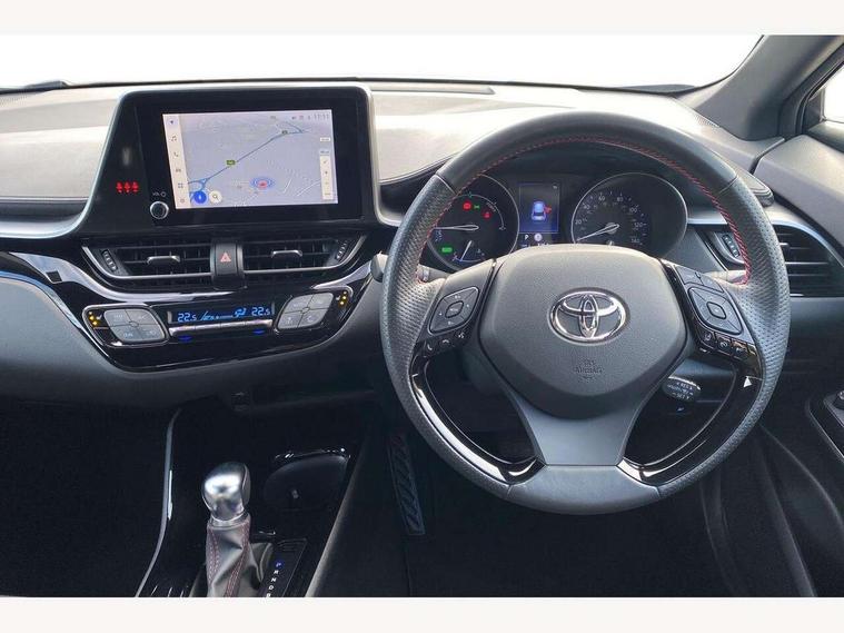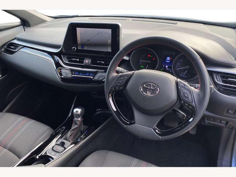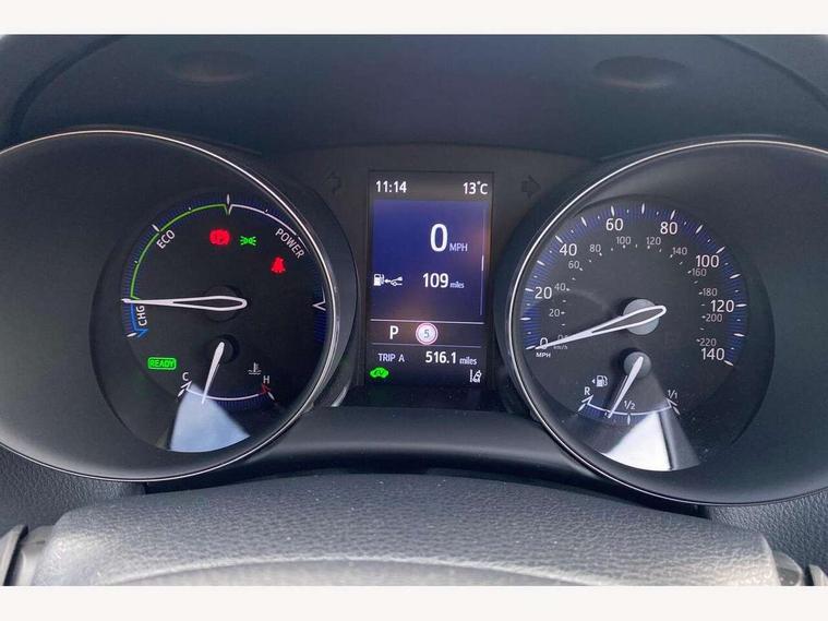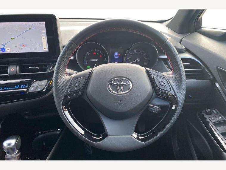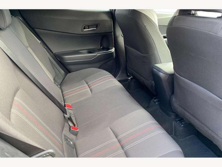 4.2" coloured TFT screen for multi-information display, Adaptive cruise control, Bluetooth connectivity, E-call, Electric power steering, Hybrid system indicator, Lane departure alert with steering control, Lane trace assist, Push button tailgate release, Remote boot door release in cabin, Remote boot door release in key, Reversing camera, Road sign assist - RSA, Simple Intelligent parking assist, Smart voice assist, Touch 2 Go navigation system, Trip computer, Voice recognition, Wireless smartphone integration, Vehicle Stability Control (VSC), 6 speakers, AM/FM radio, DAB Radio (Digital Audio Broadcasting), Toyota touch 2 multimedia system with 8" display, USB connector, Wi-fi connectivity, Adaptive front light system, Adaptive LED Headlights, Anti-jam protection on power windows, Auto high beam, Auto up and down function on all power windows, Automatic headlight levelling, Automatic headlights, Automatic headlights cut-off, Black and body coloured rear bumper, Black upper front grille, Body colour door handles, Body colour door mirrors, Body coloured front bumper, Boot door release with push button, Chrome front lower bumper, Electric heated door mirrors, Follow me home headlights, Front and rear power windows, Front spoiler lip in black, Headlight cut off reminder, Honeycomb lower front grille, LED daytime running lights, LED fog lights, LED front light guide, LED High mounted stop light, LED rear brake lights, LED rear combination lights, Noise reduction layer on front windows and windscreen, Power adjustable door mirrors, Privacy glass, Rain sensor, Rear sequential indicators, Rear side wing doors, Rear spoiler, Rear tailgate, Rear window defogger, Rear window wiper, Shark fin antenna, UV-filter on driver and passenger windows, UV-filter on rear windows, 12v power outlet - front, 3 rear headrests, 3 seat bench in 2nd row, 3 spoke perforated leather steering wheel, 60/40 split folding rear seat, Adjustable rear headrests, Adjustable speed limiter switch on steering wheel, Assist grips front and centre pillar, Audio and telephone switches on steering wheel, Black front door assist grips, Blue ambient lighting on front cup holders, Blue ambient lighting on front doors, Boot light, Chrome interior door handles, Cloth upholstery, Driver and front passenger personal light, Driver and front passenger Whiplash Injury Lessening seats, Driver and passenger seatback pockets, Dual zone automatic air conditioning, Floor mats, Front cupholders, Front head restraints, Front sports seats, Glovebox with internal light, Hard tonneau cover, Heated driver and front passenger seats, Hooks for luggage holding net, Humidifying Nanoe air purifier, Illuminated entry system, Isofix attachments on outer rear seats, Leather gearshift, Light on driver sun visor, Light on passenger sun visor, Manual telescopic steering wheel, Manual tilt steering wheel, Manually height adjustable driver seat, Manually height adjustable front passenger seat, Manually reclining driver seat, Manually reclining front passenger seat, Manually sliding driver seat, Manually sliding front passenger seat, Microphone on front personal light, Mirror on driver sun visor, Mirror on passenger sun visor, Multimedia switches on steering wheel, Pollen filter, Power adjustable lumbar support on driver seat, Shopping bag hooks, Single front passenger seat, Slow opening on lower glovebox, Voice recognition switch on steering wheel, Tech with parking sensor pack - C-HR, 16 Disk front wheel brake, 3x3 point rear seatbelts, ABS+EBD+Brake assist, Electronic parking brake, Front and rear seatbelt reminder, Front passenger airbag on/off switch, Hill start assist control (HAC), Pre collision system with pedestrian detection, Pre-tensioners and force limiters, Rear door child safety locks, SRS Airbags - Driver + Front passenger, front side, front and rear curtain and driver's knee airbags, Toyota safety sense, Tyre pressure monitoring system, Tyre pressure warning system, Acoustic vehicle alert system (AVAS), Glass-breaking alarm sensors, Immobiliser, Intrusion alarm, Intrusion sensor, Motion sensor alarm, Power door locks, Power passenger window lock, Remote central locking, Black lower dashboard, Black upper dashboard, Piano black console, Silver deco line on upper dashboard, 19" Black machined alloy wheels, Tyre repair kit,