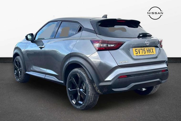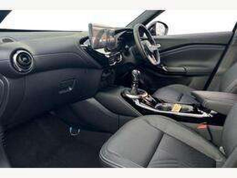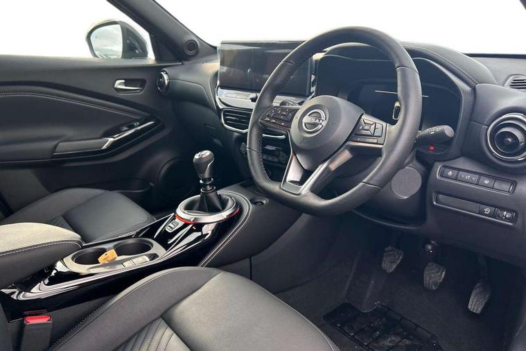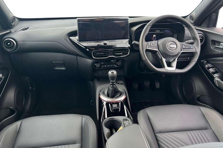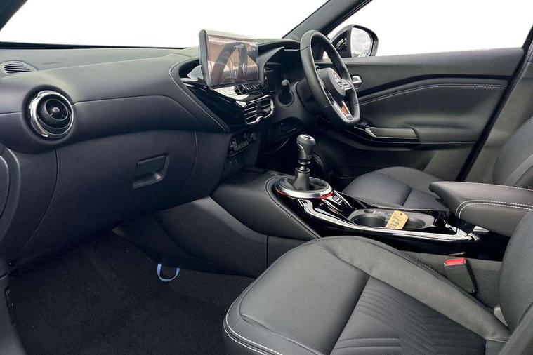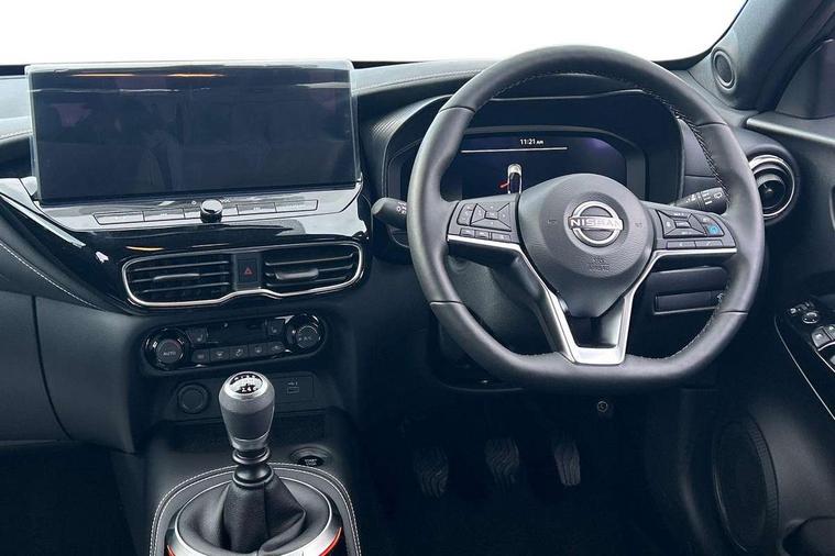 12.3" full colour TFT screen combimeter, Drive modes select (Eco, normal and sport), Emergency and breakdown call, Front parking sensor, Idle start/stop system, Intelligent driver alert system, Intelligent lane intervention, Lane departure warning system, Nissan connect 12.3" touch screen entertainment system, Nissan connect nav with TomTom traffic, Nissan connect services, Outside temperature sensor, Power Steering, Rear parking sensor, Stop/start button, Traffic sign recognition, Trip computer, Voice recognition, WiFi connectivity, Wireless Apple CarPlay and Google Android auto, Wireless Smartphone charger, 10 Bose speakers 8 speakers and 2 headrest speakers for driver/passenger seats, 2 X Rear console USB port, Bluetooth system, USB, Aux-in and 12V socket, Bose personal plus audio system, DAB Digital radio, Auto dimming frameless rear view mirror, Automatic hazard signal with emergency stop signal, Body colour door handles, Electrically adjustable door mirrors with integrated indicators, Follow me home headlights, Front and rear electric window with one touch driver window, High beam assist, LED 3rd brake light, LED daytime running lights, LED front fog lights, LED headlamps, LED rear fog lamp, LED rear lamps, One touch passenger window, Rear privacy glass, Rear side wing doors, Rear wiper, Roof spoiler, Shark fin roof antenna in solid Black, Solid black door mirrors, Three blink turn signal, 3 height adjustable rear headrests, 3 seat bench in 2nd row, 60/40 split folding rear seat, Card holder on driver sunvisor, Door ambient lighting, Driver seat back pocket, Driver side rear coat hanger, Driver/passenger sunvisors and vanity mirrors, Front and rear cabin lights, Front armrest, Front door pockets with bottle holders, Front head restraints, Front/rear passenger grab handles, Gear console ambient circle lighting, Height adjustable driver's seat, Internal chrome door handles, Luggage board, Luggage space lighting, Monoform sporty seats, Multifunction steering wheel, Passenger seat back pocket, Rear door bottle holders, Single front passenger seat, Smooth synthetic leather steering wheel, Synthetic leather kneepad, Synthetic leather shift knob, Synthetic leather upholstery, Telescopic steering wheel adjustment, Two cupholders in front centre console, Two rear isofix child seat anchorage points with top tether, Welcome light and console tray ambient lighting, Advanced safety shield pack - Juke Manual, Comfort pack - Juke, Heat pack with height adjustable passenger seats - Juke, ABS with EBD and brake assist, Active ride control, Active Trace Control, Driver and passenger airbags, Driver and passenger side airbags, Electric handbrake with auto hold function, Electronic Stability Programme (ESP), Front and rear curtain airbags, Height adjustable seatbelts, Hill start assist, Intelligent emergency braking with pedestrian and cyclist recognition, Rear door child safety locks, Seatbelt reminder for driver/front passenger and rear seats, Three 3 point rear seatbelts, Traction control, Tyre pressure monitoring system, VDC Dynamic Vehicle Control, Alarm, Immobiliser, Intelligent key and start push button with walk away lock and approach unlock functions, Remote central locking, 19" Alloy wheels, Tyre puncture repair kit,