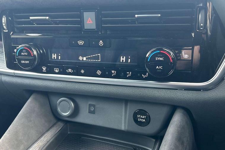 2 front USB-C ports, 2 rear USB-C ports, 360 degree Intelligent around view monitor with moving object detection, Advanced windscreen head up display, Blind spot warning, Drive assist custom mode, Drive modes (sport, normal, eco), Driver drowsiness and attention warning, e-Pedal step, Electric speed sensitive power steering, Emergency and breakdown call, Emergency lane keep assist, Emergency Stop Signal (ESS), Engine start/stop button, EV mode switch, Event data recorder, Front and rear parking sensors, Full Digital 12.3" TFT Digital Combimeter, Google virtual personal assistance, Hands free power tailgate, Idle stop/start system, In-car WIFI hotspot, Intelligent Cruise control (ICC), Intelligent driver alert system, Intelligent forward collision warning, Intelligent lane intervention, Intelligent speed assist, Lane departure warning system, Nissan connect 12.3 inch touchscreen infotainment system, Nissan connect navigation with google maps, Nissan connect services 2.0 (Google Automotive System), Outside temperature sensor, Propilot assist with Navi-Link, ProPilot park, Rear cross traffic alert, Remote control services - door locks, lights, horn and car locator, Reversing detection, Traffic jam pilot, Traffic sign recognition with legal speed adjustment, Trip computer, Wireless Apple CarPlay/Android Auto, Wireless charging pad, Limited slip differential, Multi link suspension, 10 Bose speakers - 2 tweeters, 6 high and medium frequency door speakers and 2 in subwoofer, AM/FM audio system with DAB, Bluetooth audio streaming, Bose acoustimass bass box, Digital amplifier, Auto dimming frameless rear view mirror, Auto rear wiper when reversing, Body colour mirror caps, Body coloured bumpers, Body coloured door handles, Bodyside mouldings, Chrome side window finisher, e-POWER badging, Electric auto folding door mirrors, Electrically adjustable and heated door mirrors with LED turn indicator, Follow me home headlights, Glossy black bumper inserts and fenders, High beam assist, Intelligent auto headlights, LED 3rd brake light, LED daytime running lights, LED headlights with adaptive driving beam, LED rear lights, LED sequential turn lights, One touch front and rear electric windows with remote opening and closing, One touch passenger window, Rain sensing wipers, Rear privacy glass, Rear roof spoiler, Rear side wing doors, Rear styling plate, Reverse tilting door mirrors, Shark fin antenna, Silver roof rails, Splash free rain sensing wipers, Super RED rear LED lights, Super UV and infrared cut glass, Thermaclear heated windscreen, 12v power socket in dashboard and luggage, 3 bench rear seats in 2nd row, 3 rear headrests, 60/40 split folding rear seat bench, Chrome interior door handles, Dark headlining, Driver and passenger sunvisors with illuminated vanity mirrors, Driver seat back pocket, Dual zone automatic climate control with pollen filter, e-POWER shifter, Electric 4-way lumbar support for front seats, Electrically adjustable driver seat with massage and memory functions, Fixed Glass roof with electric sunshade, Front centre console and armrest, Front cupholders, Front door with bottle holders, Heated front seats, Heated steering wheel, Height adjustable front headrests, Height adjustable passenger seat, Luggage board system, Luggage space lighting, Multifunction steering wheel, Passenger seat back pocket, Quilted premium leather upholstery, Rear door bottle holders, Rear seat armrest with 2 cupholders, RGB ambient light (Full area coverage), Single front passenger seat, Smooth leather steering wheel, Tilt/telescopic adjustable steering wheel, Two rear isofix child seat anchorage points with top tether, 3x3 point rear seatbelt pretensioners + load limiters, ABS with EBD and brake assist, Autonomous emergency braking, Child locks on rear doors, Curtain and front side, far side airbags, Driver and passenger airbags, Driver, passenger and 2nd row rear seat belt reminder, Electric handbrake with auto hold function, Front seatbelt pretensioners + load limiters, Height adjustable front seatbelts, Hill start assist, Intelligent blind spot intervention, intelligent front emergency braking, Intelligent rear automatic braking, Tyre pressure monitoring system, Vehicle dynamic control, Advance intelligent key with driver memory storage (seats, mirrors, audio), Engine immobiliser, Remote central door locking with deadlocking, Thatcham alarm, 20" Diamond cut alloy wheels, Tyre puncture repair kit,
