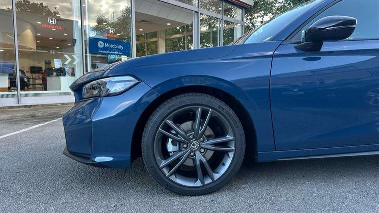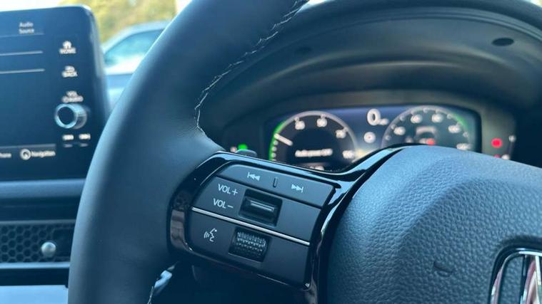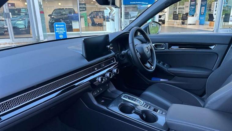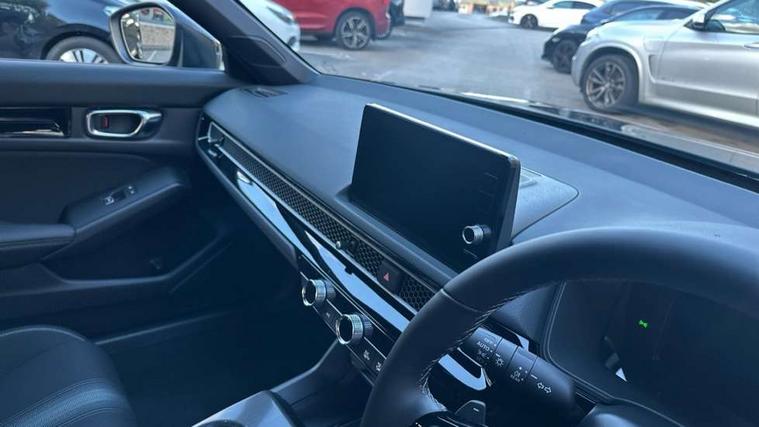 7" Multi information display screen, Adaptive cruise control, Adaptive motion for electric power steering, Adjustable speed limiter, Agile handling assist, BLIS (Blind Spot Information System) with Cross Traffic Monitor, Bluetooth hands free telephone connection, Driving modes, Economy mode, Electric power steering wheel with variable gear ratio steering, Emergency call service, Emergency stop signalling system, Forward collision warning, Front and rear parking sensors, Honda CONNECT with Navigation 9" touchscreen, AM/FM/DAB, Apple Carplay and Android Auto, live traffic info, Honda sensing, Idle stop, Intelligent speed limiter, Lane departure warning system, Lane keep assist, Low speed following, Power meter, Rear parking camera, Road departure mitigation, Smartphone wireless charging plate, Tailgate, Traffic jam assist, Traffic sign recognition, Wireless apple carplay, Vehicle stability assist, 'Shark fin' mobile antenna, 2x USB Front socket (1 data & 1 charge), 8 Speakers, Digital Audio Broadcast (DAB) Tuner, Front tweeters, Steering wheel mounted audio controls, Aspherical driver door mirrors, Auto dimming rear view mirror, Auto headlight adjuster, Auto headlights, Automatic coming/leaving home lighting function, Automatic rain sensing wipers, Black window frames, Body colour door handles, Electric adjustable heated door mirrors, Electric front and rear windows, Electrically folding door mirrors, Headlight extension black, High beam assist, High level LED brake light, LED daytime running lights, LED front fog lights, LED front turn type, LED Headlights, LED rear lights, Low gloss black window garnish, Material finish grille, Pop up hood, Privacy glass, Rear side wing doors, Rear wiper, Single hidden exhaust pipe, Variable front intermittent wipers, 3 seat bench in 2nd row, 60/40 split folding rear seat, Cargo accessory power socket, Cargo net hooks, Driver and front passenger seat armrests, Driver's electric lumbar adjustment, Driver's seat height adjustment, Dual climate control air conditioning system, Fabric/synthetic leather upholstery, Front accessory power socket, Front map lights, Front/rear courtesy lights, Glovebox light, Heated front seats, Hybrid emblem, Isofix points/i size, Leather steering wheel, Meter Illumination white, Passenger seat back pocket, Platinum chrome interior door handles, Rear air vents, Rear head restraints, Rear reading lights, Rear seat centre armrest, Single front passenger seat, Stainless steel sports pedals, Sunvisors with illuminated vanity mirrors, Tilt/telescopic adjustable steering wheel, Tonneau cover, Trunk light, USB Rear number 2 x charge, White ambient roof light, 3x3 point rear seatbelts, ABS+EBD+Brake assist, Airbags - driver and front passenger, Airbags - Knee (AS), Airbags - Knee (DR), Anti-whiplash front headrests, Brake hold function, Collision mitigation braking system, Collision mitigation throttle control, Deflation detection system, Driver SRS airbag (single stage inflation), Electronic parking brake with auto hold, Front and rear curtain airbags, Front and rear seat belts with emergency locking retractor (ELR), Front centre airbag, Front side airbags, Hill start assist, Low speed brake system, Manual child lock in rear doors, Passenger airbag deactivate switch, Rear airbags, Regenerative braking/deceleration paddle control, Immobiliser, Mirrors and windows key fob, Remote central locking with 2 jack knife keys, Security alarm, Selectable door unlock, Smart entry + Smart start, Superlocking, Tilt sensors, Ultrasonic security sensor, Tyre repair kit,