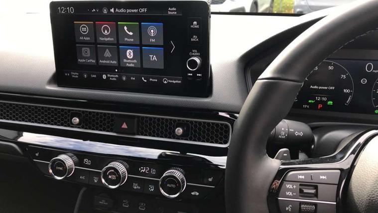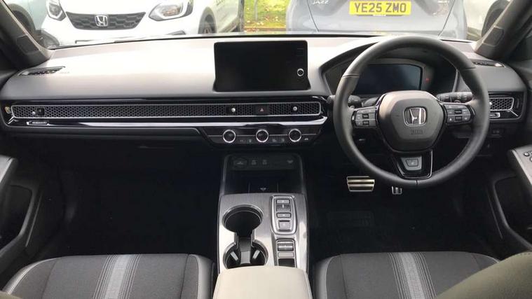 7" Multi information display screen, Adaptive cruise control, Adaptive motion for electric power steering, Adjustable speed limiter, Agile handling assist, BLIS (Blind Spot Information System) with Cross Traffic Monitor, Bluetooth hands free telephone connection, Driving modes, Economy mode, Electric power steering wheel with variable gear ratio steering, Emergency call service, Emergency stop signalling system, Forward collision warning, Front and rear parking sensors, Honda CONNECT with Navigation 9" touchscreen, AM/FM/DAB, Apple Carplay and Android Auto, live traffic info, Honda sensing, Idle stop, Intelligent speed limiter, Lane departure warning system, Lane keep assist, Low speed following, Power meter, Rear parking camera, Road departure mitigation, Smartphone wireless charging plate, Tailgate, Traffic jam assist, Traffic sign recognition, Wireless apple carplay, Vehicle stability assist, 'Shark fin' mobile antenna, 2x USB Front socket (1 data & 1 charge), 8 Speakers, Digital Audio Broadcast (DAB) Tuner, Front tweeters, Steering wheel mounted audio controls, Aspherical driver door mirrors, Auto dimming rear view mirror, Auto headlight adjuster, Auto headlights, Automatic coming/leaving home lighting function, Automatic rain sensing wipers, Black window frames, Body colour door handles, Electric adjustable heated door mirrors, Electric front and rear windows, Electrically folding door mirrors, Headlight extension black, High beam assist, High level LED brake light, LED daytime running lights, LED front fog lights, LED front turn type, LED Headlights, LED rear lights, Low gloss black window garnish, Material finish grille, Pop up hood, Privacy glass, Rear side wing doors, Rear wiper, Single hidden exhaust pipe, Variable front intermittent wipers, 3 seat bench in 2nd row, 60/40 split folding rear seat, Cargo accessory power socket, Cargo net hooks, Driver and front passenger seat armrests, Driver's electric lumbar adjustment, Driver's seat height adjustment, Dual climate control air conditioning system, Fabric/synthetic leather upholstery, Front accessory power socket, Front map lights, Front/rear courtesy lights, Glovebox light, Heated front seats, Hybrid emblem, Isofix points/i size, Leather steering wheel, Meter Illumination white, Passenger seat back pocket, Platinum chrome interior door handles, Rear air vents, Rear head restraints, Rear reading lights, Rear seat centre armrest, Single front passenger seat, Stainless steel sports pedals, Sunvisors with illuminated vanity mirrors, Tilt/telescopic adjustable steering wheel, Tonneau cover, Trunk light, USB Rear number 2 x charge, White ambient roof light, 3x3 point rear seatbelts, ABS+EBD+Brake assist, Airbags - driver and front passenger, Airbags - Knee (AS), Airbags - Knee (DR), Anti-whiplash front headrests, Brake hold function, Collision mitigation braking system, Collision mitigation throttle control, Deflation detection system, Driver SRS airbag (single stage inflation), Electronic parking brake with auto hold, Front and rear curtain airbags, Front and rear seat belts with emergency locking retractor (ELR), Front centre airbag, Front side airbags, Hill start assist, Low speed brake system, Manual child lock in rear doors, Passenger airbag deactivate switch, Rear airbags, Regenerative braking/deceleration paddle control, Immobiliser, Mirrors and windows key fob, Remote central locking with 2 jack knife keys, Security alarm, Selectable door unlock, Smart entry + Smart start, Superlocking, Tilt sensors, Ultrasonic security sensor, Tyre repair kit,