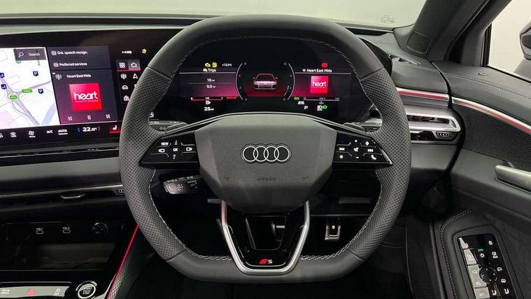 Audi application store, Audi assistant, Audi connect emergency call and service, Audi connect with Amazon Alexa Integration, Audi digital key, Audi drive select, Audi phone box with wireless charging, Audi virtual cockpit, Automatic start/stop system with coasting functionality, Bluetooth interface, Luggage compartment lid with Electric opening / closing, MMI navigation plus with high resolution 14.5" OLED touchscreen colour display, Power assisted steering, Service interval indicator, Smartphone interface includes wireless Apple carplay/Android Auto, Voice control system, Quattro with ultra technology, Sports suspension, Audi sound system impressive sound with 10 loudspeakers including centre speaker and subwoofer, 6-channel amplifier with a total output of 180 watts, DAB Digital radio, USB ports with charging function, Aluminium roof rails, Audi Matrix LED technology, Auto dimming rear view mirror, Automatic-dynamic headlight range control, Body colour door mirrors, Body coloured door handles, Dipped beam, main beam, position light, dynamic indicator and cornering light, Door mirrors - electrically adjustable, heated, folding and auto dimming on both sides, Dynamic light scenarios of the coming home/leaving home function when stationary, Electric front/rear windows, Frameless auto dimming interior rear view mirror, Front illuminated aluminium inlay door sill trims with S logo, Headlight cleaning system, LED headlights Plus incl. digital daytime running lights, turning light, all-weather light, motorway light, manouevring light and intersection light, LED rear lights pro incl. brake lights, tail lights, rear number plate lights, reversing lights, continuous light strip, LED third brake light, Privacy glass, Rain and light sensors, Rear and side windows with heat insulating glass, Rear side wing doors, Rear wiper, Roof spoiler, S line exterior styling, Sport exterior inc Radiator grille, air inlets and diffuser in scandium grey as well as inlay in diffuser in selenite silver, White rhombus logo projection light in exterior mirrors, Window trim strips in aluminium look, Windscreen with heat insulating and acoustic glazing, 3 seat bench in 2nd row, 3-spoke Sport leather steering wheel flat top and bottom with multifunction and shift paddles, 4 way electric lumbar support for driver and front passenger, 4 zone deluxe automatic climate control, 40:20:40 split folding rear seat bench with centre armrest and cup holders, Centre armrest, front- adjustable angle with four settings, Electrically adjustable front seats, Front head restraints, Heated front seats, i-Size child seat mounting on the front passenger side and outer rear seats, i-Size and top tether on the outer rear seats, Manual steering wheel adjustment, Net partition, Rear headrests, Single front passenger seat, Sport front seats, Stainless steel pedals and footrest, Steering wheel trim in chrome look, S emblem, steering wheel grips in perforated leather and contrasting stitching, Twin leather/artificial leather upholstery, Ambient lighting package plus - A6, Drive and Park assistance package - A6, Protective warning assistance package - A6, 3x3 point rear seat belts, Acoustic vehicle alerting system, Black seat belts, Convenience key with safelock, Driver and front passenger airbags, EBD - Electronic brakeforce distribution, Electric rear child safety lock, Electromechanical parking brake, Electronic Stability Control (ESC) including ABS, ASR and EDL, First aid kit with warning triangle and vests, Front passenger airbag deactivation, Seatbelt monitoring, Side airbags front with head airbag system and interaction airbag, Standard 18"steel disc brakes front and rear, Tyre pressure monitoring system, Anti theft alarm, Anti-theft wheel bolts, Immobiliser, Keyless Go, Remote central locking, Accents in the interior in aluminium look, Inlays in matt brushed aluminium with linear embossing, anthracite, Upper and lower interior elements in leatherette with contrasting stiching, Wraparound interior elements in artificial leather, Tyre repair kit,