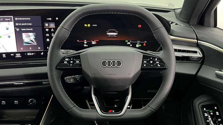 Audi application store, Audi assistant, Audi connect emergency call and service, Audi connect with Amazon Alexa Integration, Audi digital key, Audi drive select, Audi phone box with wireless charging, Audi virtual cockpit, Automatic start/stop system with coasting functionality, Bluetooth interface, Luggage compartment lid with Electric opening / closing, MMI navigation plus with high resolution 14.5" OLED touchscreen colour display, Power assisted steering, Service interval indicator, Smartphone interface includes wireless Apple carplay/Android Auto, Voice control system, Quattro with ultra technology, Sports suspension, Audi sound system impressive sound with 10 loudspeakers including centre speaker and subwoofer, 6-channel amplifier with a total output of 180 watts, DAB Digital radio, USB ports with charging function, Aluminium roof rails, Audi Matrix LED technology, Auto dimming rear view mirror, Automatic-dynamic headlight range control, Body colour door mirrors, Body coloured door handles, Dipped beam, main beam, position light, dynamic indicator and cornering light, Door mirrors - electrically adjustable, heated, folding and auto dimming on both sides, Dynamic light scenarios of the coming home/leaving home function when stationary, Electric front/rear windows, Frameless auto dimming interior rear view mirror, Front illuminated aluminium inlay door sill trims with S logo, Headlight cleaning system, LED headlights Plus incl. digital daytime running lights, turning light, all-weather light, motorway light, manouevring light and intersection light, LED rear lights pro incl. brake lights, tail lights, rear number plate lights, reversing lights, continuous light strip, LED third brake light, Privacy glass, Rain and light sensors, Rear and side windows with heat insulating glass, Rear side wing doors, Rear wiper, Roof spoiler, S line exterior styling, Sport exterior inc Radiator grille, air inlets and diffuser in scandium grey as well as inlay in diffuser in selenite silver, White rhombus logo projection light in exterior mirrors, Window trim strips in aluminium look, Windscreen with heat insulating and acoustic glazing, 3 seat bench in 2nd row, 3-spoke Sport leather steering wheel flat top and bottom with multifunction and shift paddles, 4 way electric lumbar support for driver and front passenger, 4 zone deluxe automatic climate control, 40:20:40 split folding rear seat bench with centre armrest and cup holders, Centre armrest, front- adjustable angle with four settings, Electrically adjustable front seats, Front head restraints, Heated front seats, i-Size child seat mounting on the front passenger side and outer rear seats, i-Size and top tether on the outer rear seats, Manual steering wheel adjustment, Net partition, Rear headrests, Single front passenger seat, Sport front seats, Stainless steel pedals and footrest, Steering wheel trim in chrome look, S emblem, steering wheel grips in perforated leather and contrasting stitching, Twin leather/artificial leather upholstery, Ambient lighting package plus - A6, Drive and Park assistance package - A6, Protective warning assistance package - A6, 3x3 point rear seat belts, Acoustic vehicle alerting system, Black seat belts, Convenience key with safelock, Driver and front passenger airbags, EBD - Electronic brakeforce distribution, Electric rear child safety lock, Electromechanical parking brake, Electronic Stability Control (ESC) including ABS, ASR and EDL, First aid kit with warning triangle and vests, Front passenger airbag deactivation, Seatbelt monitoring, Side airbags front with head airbag system and interaction airbag, Standard 18"steel disc brakes front and rear, Tyre pressure monitoring system, Anti theft alarm, Anti-theft wheel bolts, Immobiliser, Keyless Go, Remote central locking, Accents in the interior in aluminium look, Inlays in matt brushed aluminium with linear embossing, anthracite, Upper and lower interior elements in leatherette with contrasting stiching, Wraparound interior elements in artificial leather, Tyre repair kit,