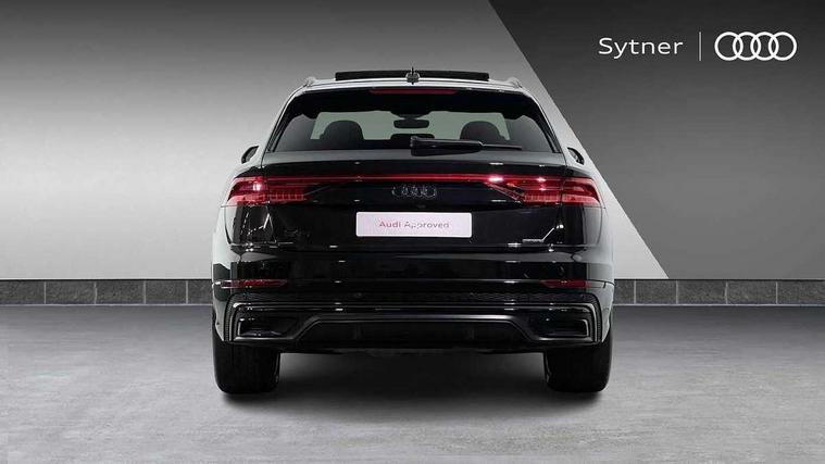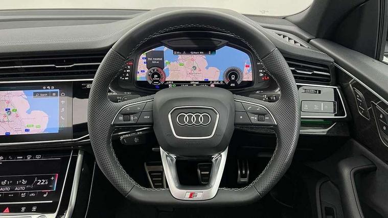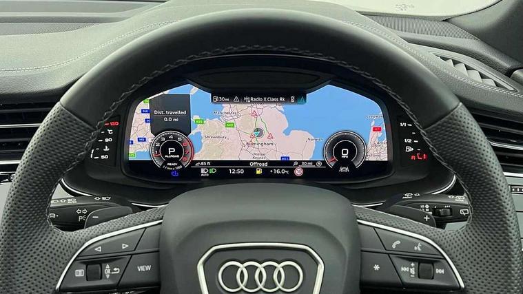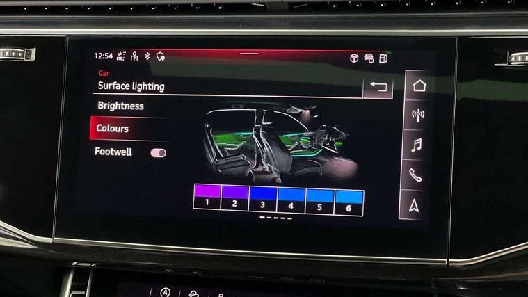 10.1" and 8.6" Dual colour touchscreens, Audi connect safety and service (e-call), Audi connect with Amazon Alexa Integration, Audi drive select, Audi parking system plus includes 360 degree display with front and rear sensors, Audi phone box light with wireless charging, Audi virtual cockpit - 12.3" high resolution LCD display with fully customisable instrument cluster, Automatic start/stop system, Electro-mechanical PAS, Low washer fluid indicator, MMI - Multi Media Interface control system, MMI navigation plus with MMI touch, Natural voice recognition, On board computer, Operating buttons in black, glass look with haptic feedback, Power operated tailgate, Rear view camera, Service interval indicator, Smartphone interface includes wireless Apple carplay/Android Auto, 48V Mild hybrid technology, 85 litre fuel tank, Adaptive sport air suspension, Quattro all wheel drive with self locking centre differential, Audi music interface with 2 USB ports with charge and data functions, Audi sound system with 6 channel amplifier, 180 watt amplifying capacity and 10 loudspeakers including subwoofer, Aux-in socket, DAB Digital radio, 3rd brake light, Acoustic windscreen, Aluminium window trim, Audi HD Matrix LED headlights with dynamic front and rear indicators, Auto dimming frameless rear view mirror, Body colour door mirrors, Coming/leaving home lighting function, Electric front+rear windows, Electrically folding auto dimming/adjustable/heated door mirrors with memory function, LED side indicators and kerb view function for passenger side, Headlight washers, Heat insulating glass in windshield, Illuminated door sill trims with S line logo, LED signature daytime running lights, Platinum grey front spoiler lip and diffuser insert with honeycomb grille in black, Privacy glass - dark tinted rear and rear side windows from B-pillar backwards, Rain and light sensors, Rear side wing doors, Rear wiper, S line badges on front wings, S Line body styling, S line bumpers in full body colour paint finish, S line roof spoiler, S Line side skirts, S line side ventilation grille, 2 zone automatic climate control, 3 bench rear seats in 2nd row, 4-way lumbar support for front seats, 40:20:40 split folding rear bench seat, Audi phone box light, Black cloth headlining, Comfort front centre armrest, Driver seat memory function, Electrically adjustable front seats, Front head restraints, Front/rear floor mats, Heated front seats, ISOFIX child seat mounting for front passenger seat and 2 outer rear seats with top tether child seat mounting for all 3 rear seats, LED interior ambient lighting, Luggage compartment sill protection in stainless steel, Rear centre armrest with 2 cupholders, Rear headrests, Seat cushion displaceable by 100mm in the ratio 60:40, Single front passenger seat, Stainless steel pedals, Sunvisors with illuminated vanity mirrors, 3 point seatbelts on all seats, Audi pre sense front, Child locks on rear doors, Driver and front passenger, front side and curtain airbags, Electromechanical parking brake, Electronic Stability Control (ESC) including ABS, ASR and EDL, Front passenger airbag deactivation, Hill descent control, Hill hold assist, Predictive pedestrian protection, Seatbelt monitoring, Traction control, Tyre pressure loss indicator, Warning triangle and first aid kit, Anti theft alarm with tow away protection, Anti-theft wheel bolts and wheel loosening detection, Immobiliser, Keyless go with remote central locking, Dark matt brushed aluminium inlay, Tool kit, Tyre repair kit,