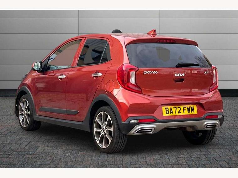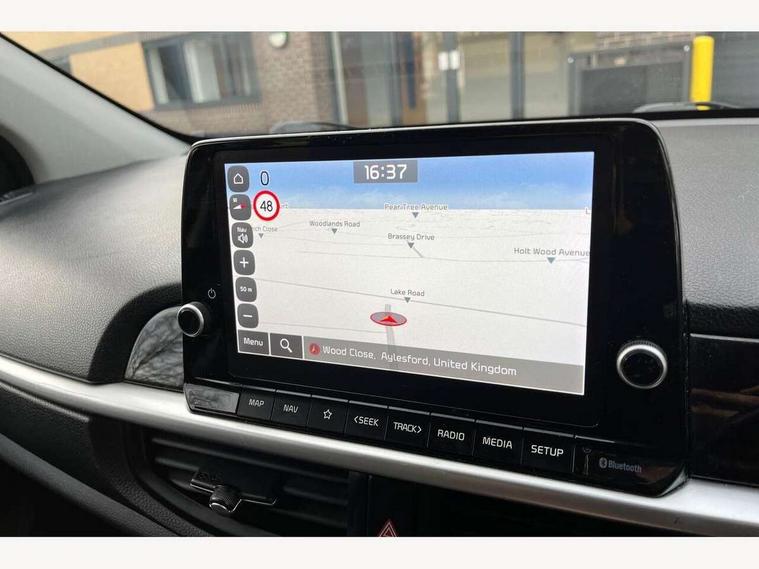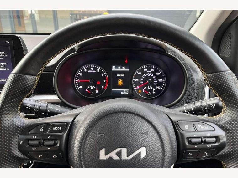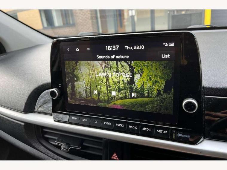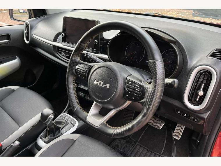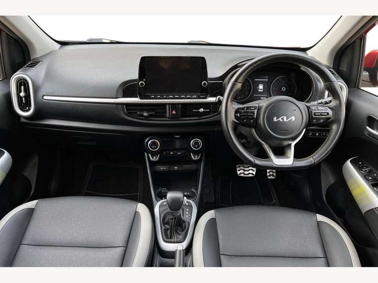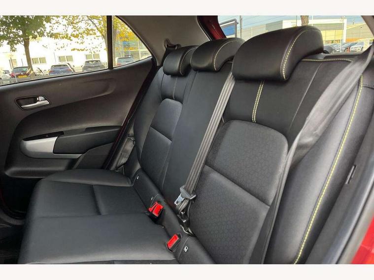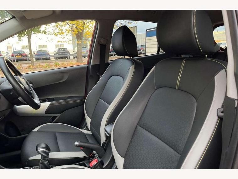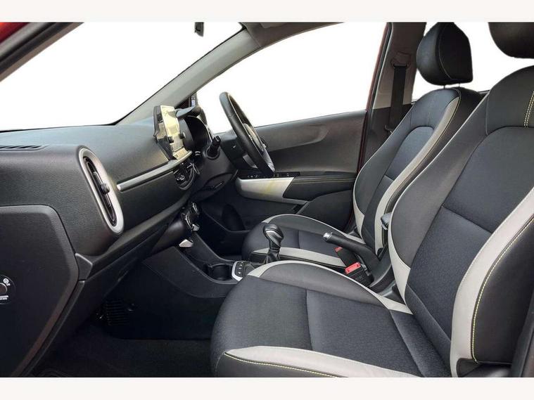 8" touch screen satellite naviagtion with RDS and DAB with telematics, Apple car play/Android Auto with voice control, Cruise control + speed limiter, Emergency call service, Emergency stop signalling system, External temperature gauge, Kia Connect (UVO), Motor driven power steering, Rear parking sensors, Reversing camera system with dynamic guidelines (Integrated into centre fascia screen), Tachometer, Trip computer, Wireless Smartphone charger, 6 speaker audio system, Bluetooth with music streaming, Steering wheel mounted controls, USB ports for connection of a media device, Automatic headlight control system, Bi-function projection headlights, Black beltline mouldings, Black grille with silver surround, Black side sill moulding, Black wheel arch cladding, Body colour B pillars, Body colour bumpers, Body coloured mirrors and chrome exterior handles, Day/night rear view mirror, Electric adjustable/heated/folding door mirrors with LED indicators lights, Front and rear bumpers with silver skid plates and twin exhaust, Front and rear electric windows with drivers's auto up/down function, Front fog lights, Headlamp levelling, Heated rear window, High mount brake light, LED daytime running lights, LED rear fog lights, LED rear lights, Privacy glass - Rear windows and tailgate, Rain sensor, Rear side wing doors, Rear wash/wipe, Speed variable front wipers, Tinted glass, Visible VIN plate, Welcome and follow-me home light functionality, 1 x rear coat hook, 12V power point front, 3 seat bench in 2nd row, 3 x passenger assist grips, 60/40 split/folding 2nd row of seats, All round height adjustable headrests, Automatic air conditioning, Centre Console with Storage Box and Sliding Armrest, Cupholders in centre console, D-cut steering wheel with green stitching, Driver and front passenger sunvisors with driver's side illuminated vanity mirrors, Driver seat height adjust, Dual Height Luggage Area Floor, Faux leather upholstery, Front cabin lights, Glovebox, Heated front seats, Heated steering wheel, ISOFIX Child seat top tethers and anchor fixings, Leather trimmed steering wheel and gearshift, Luggage area light, Luggage area parcel shelf, Metal pedals, Passenger front seatback pockets, Satin chrome interior door handles, Silver and green accents on door armrests, lower centre console trim and air vents, Single front passenger seat, Slide/reclining front seats, Tilt adjustable steering wheel, Advanced Driver Assistance Pack - Picanto, 3x3 point rear seatbelts, ABS/EBD, Automatic unlocking of doors in case of impact, Dual front airbags, ESC + BAS + VSM + HAC, Front passenger airbag cut-off switch, Front seatbelt height adjusters, Front seatbelt pretensioners + load limiters, Hill hold control, Knee airbags, Rear child proof door locks, Seatbelt warning, Side impact protection, Torque vectoring brake based and straight line stability (SLS), Traction control, Twin curtain airbags, Twin front side airbags, Tyre pressure monitoring system, Anti theft alarm, Engine immobiliser, Locking wheel nuts, Smart key with engine start/stop button, 16" alloy X-Line wheels, Tyre mobility kit,