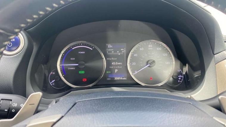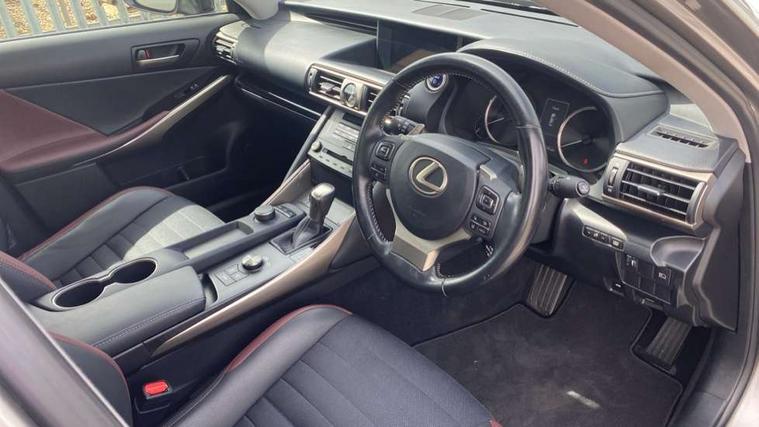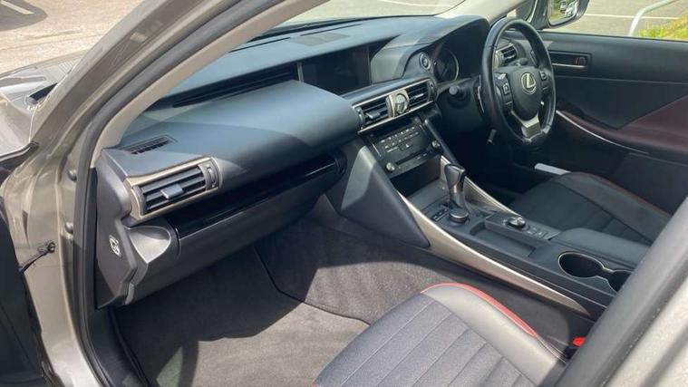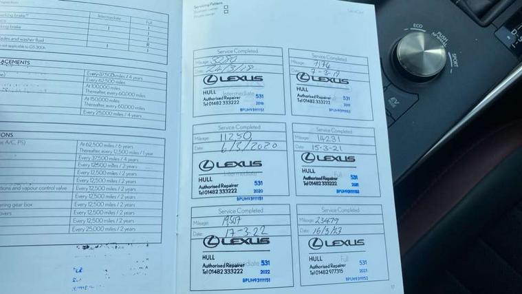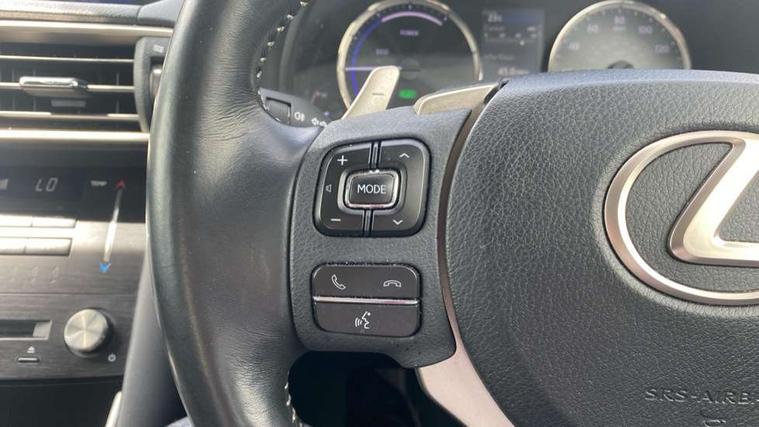 7" colour screen, Adaptive cruise control, Analogue clock, Bluetooth telephone connectivity, Drive mode selector, Lane keep assist, Lexus Navigaton System, Push button starter, Rear view camera, Speed sensitive power steering, Traffic sign recognition, Trip computer, VDIM, Vehicle Stability Control (VSC), 6 speakers, Aux-in socket, DAB Digital radio, Radio/CD, USB socket, Black door mirrors, Door mirror puddle lights, Electric front/rear windows, Electric/heated/folding door mirrors, Electrochromatic rear view mirror, Headlight washers, High beam assist, LED brake lights, LED daytime running lights, LED Headlights, Rain sensitive windscreen wipers, 2 cupholders, 3 spoke multi-function steering including paddle shift, 4 Load area hooks, 6 way manually adjustable front seats, 60/40 split folding rear seat, Active sound control, Carpet mats, Coat hooks, Driver/passenger sunvisors and vanity mirrors, Dual climate control air conditioning system, Fabric/Tahara synthetic leather upholstery, Front centre armrest with storage, Front door pockets, Front headrests, Heated front seats, Isofix standard child seat restraint mounting, Leather gear lever, Leather steering wheel and gear knob, LED interior illumination, Rake/reach adjustable steering wheel, Rear armrest with 2 cupholders, Rear door map pockets, Rear headrests, 3 point rear seatbelts, ABS+EBD+Brake assist, Active bonnet, Curtain airbags, Driver and passenger airbags, Drivers knee airbag, Electronically controlled braking, Front seatbelt pretensioners, Front side airbags, Hill start assist control (HAC), Passenger airbag deactivate switch, Passenger knee airbag, Pre crash system, Sway warning system, Traction control, Tyre pressure monitoring system, Automatic door locking, Immobiliser, Intrusion sensor and alarm, Smart keyless entry, Metallic black inlay, 18" Black alloy wheels, Tyre repair kit,