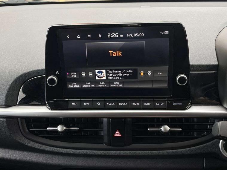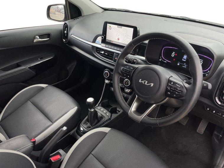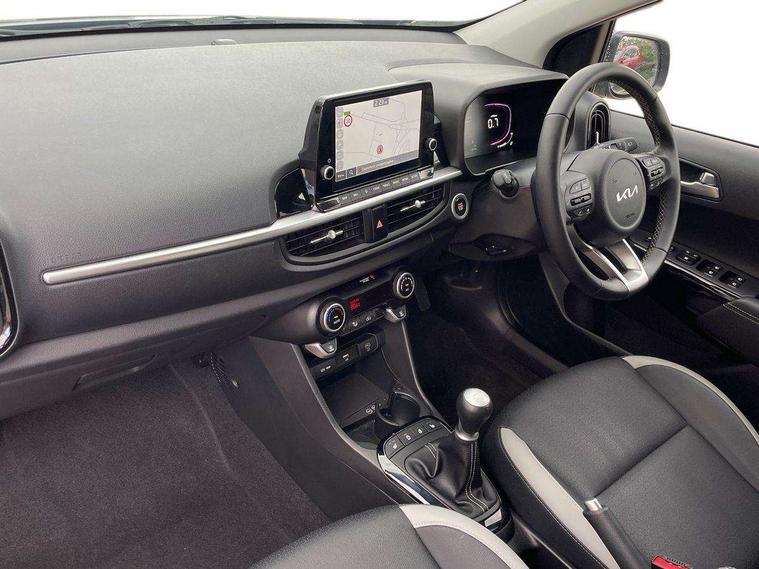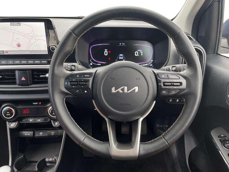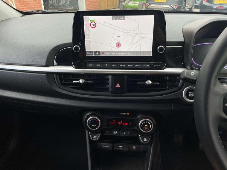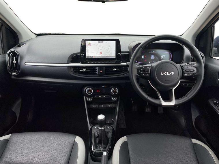 4.2" driver display screen, 8" touchscreen navigation, Apple car play/Android Auto with voice control, Cruise control + speed limiter, Emergency call service, Emergency stop signalling system, External temperature gauge, Forward Collision-Avoidance Assist (FCA) 1.0 - City/Pedestrian/Cyclist, Intelligent speed limit assist, Kia Connect (UVO), Lane Follow Assist 1.0, Lane keep assist, Motor driven power steering, Rear parking sensors, Reversing camera system, Tachometer, Trip computer, Wireless Smartphone charger, 4 speaker audio system, Bluetooth with music streaming, USB ports for connection of a media device, Automatic defog system, Automatic headlight control system, Body colour bumpers, Body colour side sill mouldings, Body coloured door mirrors, Body coloured wheel arches, Electric adjustable/heated/folding door mirrors with LED indicators lights, Electric front and rear windows, Electric front touch drivers front window, Headlamp levelling, Heated rear window, High mount brake light, LED daytime running lights, LED Headlights, LED rear lights, Privacy glass - Rear windows and tailgate, Rain sensor, Rear fog lights, Rear side wing doors, Rear wiper, Silver window surround, Speed variable front wipers, Tinted windshield glass, Visible VIN plate, 12V power point front, 3 seat bench in 2nd row, 60:40 Split folding rear seats, All round height adjustable headrests, Artificial leather steering wheel, Artificial leather upholstery, Automatic air conditioning, Centre console storage box, Driver and front passenger sunvisors with driver's side illuminated vanity mirrors, Front and rear door storage, Front cabin lights, Front passenger USB-C charging port, Glovebox, Grey headlining, Heated front seats, Heated steering wheel, ISOFIX Child seat top tethers and anchor fixings, Luggage area light, Luggage area parcel shelf, Luggage board, Luggage net + hook, Manual adjust steering wheel, Manual adjustable driver and front passenger seat, Rear cabin lights, Rear USB charging port, Single front passenger seat, All round 3-point seatbelts, Anti-lock braking system (ABS), Electronic stability control, Front + rear side airbags, Front airbags, Front passenger airbag cut-off switch, Front seatbelt height adjusters, Hill hold control, Hill start assist control (HAC), Rear airbags, Seatbelt warning, Side impact protection, Torque vectoring brake based and straight line stability (SLS), Traction control, Tyre pressure monitoring system, Vehicle stability management, Anti theft alarm, Engine immobiliser, Folding key, Locking wheel nuts, Manual child locks, Rear occupant alert, Remote central door locking, Smart key with engine start/stop button, Smart key with motion sensor, Thatcham category 2 security alarm and immobiliser, 16" alloy wheels, Tyre mobility kit,