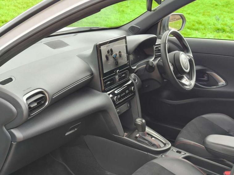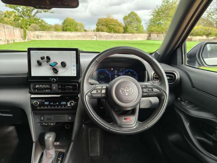 10.5" Multimedia display screen, 10.5" Toyota smart connect+ with navi multimedia system with wireless Smartphone integration incl Apple CarPlay, 12.3" Multi information display screen, Adaptive cruise control, multi info switches on steering wheel, Adjustable speed limiter, Bluetooth connectivity, Color multi-information display, Digital speedometer, Digital tachometer, Drive mode selector, Driver attention alert system, eCall emergency system, Electric power steering, Emergency driving stop system, Full range intelligent adaptive cruise control, Hybrid system indicator, Intersection turn assist, Key reminder warning, Lane trace assist, My T Connected services, Pre-collision system enhanced with emergency steering assist, Reversing camera, Road sign assist - RSA, Static guide lines on reversing camera, Telephone switch on steering wheel, Wireless Mobile Phone Charger, Steering assisted vehicle stability control, 6 speakers, DAB Digital radio, Front USB Type-C connector, Front USB-C device charger, 3rd brake light, Acoustic windscreen glass, Anti-jam protection on power windows, Auto dimming rear view mirror, Auto high beam [AHB] with on/off switch, Auto intermittent windscreen wipers, Automatic headlights, Automatic headlights cut-off, Black door moulding, Black lower front grille, Black protection moulding on side doors, Black rear bumper with diffuser, Black rear under run, Black roof rails, Black wheel arch mouldings, Body colour door handles, Body colour front bumper, Electric adjustable heated door mirrors, Follow me home headlights, Front and rear electric windows with auto up/down function, Gloss black upper front grille, GR Sport meshed lower front grille, GR Sport meshed upper front grille, GR sport scuff plates, Headlight cut off reminder, Indicators integrated on door mirrors, Intermittent rear wiper, LED daytime running lights guide, LED front fog lights, LED front light guide, LED Indicators, LED projector headlights, LED rear lights with sequential indicators, Manual headlight levelling, Noise reduction layer on windscreen, Privacy glass, Rain sensor, Rear side wing doors, Rear spoiler, Rear window defogger, Shark fin antenna, 12v power outlet - front, 12V power point in boot, 2x Rear coat hooks, 3 seat bench in 2nd row, 3 Spoke GR Sport leather steering wheel, 40/60 split deckboard, 40:20:40 split folding rear bench seat, Adjustable rear headrests, Adjustable speed limiter switch on steering wheel, Black roof lining, Boot light, Driver and front passenger personal lights, Driver and front passenger Whiplash injury Lesseing seats, Driver and passenger seatback pockets, Dual zone automatic air conditioning, Fabric door trim, Front console box, Front cup holders, Front door pockets, Front head restraints, Front sport seats, Front/rear assist grips, Gear shift indicator, GR sport floor mats, Heated driver and passenger seats, Height adjustable driver's seat, Height adjustable front passenger seat, Hooks for luggage holding belts, ISOFIX child restraint system, Lane departure alert switch on steering control, Leather gearshift, LED centre room light, Light on driver and passenger sun visor, Manual telescopic and tilting steering wheel, Mirror on driver and passenger sun visor, Nanoe-X air purifier, Pollen air filter, Power adjustable lumbar support on driver seat, Rear cup holders, Rear door pockets, Rear head restraints, Remote air-conditioning system, Single compartment glovebox, Single front passenger seat, Soft tonneau cover, Storage box under boot floor, Ultra suede cloth upholstery, Voice recognition switch on steering wheel, White ambient lighting in centre console, White ambient lighting in footwell, White ambient lighting on front doors, 3x3 point rear seat belts, ABS+EBD+Brake assist, Driver and passenger central airbags, Driver and passenger front airbags, Driver and passenger side airbags, Electronic parking brake, Emergency brake light system (EBS), Front seat belt reminder, Hill start assist control (HAC), Passenger airbag on/off switch, Pre-collision system with pedestrian and cyclist detection, Rear door child safety locks, Rear passenger side airbags, Rear seat belt reminder, Traction control, Tyre pressure warning system, Immobiliser, Intrusion alarm, Keyless smart entry with push button start, Power door locks, Power passenger window lock, Remote door lock, Tyre repair kit,