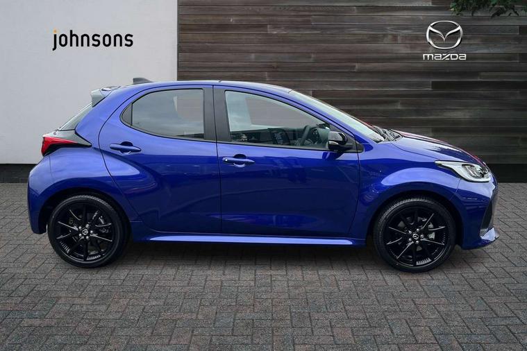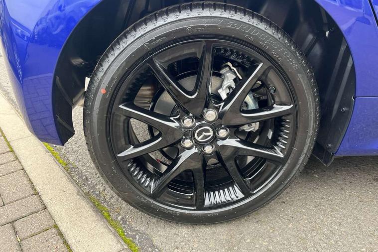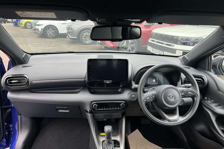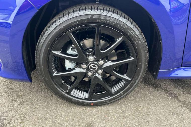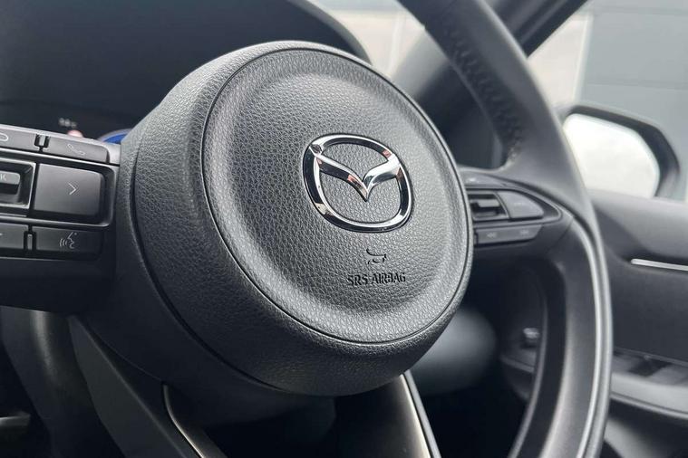 7" Digital instrument cluster with speedometer and hybrid system indicator, Adjustable speed limiter, Drive mode selector (Eco, Normal and Power), Driver attention alert system, Dynamic radar cruise control, E-call with GPS, EV drive mode, Front and rear parking sensors, Integrated bluetooth, Lane tracing assist includes Lane centering, Lane departure alert, Steering assist and Vehicle sway warning, Multi-information display, PAS, Push button start and stop, Qi wireless charging, Rear cross traffic alert with auto braking, Reversing camera, Road sign assist - RSA, Service indicator, Tailgate, Trip computer, Wireless Apple CarPlay and wired Android Auto, i-stop, 6 speaker audio system and 9" colour screen centre display, DAB Digital radio, Steering wheel mounted audio/bluetooth controls, USB type C port, Auto dimming rear view mirror, Auto folding door mirrors, Automatic high beam - AHB, Body coloured front bumper, Body coloured rear bumper with gloss black lower mouldings, Coming home function, Dusk sensing headlights, Front and rear electric windows, Gloss black electric adjustable/heated door mirrors, Gloss black front grille, Gloss black rear roof spoiler, Hybrid badge, LED front fog lights, LED headlights with manual headlight levelling and LED daytime running lights, LED rear combination light with LED turn signals, LED third brake light, Mazda unique tailgate garnish, Piano black lower window garnish, Privacy glass in rear side and rear windows, Rain sensing front wipers with adjustable sensitivity and speed, Rear side wing doors, Rear wash wiper, Shark fin antenna, Welcome lighting, 12V power outlet, 3 seat bench in 2nd row, 60/40 split fold down rear seats, Ambient lighting, Black roof lining in pillar and ceiling, Cloth/Synthetic leather upholstery, Driver, front passenger and two rear door storage, Driver, Front passenger and two rear grab handles with coathooks, Drivers seat manual slide recline and height adjustment, Drivers/front passengers with covered vanity mirrors and light, Dual zone climate control, Front centre armrest with console storage, Front head restraints, Front passenger seat manual slide, recline and height adjust, Front sport seats, Glovebox, Interior courtesy light with LED illumination, ISOFIX child seat anchorage points attached on outer rear seats, Leather handbrake, Leather wrapped gearshift, Leather wrapped steering wheel with telescopic and tilt adjustment, Luggage compartment light, Seatback pocket at rear of the front passenger seat, Single front passenger seat, Three height adjustable rear head restraints, 2x3 point front seatbelts with pre-tensioners, 3 point seatbelts on all rear seats, Airbags - driver and front passenger, Anti-lock braking system (ABS), Blind spot monitoring with rear cross parking support brake function, Collision mitigation braking system, Driver and passenger central airbags, Dynamic stability control + Traction control, Electronic parking brake with auto-hold and auto-disengage function, Emergency brake light signal (EBS), ESP, Front and rear curtain airbags, Front passenger airbag cut-off switch, Front side airbags, Hill start assist control (HAC), Manual child lock in rear doors, Pre-crash safety system - PCS, Rear parking support brake, Regenerative braking system, Seatbelt reminder audible warning, Tyre pressure monitoring system, Deadlocking system, Remote central locking, Smart keyless entry, Thatcham approved immobiliser and alarm, 17" Alloy wheels, Emergency tyre repair kit,