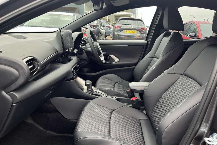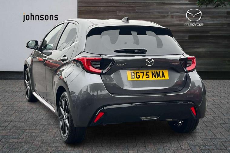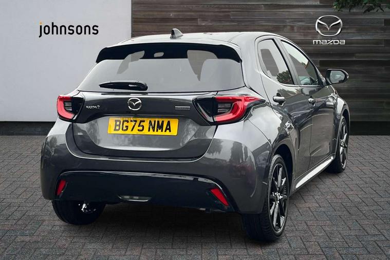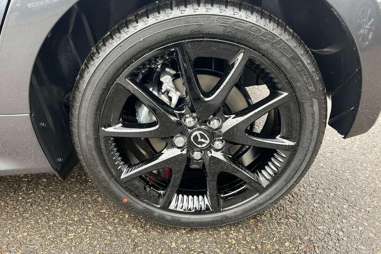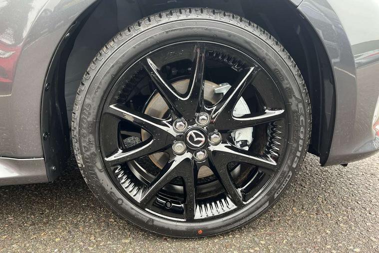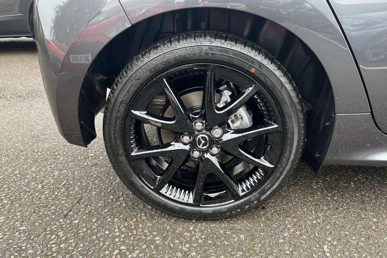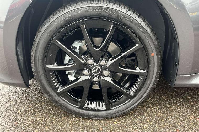 7" Digital instrument cluster with speedometer and hybrid system indicator, Adjustable speed limiter, Drive mode selector (Eco, Normal and Power), Driver attention alert system, Dynamic radar cruise control, E-call with GPS, EV drive mode, Front and rear parking sensors, Integrated bluetooth, Lane tracing assist includes Lane centering, Lane departure alert, Steering assist and Vehicle sway warning, Multi-information display, PAS, Push button start and stop, Qi wireless charging, Rear cross traffic alert with auto braking, Reversing camera, Road sign assist - RSA, Service indicator, Tailgate, Trip computer, Wireless Apple CarPlay and wired Android Auto, i-stop, 6 speaker audio system and 9" colour screen centre display, DAB Digital radio, Steering wheel mounted audio/bluetooth controls, USB type C port, Auto dimming rear view mirror, Auto folding door mirrors, Automatic high beam - AHB, Body coloured front bumper, Body coloured rear bumper with gloss black lower mouldings, Coming home function, Dusk sensing headlights, Front and rear electric windows, Gloss black electric adjustable/heated door mirrors, Gloss black front grille, Gloss black rear roof spoiler, Hybrid badge, LED front fog lights, LED headlights with manual headlight levelling and LED daytime running lights, LED rear combination light with LED turn signals, LED third brake light, Mazda unique tailgate garnish, Piano black lower window garnish, Privacy glass in rear side and rear windows, Rain sensing front wipers with adjustable sensitivity and speed, Rear side wing doors, Rear wash wiper, Shark fin antenna, Welcome lighting, 12V power outlet, 3 seat bench in 2nd row, 60/40 split fold down rear seats, Ambient lighting, Black roof lining in pillar and ceiling, Cloth/Synthetic leather upholstery, Driver, front passenger and two rear door storage, Driver, Front passenger and two rear grab handles with coathooks, Drivers seat manual slide recline and height adjustment, Drivers/front passengers with covered vanity mirrors and light, Dual zone climate control, Front centre armrest with console storage, Front head restraints, Front passenger seat manual slide, recline and height adjust, Front sport seats, Glovebox, Interior courtesy light with LED illumination, ISOFIX child seat anchorage points attached on outer rear seats, Leather handbrake, Leather wrapped gearshift, Leather wrapped steering wheel with telescopic and tilt adjustment, Luggage compartment light, Seatback pocket at rear of the front passenger seat, Single front passenger seat, Three height adjustable rear head restraints, 2x3 point front seatbelts with pre-tensioners, 3 point seatbelts on all rear seats, Airbags - driver and front passenger, Anti-lock braking system (ABS), Blind spot monitoring with rear cross parking support brake function, Collision mitigation braking system, Driver and passenger central airbags, Dynamic stability control + Traction control, Electronic parking brake with auto-hold and auto-disengage function, Emergency brake light signal (EBS), ESP, Front and rear curtain airbags, Front passenger airbag cut-off switch, Front side airbags, Hill start assist control (HAC), Manual child lock in rear doors, Pre-crash safety system - PCS, Rear parking support brake, Regenerative braking system, Seatbelt reminder audible warning, Tyre pressure monitoring system, Deadlocking system, Remote central locking, Smart keyless entry, Thatcham approved immobiliser and alarm, 17" Alloy wheels, Emergency tyre repair kit,