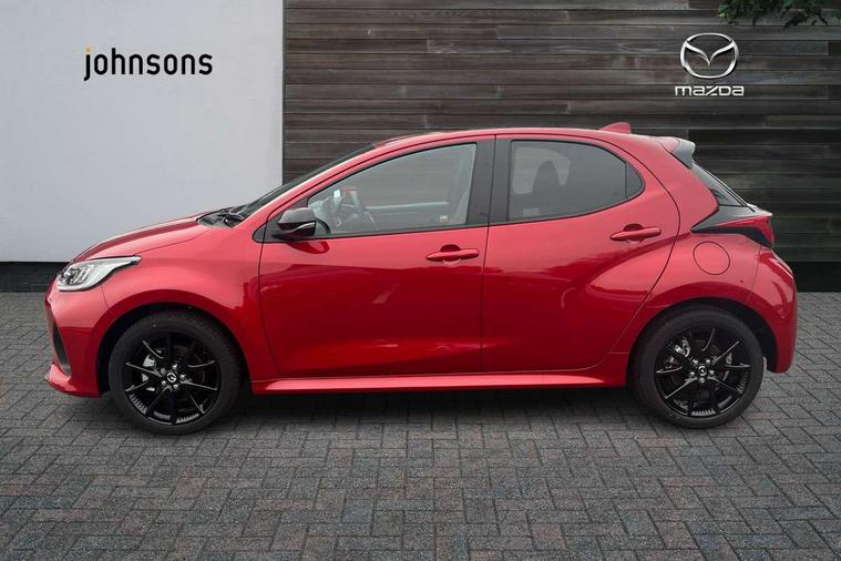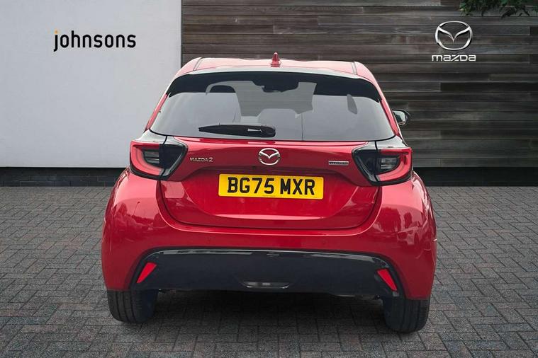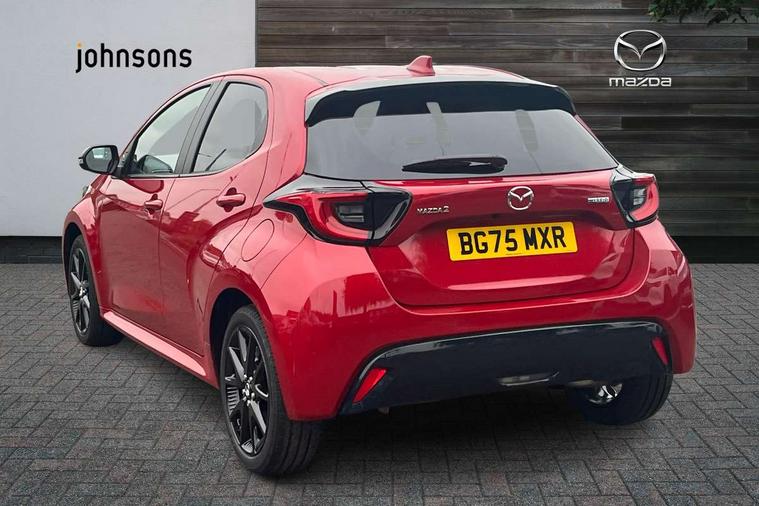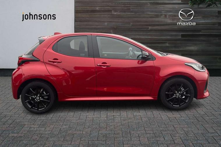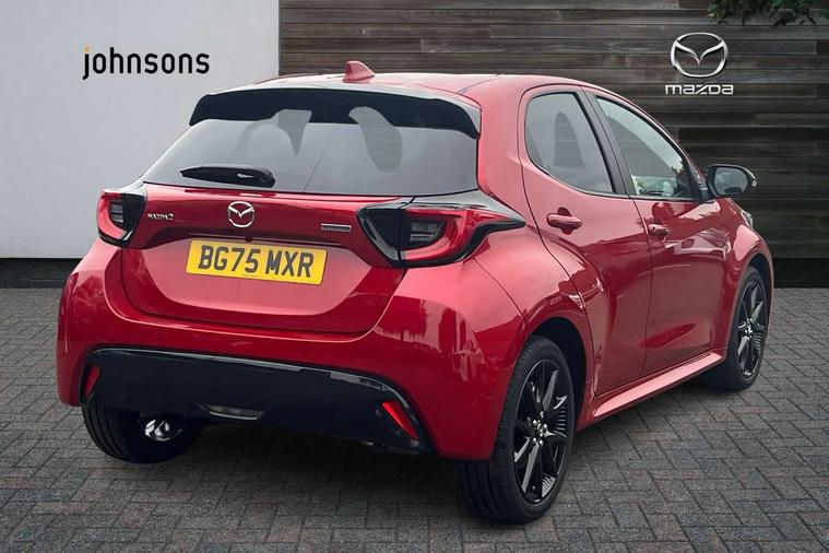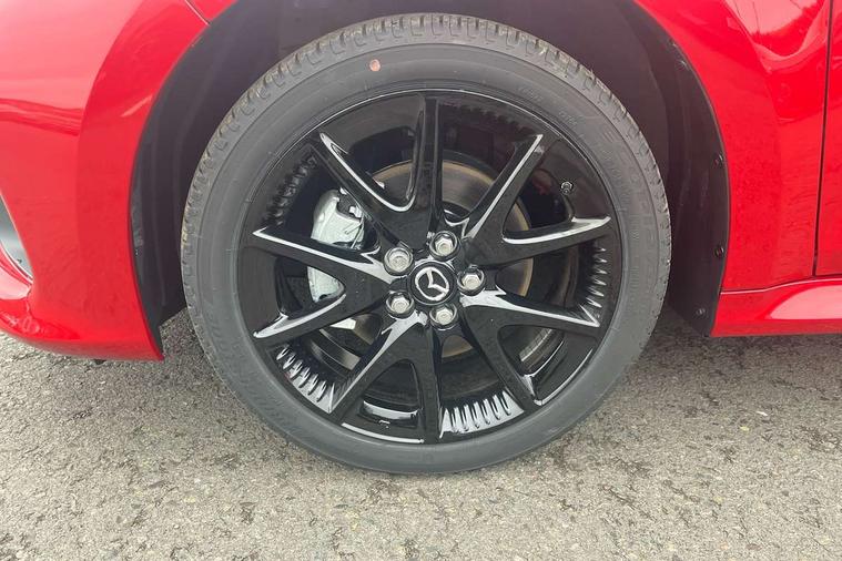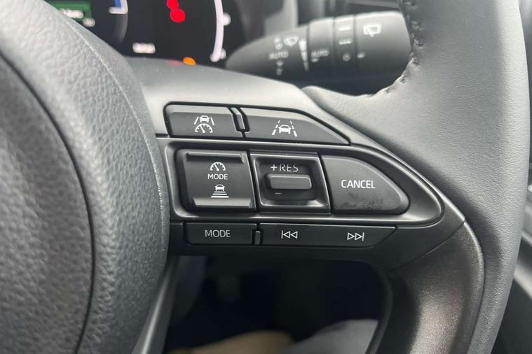 7" Digital instrument cluster with speedometer and hybrid system indicator, Adjustable speed limiter, Drive mode selector (Eco, Normal and Power), Driver attention alert system, Dynamic radar cruise control, E-call with GPS, EV drive mode, Front and rear parking sensors, Integrated bluetooth, Lane tracing assist includes Lane centering, Lane departure alert, Steering assist and Vehicle sway warning, Multi-information display, PAS, Push button start and stop, Qi wireless charging, Rear cross traffic alert with auto braking, Reversing camera, Road sign assist - RSA, Service indicator, Tailgate, Trip computer, Wireless Apple CarPlay and wired Android Auto, i-stop, 6 speaker audio system and 9" colour screen centre display, DAB Digital radio, Steering wheel mounted audio/bluetooth controls, USB type C port, Auto dimming rear view mirror, Auto folding door mirrors, Automatic high beam - AHB, Body coloured front bumper, Body coloured rear bumper with gloss black lower mouldings, Coming home function, Dusk sensing headlights, Front and rear electric windows, Gloss black electric adjustable/heated door mirrors, Gloss black front grille, Gloss black rear roof spoiler, Hybrid badge, LED front fog lights, LED headlights with manual headlight levelling and LED daytime running lights, LED rear combination light with LED turn signals, LED third brake light, Mazda unique tailgate garnish, Piano black lower window garnish, Privacy glass in rear side and rear windows, Rain sensing front wipers with adjustable sensitivity and speed, Rear side wing doors, Rear wash wiper, Shark fin antenna, Welcome lighting, 12V power outlet, 3 seat bench in 2nd row, 60/40 split fold down rear seats, Ambient lighting, Black roof lining in pillar and ceiling, Cloth/Synthetic leather upholstery, Driver, front passenger and two rear door storage, Driver, Front passenger and two rear grab handles with coathooks, Drivers seat manual slide recline and height adjustment, Drivers/front passengers with covered vanity mirrors and light, Dual zone climate control, Front centre armrest with console storage, Front head restraints, Front passenger seat manual slide, recline and height adjust, Front sport seats, Glovebox, Interior courtesy light with LED illumination, ISOFIX child seat anchorage points attached on outer rear seats, Leather handbrake, Leather wrapped gearshift, Leather wrapped steering wheel with telescopic and tilt adjustment, Luggage compartment light, Seatback pocket at rear of the front passenger seat, Single front passenger seat, Three height adjustable rear head restraints, 2x3 point front seatbelts with pre-tensioners, 3 point seatbelts on all rear seats, Airbags - driver and front passenger, Anti-lock braking system (ABS), Blind spot monitoring with rear cross parking support brake function, Collision mitigation braking system, Driver and passenger central airbags, Dynamic stability control + Traction control, Electronic parking brake with auto-hold and auto-disengage function, Emergency brake light signal (EBS), ESP, Front and rear curtain airbags, Front passenger airbag cut-off switch, Front side airbags, Hill start assist control (HAC), Manual child lock in rear doors, Pre-crash safety system - PCS, Rear parking support brake, Regenerative braking system, Seatbelt reminder audible warning, Tyre pressure monitoring system, Deadlocking system, Remote central locking, Smart keyless entry, Thatcham approved immobiliser and alarm, 17" Alloy wheels, Emergency tyre repair kit,