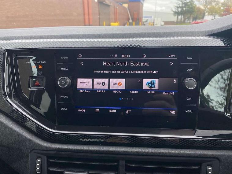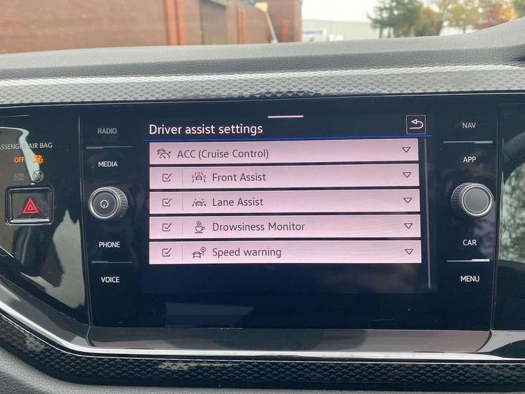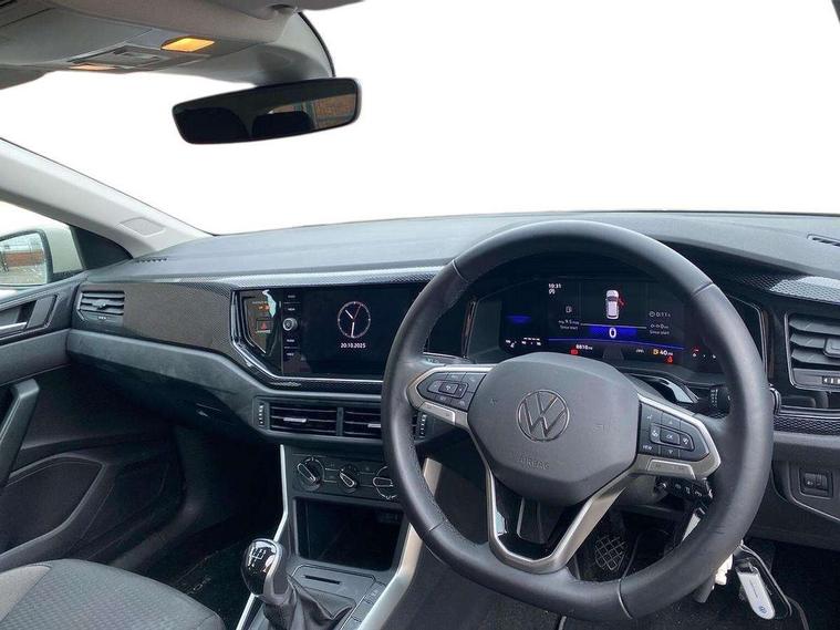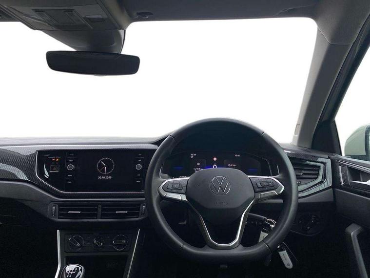 Adaptive cruise control without follow-to-stop and speed limiter, Advanced driver attention and drowsiness monitor, Bluetooth mobile phone interface, Dynamic road sign display, Emergency call service, Mobile phone preparation with inductive charging function, Multifunction front facing camera for distance control, Park distance control, Power assisted speed sensitive steering, Preparation for navigation system with media and internet package, Preparation for We connect and We connect plus, Rear view camera, Speedo and rev counter, electronic odometer, trip, service interval display and exterior temperature gauge, Standard rear axle, Travel Assist - Lane keeping system and traffic jam assist, Travel assist including emergency assist, Trip computer, Warning signal and warning light for front and rear seatbelts not fastened, Washer fluid level indicator, Wireless app connect, Front wheel drive, Rear shock absorpion, Start-stop system with battery regeneration (recuperation - energy recovery during braking), DAB Digital radio, Diversity antenna for FM reception, Front and rear 6 speakers, Automatic dimming interior rear view mirror, Automatic headlight control with LED separate daytime running lights with coming/leaving home function, Body colour bumpers with chrome inserts, Body colour door handles, Body colour door mirrors, Electric front windows, Engine badge deletion, Headlight range adjustment, Heat insulating and laminated safety glass windshield, Heat insulating darkened glass in side and rear windows, LED Headlights, LED rear combination lamps, Power folding adjustable/heated exterior mirrors and front passenger exterior mirror lowering function, Rain sensor, Rear electric windows, Rear fog light, Rear side wing doors, Rear tinted glass from B-pillar backwards approx 65% tinted, Rear windscreen washer and wiper with interval delay, Removable/lockable towbar, Third brake light, 12V power socket in centre console, 2 front and 2 rear reading lights with switch off delay and dimmer, 2 USB-C ports in the front, 2 USB-C charging sockets on the center console in the rear, 3 rear head restraints, 60/40 split folding rear seat and rear seat bench not split, Ceramique roof lining, Chrome plated radiator grille inserts, air vent surrounds and light switch surrounds, Door and side trim panel, Driver and front passenger seat height adjustment, Driver/passenger sunvisors with illuminated vanity mirrors, Front centre armrest, Front seat backrest storage pockets, Front standard seats, Handbrake lever handle in leather, Hartley/Thomas cloth upholstery, Headliner in recycled material, Isofix child seat preparation easy-fit (for two outer rear seats, and front passenger seat) compatible with I-size, Leather trimmed gear knob, Luggage compartment cover, Luggage compartment lighting, Removable luggage compartment floor, Single front passenger seat, Standard climatic zones, Standard pedal cluster, Three spoke leather wrapped multifunction steering wheel, Light and vision pack - Polo, 3 point height adj front seatbelts + pretensioners, 3 point seat belt for centre rear seat, 3 point seatbelts, outer rear with ECE lable, ABS, Driver and front passenger airbag with front passenger airbag deactivation, Drivers and front passengers safety optimised head restraints, ESC (Electronic stability control) + EDL (Electronic Differntial lock) and ASR (Traction control), Extended and predictive pedestrian/ cyclist protection, Front assist with autonomous emergency braking (for Adaptive Cruise Control ACC up to 130 mph), Front curtain and side airbags with center airbag, Front disc brakes, Hill hold control, Manual child lock in rear doors, Rear drum brakes, Single tone horn, Tyre pressure loss indicator, Alarm with interior protection, Anti-theft alarm system with interior monitoring, backup horn, and towing protection, Anti-theft wheel bolts, Electronic engine immobiliser, Lava stone black gloss/matt decorative inserts in dash and front door panels, 16" Torsby alloy wheels, Low rolling resistance tyres,