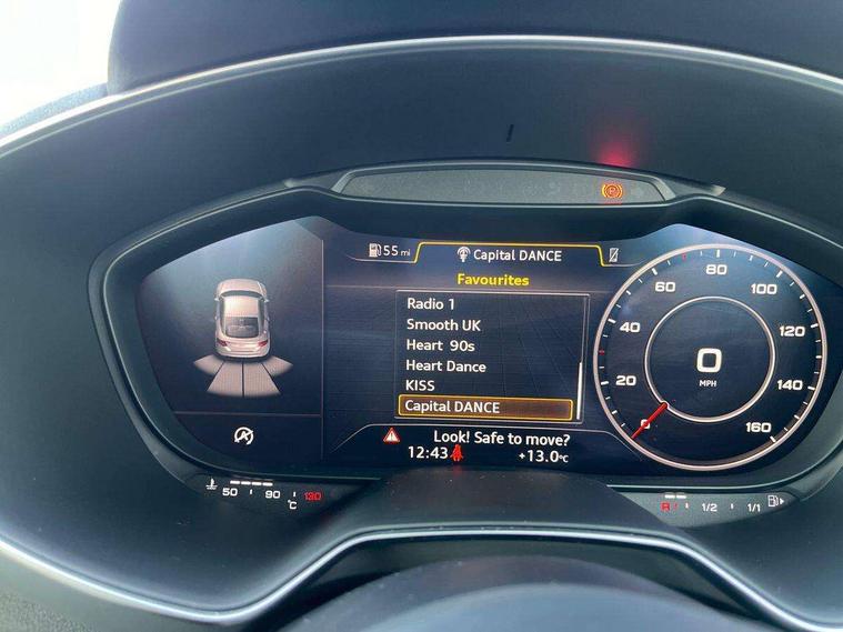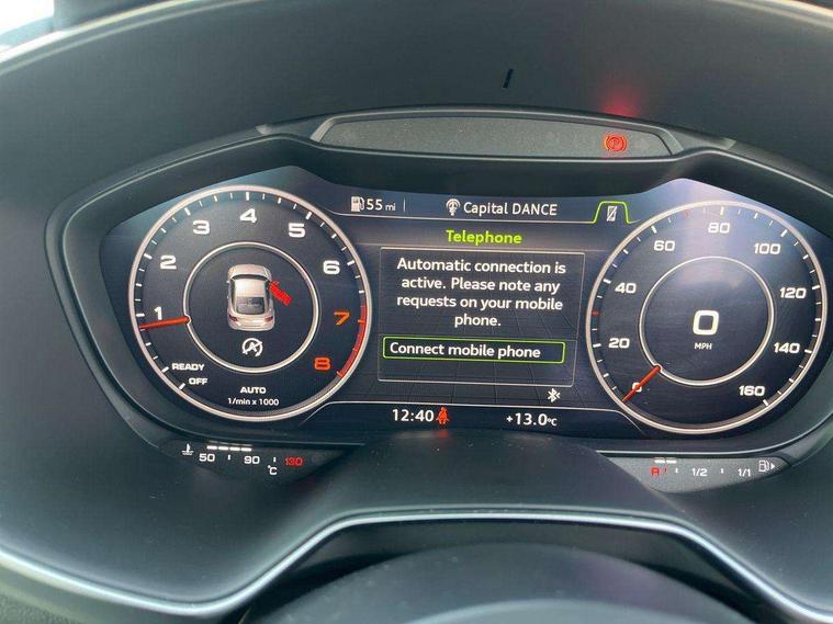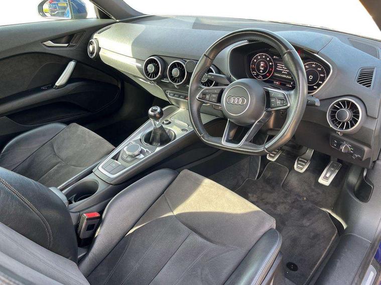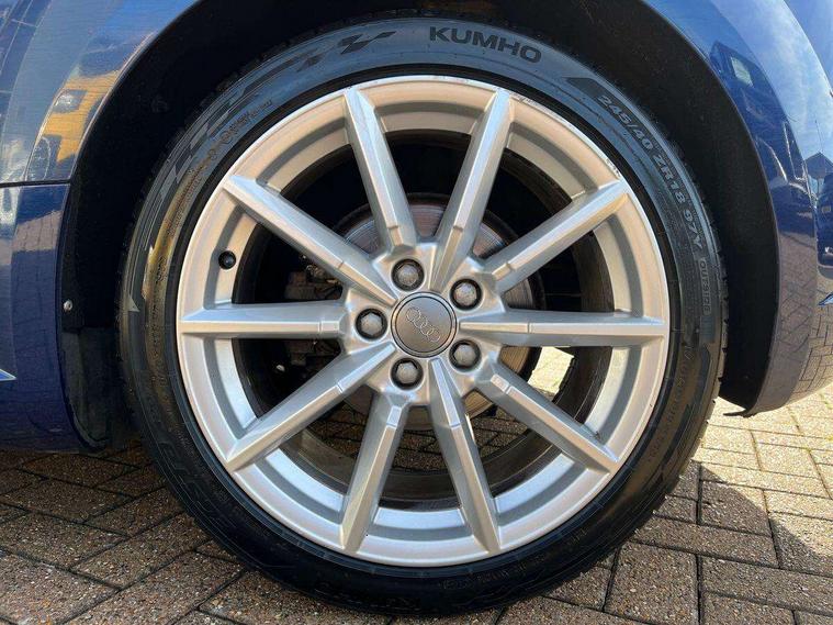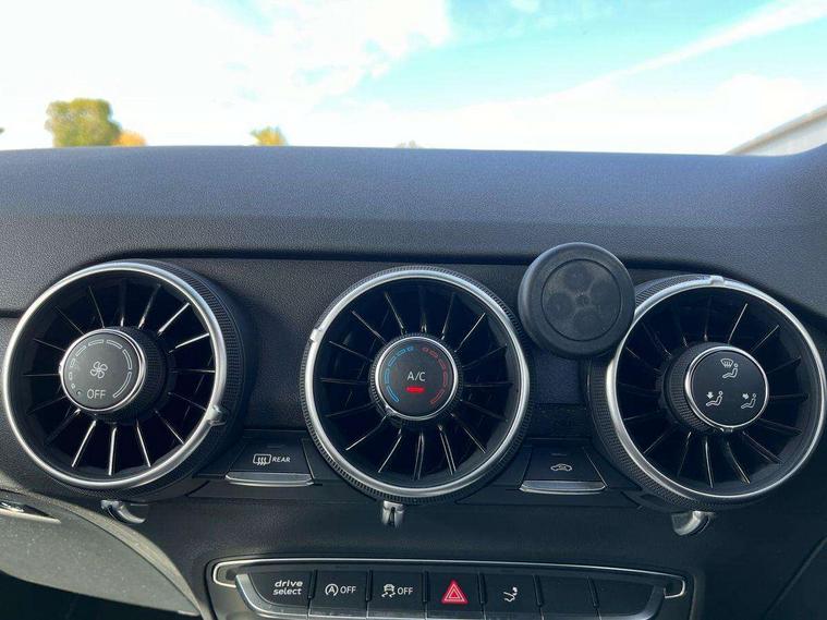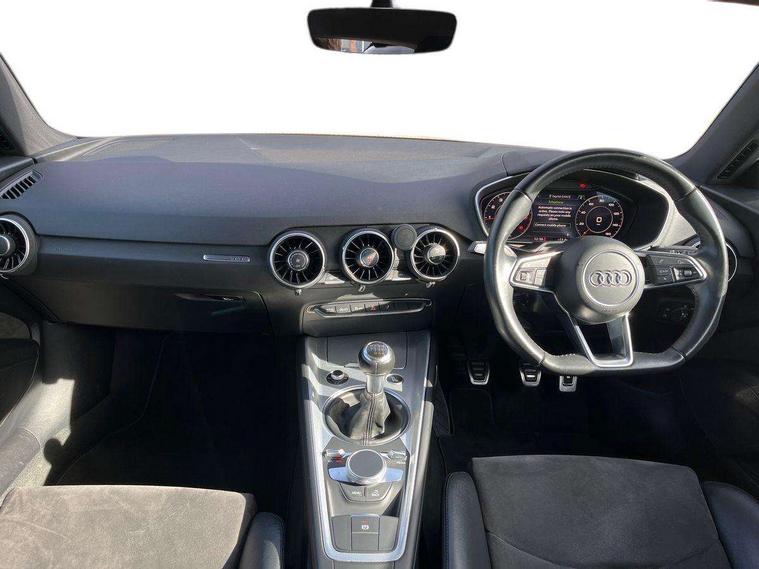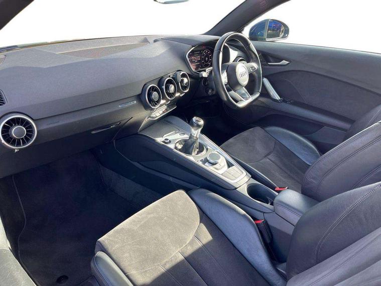Audi drive select, Audi smartphone interface, Audi virtual cockpit - 12.3" high-resolution LCD display with fully customisable instrument cluster, Cruise control + speed limiter, MMI touch panel, Mobile phone preparation with bluetooth interface, Progressive power assisted steering, Service interval indicator, Sports suspension, Audi music interface, Auxiliary input socket, Bluetooth audio streaming, DAB Digital radio, MMI Radio with CD player and SD/XC card slot, Auto headlight range control, Body colour bumpers, Body colour door mirrors, Electric front windows, Front fog lights, Green tinted heat insulating glass, LED daytime running lights, LED rear lights, Retractable rear boot spoiler, Sunband for windscreen, 3 spoke leather multifunction sports steering wheel, Aluminium door sill trims, Extended aluminium look with stainless steel pedals, Front centre armrest, Front head restraints, Front passenger seat isofix location point, Height/reach adjust steering wheel, ISOFIX on outer rear seats, Reading lights, Split folding rear seat, Top tether anchor plate for isofix child seat, Auto dimming rear view mirror with light and rain sensors pack - TT, Non smoking pack - TT/TT RS, 3 point front seat belts, ABS, ASR traction control, Curtain airbags, Driver/Front Passenger airbags, EDL traction control, Electromechanical parking brake, ESP, First aid kit, Front passenger airbag deactivation, Front side airbags, Head airbags, Seatbelt warning, Tyre pressure warning, Warning triangle, Anti theft alarm, Immobiliser, Keyless Start, Locking wheel bolts, Remote central locking, Aluminium interior trim, Tyre repair kit,