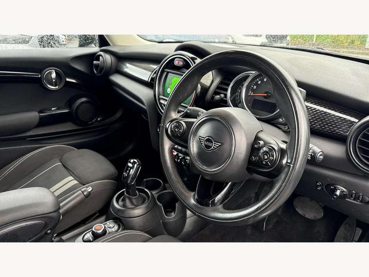 Automatic start/stop function with brake energy recuperation, Compatible mobile phone bluetooth with audio streaming, Electro-mechanical speed dependant steering assistance, Instrument cluster, MINI Driving Modes - centre toggle switch to control driving setting (sport, mid and green), Mini E-call, MINI TeleServices, On board computer, Service interval indicator, Double Vanos system, Fully variable valve control, Gear change indicator display, High precision injection, Performance Control, Steptronic transmission with double clutch, 6.5" touchscreen with LED ring, FM tuner and DAB digital radio, Automatic headlight activation switch, Bonnet scoop, Chrome border honeycomb structure radiator grille with S badge, Chrome plated fuel cap, Dynamic brake lights, Electric front+rear windows, Heated rear window, Heated windscreen washer jets, LED headlight with closed ring and daytime driving lights, Metal door sill strips with Cooper S imprint, Model logo Cooper S on right of tailgate, Rain sensor window wipers, Rear fog lights, Rear LED lights with union jack design, Rear window wiper, Side scuttle panel with integrated indicator, Sun/heat protection glass, Two central exhaust tailpipes with chrome finisher, White indicator lenses, 12V Accessory socket in centre console, 4 lashing eyes in luggage compartment, 60/40 split folding rear seat, Carbon Black colour line, knee roll and door armrests, Chrome interior highlights, Colour line - Carbon black, Cupholders, Front and rear head restraints, Front and rear isofix with front passenger airbag deactivation, Glove compartment, Height and length steering column adjustment, Interior lighting with 12 basic colours selectable via toggle switch in roof, Leather gearshift lever and handbrake gaiters, LED reading lights, vanity mirror lights, front foot well light and spotlight on front seats, Manual air conditioning, Mechanical seat adjustment, driver seat height adjust, forward/back and front seats backrest, Mini logo projection on floor from drivers exterior mirror, Multifunction steering wheel, Satellite grey headlining, Storage compartments in doors, Storage pocket on back of front seats, Sunvisors with vanity mirrors, 3 point seatbelts on all four seats, 6 Airbags - front, side, head and seat belt tensioners, Anti-lock braking system (ABS), DSC - Dynamic Stability Control, Front and rear disc brakes, Hill start assist, Two tone horn, Tyre pressure monitoring system, Alarm system with tilt sensor, monitoring doors, bonnet interior and tailgate, Electronic vehicle immobiliser, Start/stop toggle with keyless go, Tool kit, Tyre repair kit,