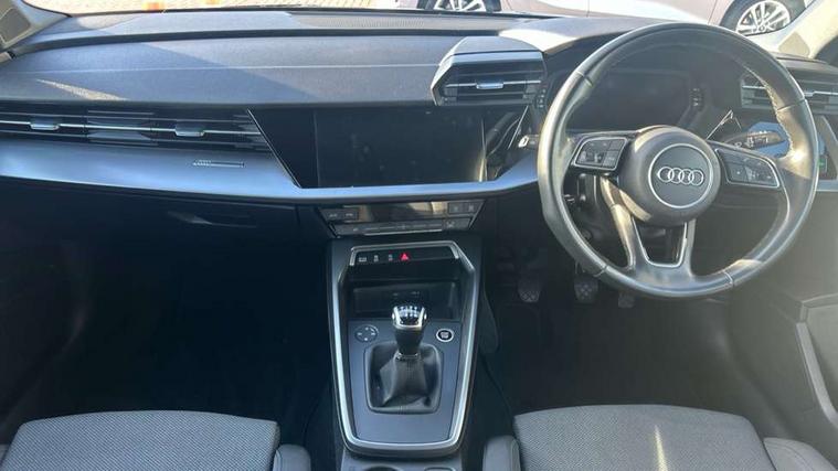 Audi drive select (Auto, Comfort, Dynamic, Efficiency and Individual), Audi smartphone interface, Audi Virtual Cockpit - 10.25" digital and colour instrument cluster, Automatic start/stop system with recuperation, Bluetooth interface, Camera based traffic sign recognition, Collision avoidance assistant, Cruise control, e-Call (emergency call), Electromechanical power speed sensitive steering, Lane departure warning system, MMI Navigation Plus with high resolution 10.1" colour touch screen display, Rear parking sensors, Service indicator, Trip computer, Voice control system with natural language interaction, Standard suspension, 2xUSB-C connection with data and charging functions, 6 passive loudspeakers, DAB Digital radio, 3rd brake light, Acoustic glass windscreen, Aluminium window trim, Auto dimming frameless rear view mirror, Body colour exterior mirrors, Body colour roof spoiler, Electrically adjustable/heated/folding/auto dimming door mirrors with integrated LED indications + kerb view function for passenger side, Front electric windows, LED daytime running lights, LED headlights and halogen rear lights, Light and rain sensors, Rear electric windows, Rear side wing doors, Rear window, rear door windows and rear side windows in clear glass, Rear wiper, 12V socket and storage compartment in front centre console, 3 seat bench in 2nd row, 3 spoke leather multifunction steering wheel, 4 way electrically adjustable lumbar support for driver and front passenger, 60/40 split folding rear seat bench, Dual zone electronic climate control, Front and rear headrests, Front centre armrest, Front door sill trims with aluminium inlay, Front/rear floor mats, Height and reach adjustable steering wheel, Interior lighting - Front and rear roof module including reading lights, glove compartment light and right hand side, Interior lighting - glove compartment light and right hand side, Luggage compartment floor covering, Manual boot compartment lid, Manually adjustable front seats, Routine cloth upholstery with front sports seats, Seat side bolsters, Single front passenger seat, Steel grey cloth headlining, Aluminium interior elements pack - A3 Sportback, LED interior lighting pack - A3 Sportback, Sport styling pack - A3 Sportback, 3x3 point rear seat belts, Driver and front passenger airbag with passenger airbag deactivation, Electronic Stabilisation Control (ESC) including ABS, ASR and EDL, First aid kit with warning triangle and 2 safety vests, Front side airbags with head airbags and interaction airbag, Pre-sense front with pedestrian and cyclist detection, Seatbelt monitoring, Tyre pressure loss indicator, Anti theft alarm, Anti-theft wheel bolts, Electronically operated child locks, Immobiliser, Remote control central locking, Inlays with silk effect paint in platinum grey,