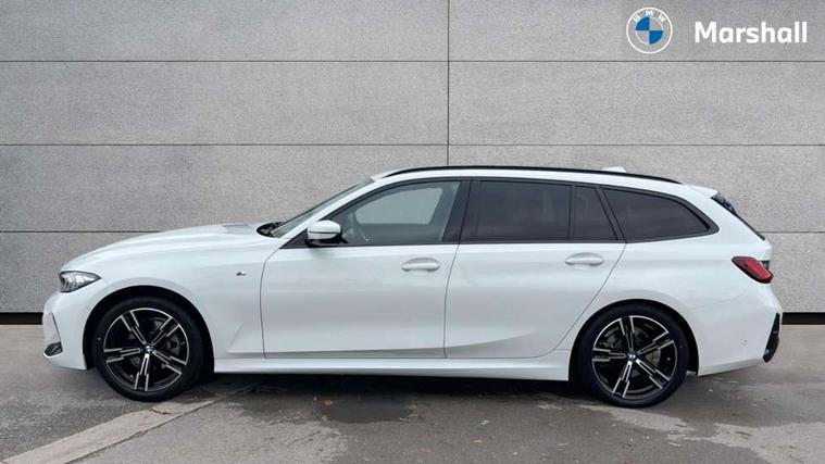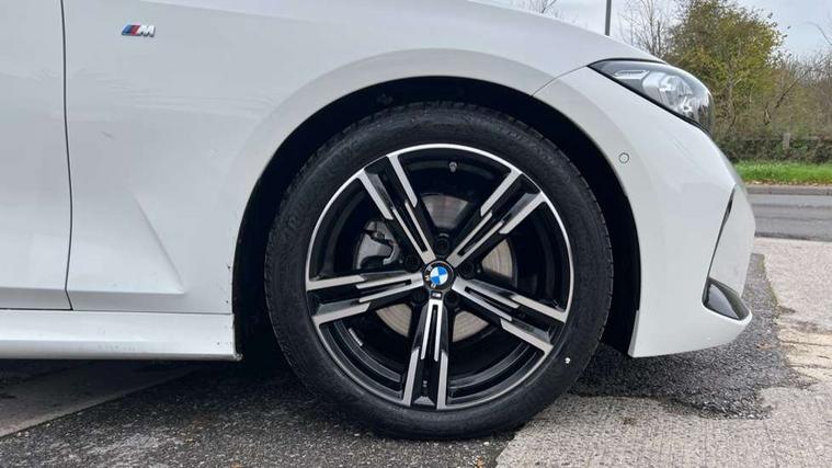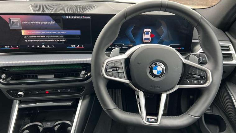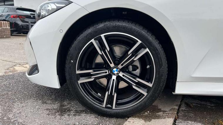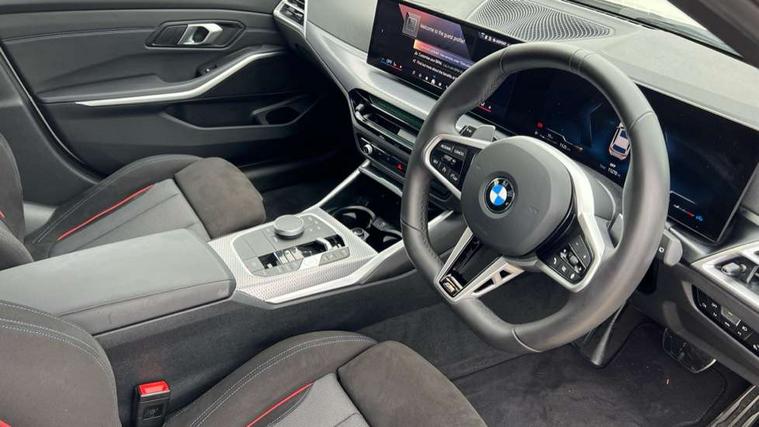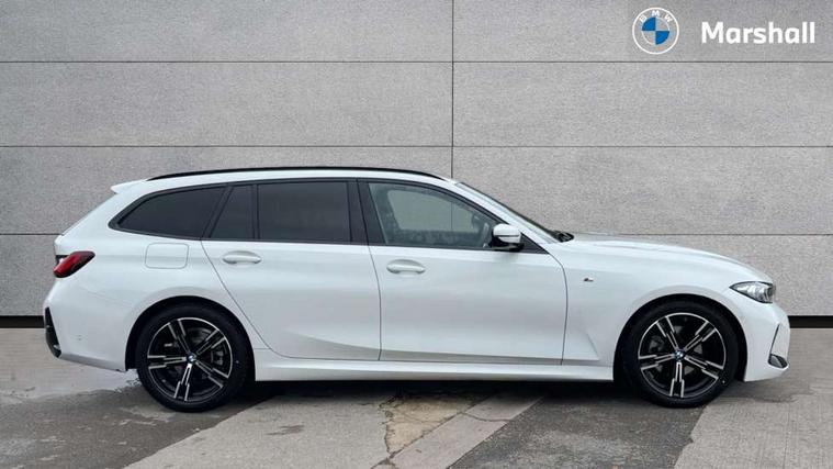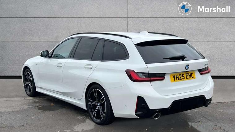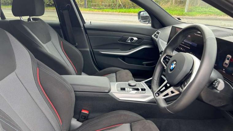 Active guard plus, Attentiveness assist, Automatic Start/stop button, Bluetooth Wi-Fi interface, BMW iDrive, BMW Teleservices, ConnectedDrive Services - last state call, Electric bootlid, Live cockpit plus with Navigation + 12.3" instrument display + 14.9" display, Intelligent voice assist, 2 USB, 4G LTE connect, Oil sensor for level and grade, Personal e-SIM, Shifting point display, Variable sport steering, Double joint spring strut front axle, Fuel tank breather system, Steptronic Sport automatic transmission with steering wheel mounted gearshift paddles launch control and xtreme drive lever control, DAB tuner, 3rd brake light, Auto dimming rear view mirror, Automatic headlight beam throw control with load dependent regulating reaction, dynamic compensation of braking dive and acceleration squat, Bi-LED Low and high beam headlights, BMW emblem, engine compartment lid and tailgate, Body colour roof fin, Door sill strips, Electric windows - front and rear, with open/close fingertip control, anti-trap facility and comfort closing, Fading support, Follow me home headlight function, Front and rear bumper system with replaceable deformation elements, Front apron plastic in body colour, Fuel filler flap - right rear in body colour, Heat protection glazing on front windows and windscreen, Heated washer jets, High gloss chrome kidney frame with high gloss black kidney struts, High gloss shadow line roof rails, LED daytime running lights, LED rear lights, LED turn indicator, Licence plate panel integrated into front bumper and tailgate, M high gloss shadow line exterior trim, Matt black B-pillar finsher, Matt black window recess cover, One piece front bumper cover including towing eye cover in body colour, Rain sensor with automatic headlight activation, Rear side wing doors, Rear wiper, Reversing lights, Side frame decorative moulding black matt, Trailer stabilisation logic, Visible exhaust tailpipe finisher, Welcome lights in interior and door handle area, 12V power socket in front storage compartment, 2 front cupholder in centre console with clamping elements and matt black inlay, 3 seat bench in 2nd row, 3 spoke M Sport multifunction flat bottom leather steering wheel, 3 zone automatic air conditioning, 40:20:40 split folding rear seat with loading system, Anthracite headlining, Armrest integrated in front and rear door trim + front centre console armrest, BMW ID, Cruise control operation in steering wheel, Driving experience mode switch, Folding rear centre armrest with 2 cupholders, Front and rear headrests, Front and rear velour floor mats, Front reading light, Heated front seats, Height adjustable mechanically and infinitely variable steering column, Illuminated armrest storage compartment, Illuminated glove compartment, Illuminated luggage compartment, Lashing eyelets in luggage compartment, Single front passenger seat, Sunvisors with illuminated vanity mirrors and ticket pocket, Toolkit located in luggage compartment, Connected pack professional - 3 Series Saloon/Touring, Interior and exterior mirror pack - 3 Series Touring/Saloon, M sport exterior styling pack - 3 Series Saloon/Touring, Parking assistant pack - 3 Series, 3x3 point rear seatbelts, BMW emergency call, Child locks on rear doors, Crash sensor activating of airbags, Unlocking doors, hazard warning lights, interior light, safety battery terminal, Drive-off assistant, Driver and front passenger with seat occupancy detection for driver's and passenger side, Driver and passenger side airbags, body protection at side and airbags deploy from seat backrests, Dry braking, Dynamic brake control, Dynamic stability control + (DSC+) - Anti-lock Braking System (ABS) with brake assist and cornering brake control + Automatic Stability Control (ASC), Dynamic Traction Control - DTC, Electric parking brake including automatic hold function and automatic release of the parking brake when driving off, Electronic differential lock control (EDLC), Front airbag deactivation, Front airbags for driver and front passenger, Head airbags in 1st and 2nd row, head protection at side, curtain airbags open from headliner above 1st and 2nd row, Plastic fuel tank, Side impact protection, Tyre pressure sensors, Ventilated front and rear disc brakes, Warning triangle and first aid kit, Alarm system, Centre lock switch, Closing system with central locking, Electronic vehicle immobiliser, Locking wheel bolts,