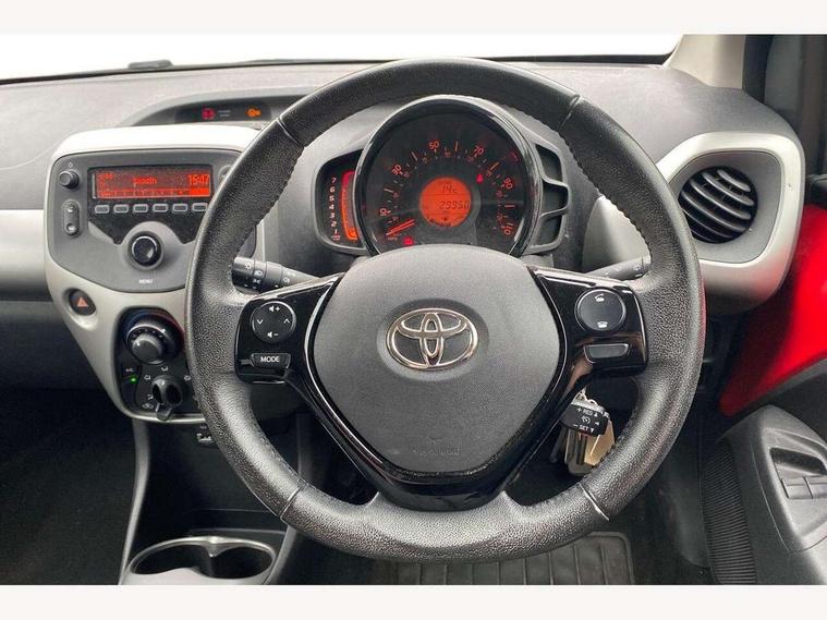 Bluetooth system, Digital clock, Electric power steering, Fuel indicator with low level warning, Lights on warning, Speed limiter, Tachometer, Vehicle Stability Control (VSC), 4 speakers, Auxiliary input socket, DAB Digital radio, Stereo radio, USB connection, 2 speed wipers/variable intermittent/mist function, Black front X, Body colour bumpers, Body colour door handles, Body colour door mirrors, Carbon rear diffuser, Electric adjustable door mirrors, Electric front windows, Green tinted glass, Headlamp levelling, Heated door mirrors, Heated rear windscreen, LED daytime running lights, Rear spoiler, Rear window demister, Rear wiper, Roof mounted aerial, 12V Accessory socket, 3 spoke leather steering wheel, 50/50 split folding rear seat, Air conditioning, Air recirculation system, Centre console storage, Chrome insert to gearknob, Chrome interior door handles, Driver and passenger sunvisors, Driver's seat height adjuster, Driver/passenger seat recline/slide adjust, Driver/passenger vanity mirrors with covers, Front and rear door pockets, Front cupholder, Front map reading lights, Gleam cloth upholstery, Glovebox, Height adjustable front head restraints, Isofix system on outer rear seats, Leather gear knob, Pollen filter, Rear cupholders, Rear headrests, Steering wheel mounted radio/phone controls, Stepless tilt adjustable steering column, Storage bins on all doors, Tonneau cover, ABS, Driver and passenger airbags, ESP, Fasten seatbelt reminder, Front side airbags, Height adjustable front seatbelts with pre-tensioners and load limiters, Hill start assist, Passenger airbag deactivate switch, Rear child proof door locks, Side curtain airbags, Tyre pressure warning, Engine immobiliser, Lockable fuel cap, Remote central locking, Grey dashboard trim, Tyre repair kit,